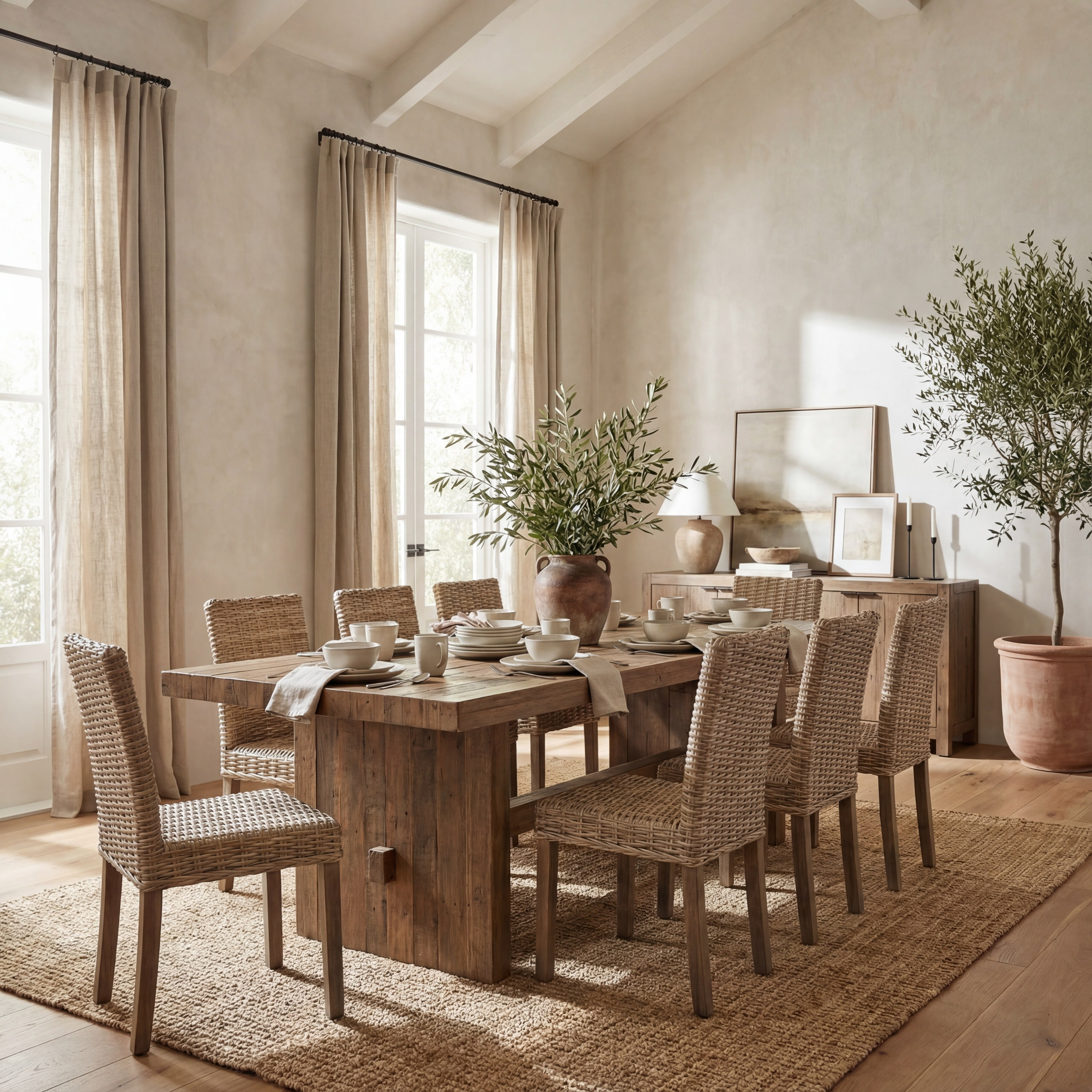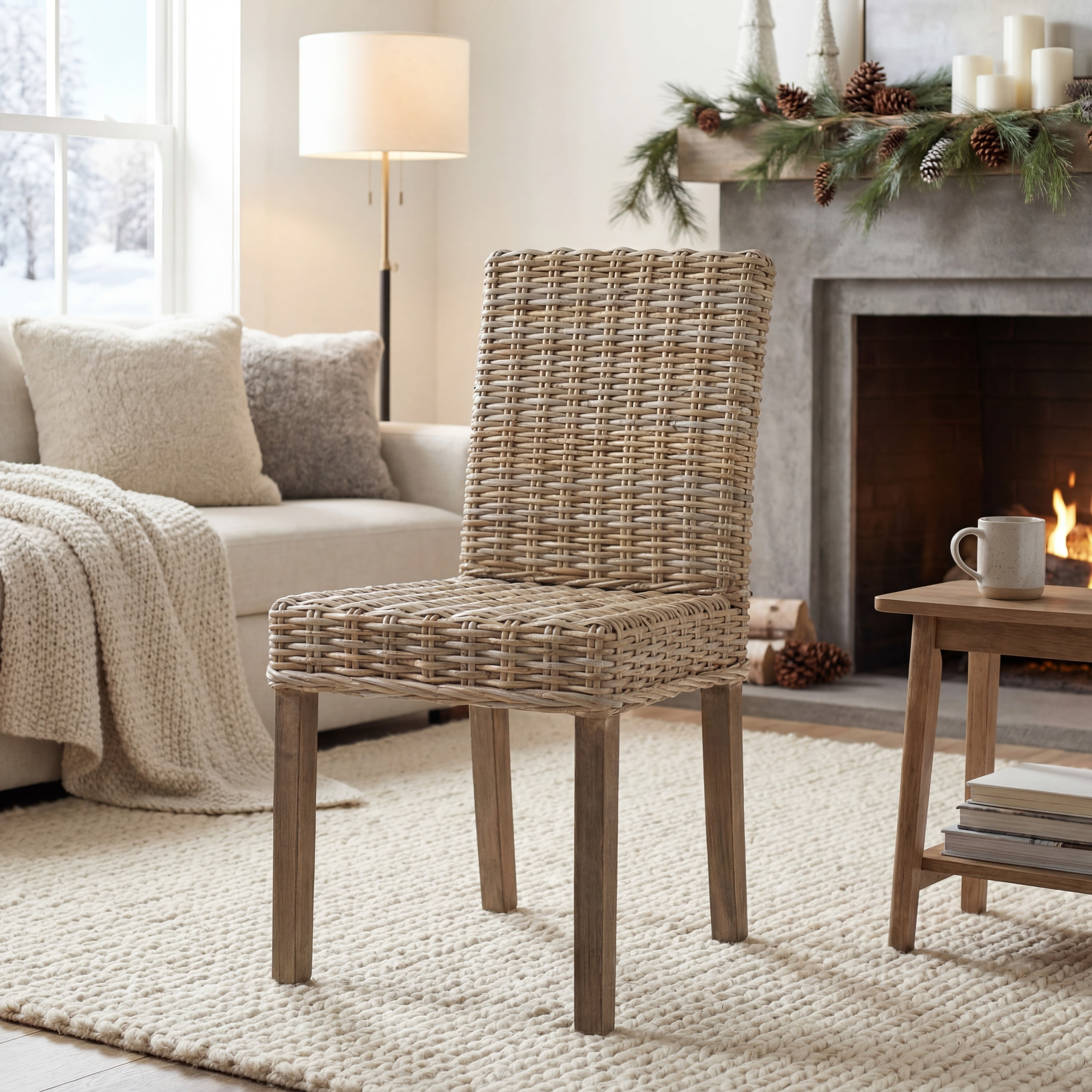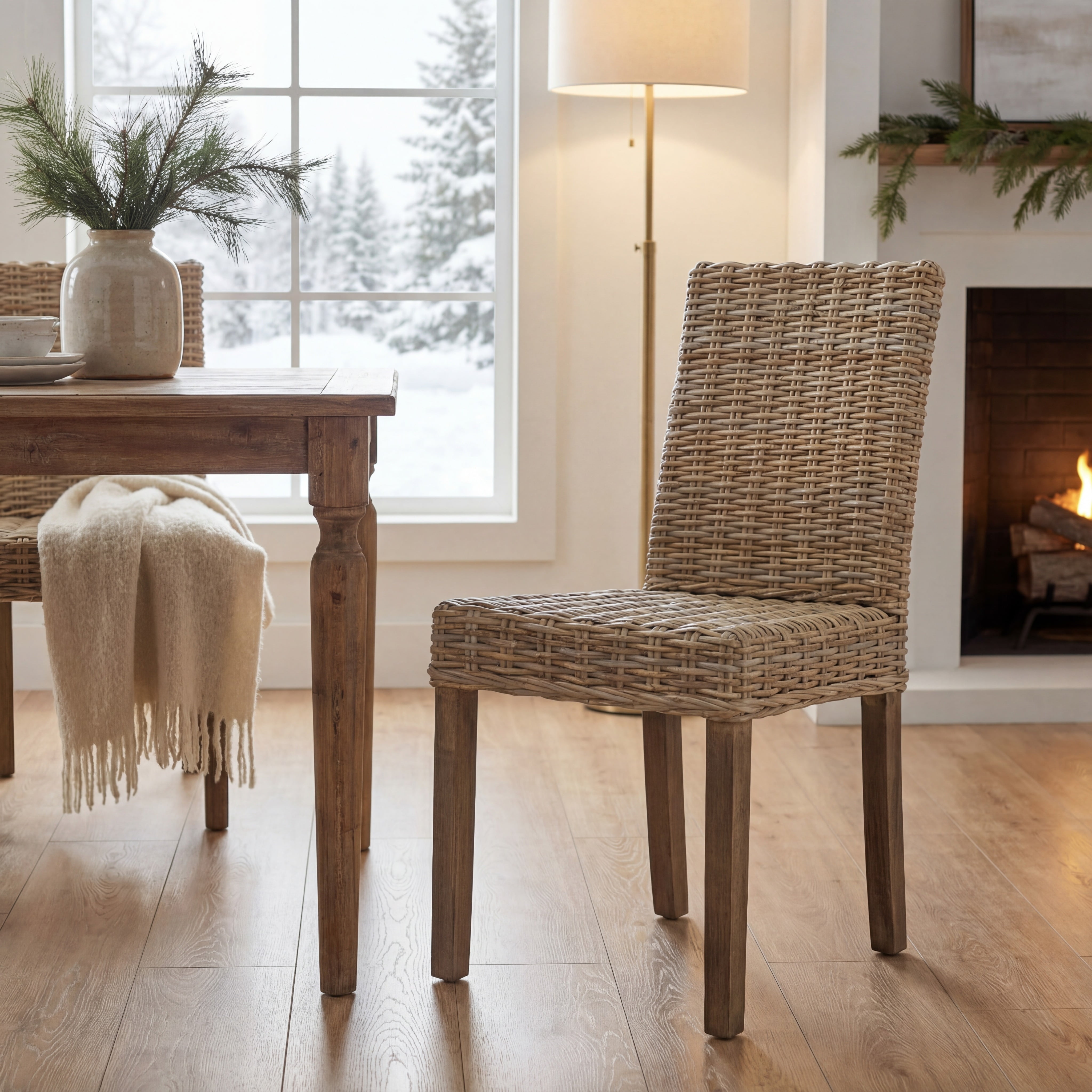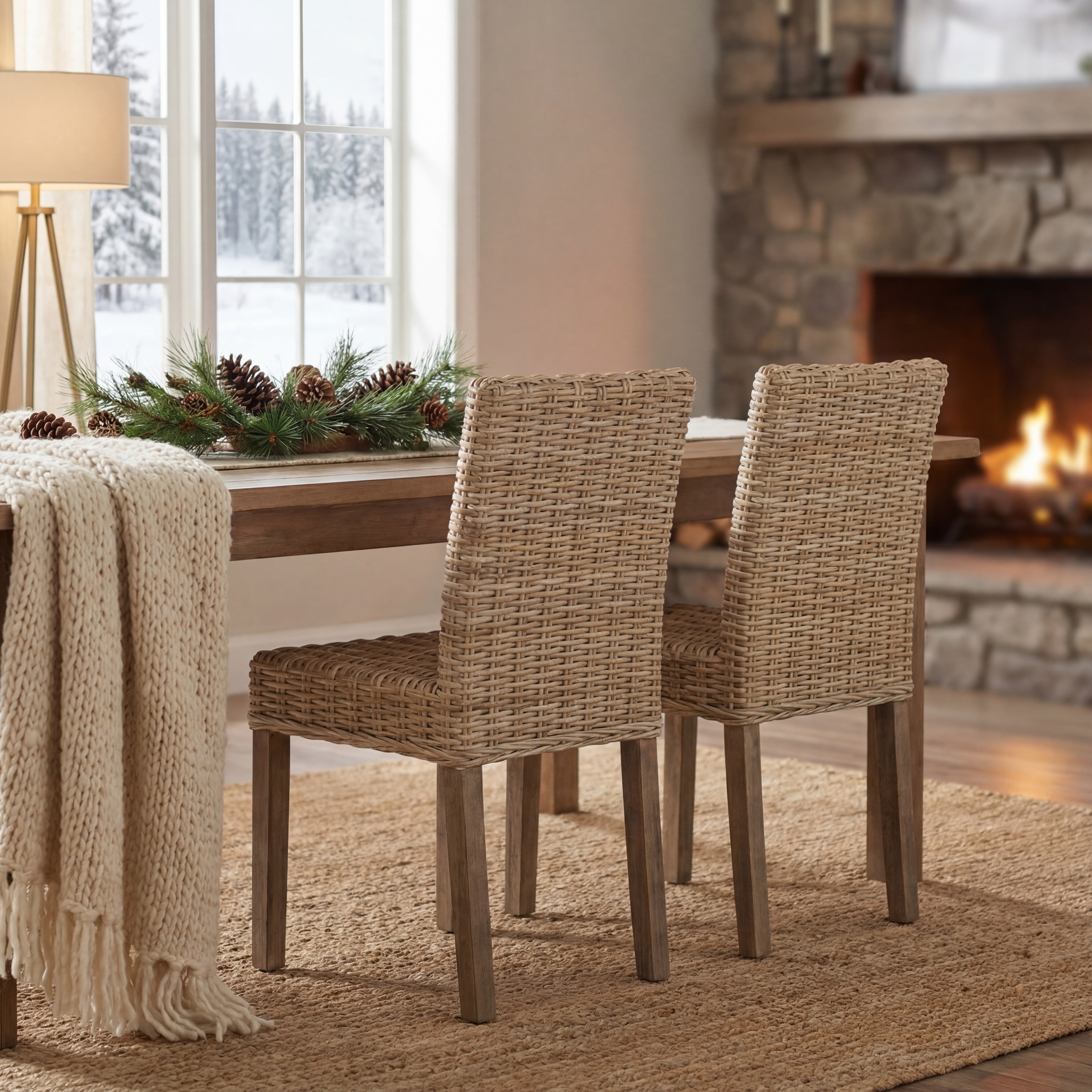 SAFAVIEH Grove Bohemian Rattan Solid Dining Bistro Chair, Natural (Set of 2)