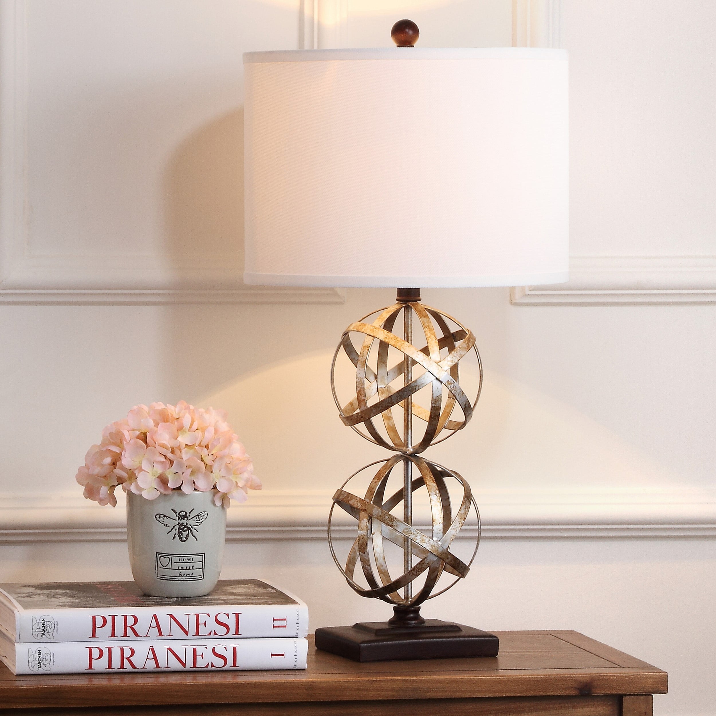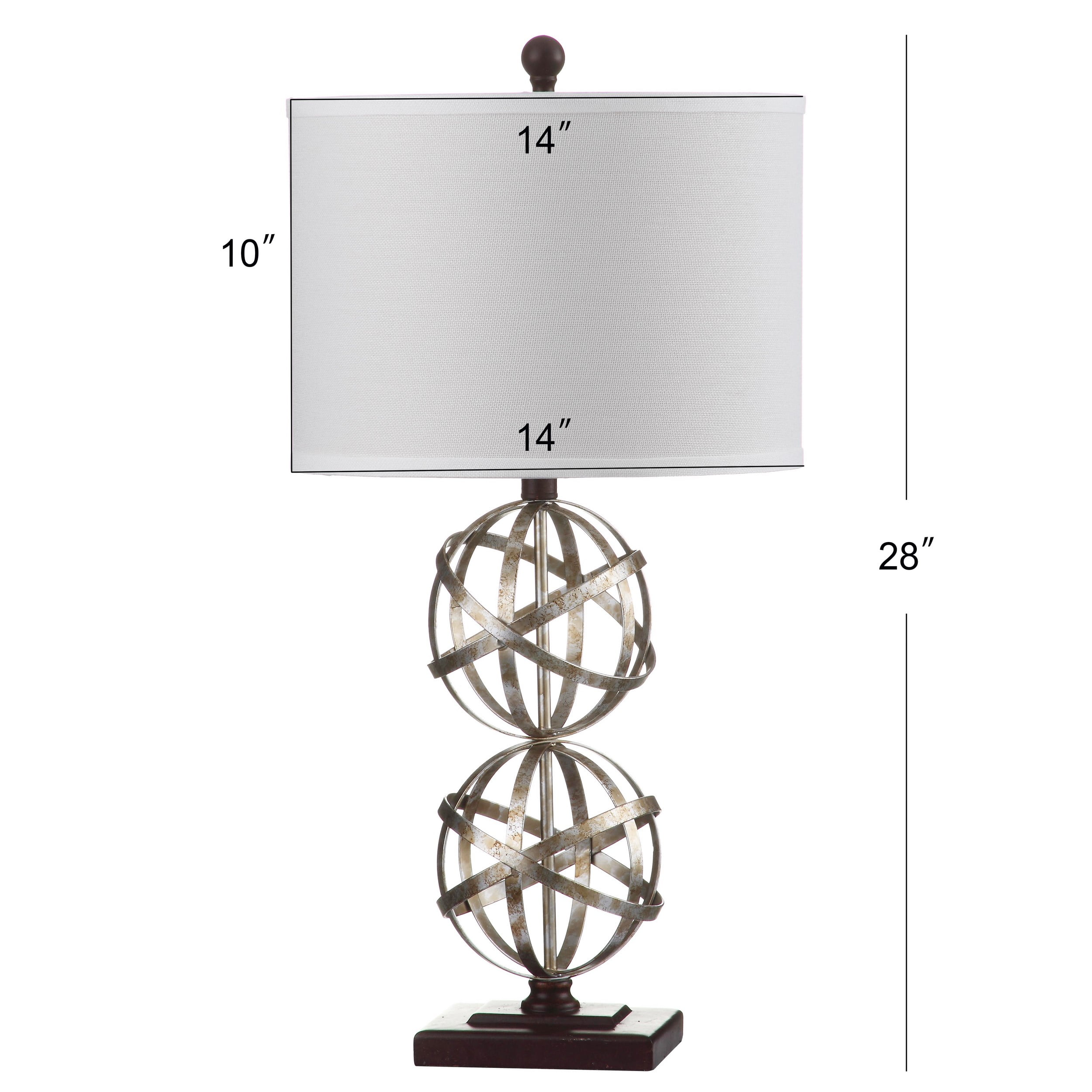 Shop Safavieh at . Save Money. Live Better. Safavieh Haley 28-Inch High Double Sphere Table Lamp, Antique Silver Alive with the optimism and flair that only the roaring Twenties could offer, the Haley Double Sphere table lamp adds a touch of glamor to any room. With metal bases in antique silver and white drum shades, the set of two Haley lamps exudes good taste.