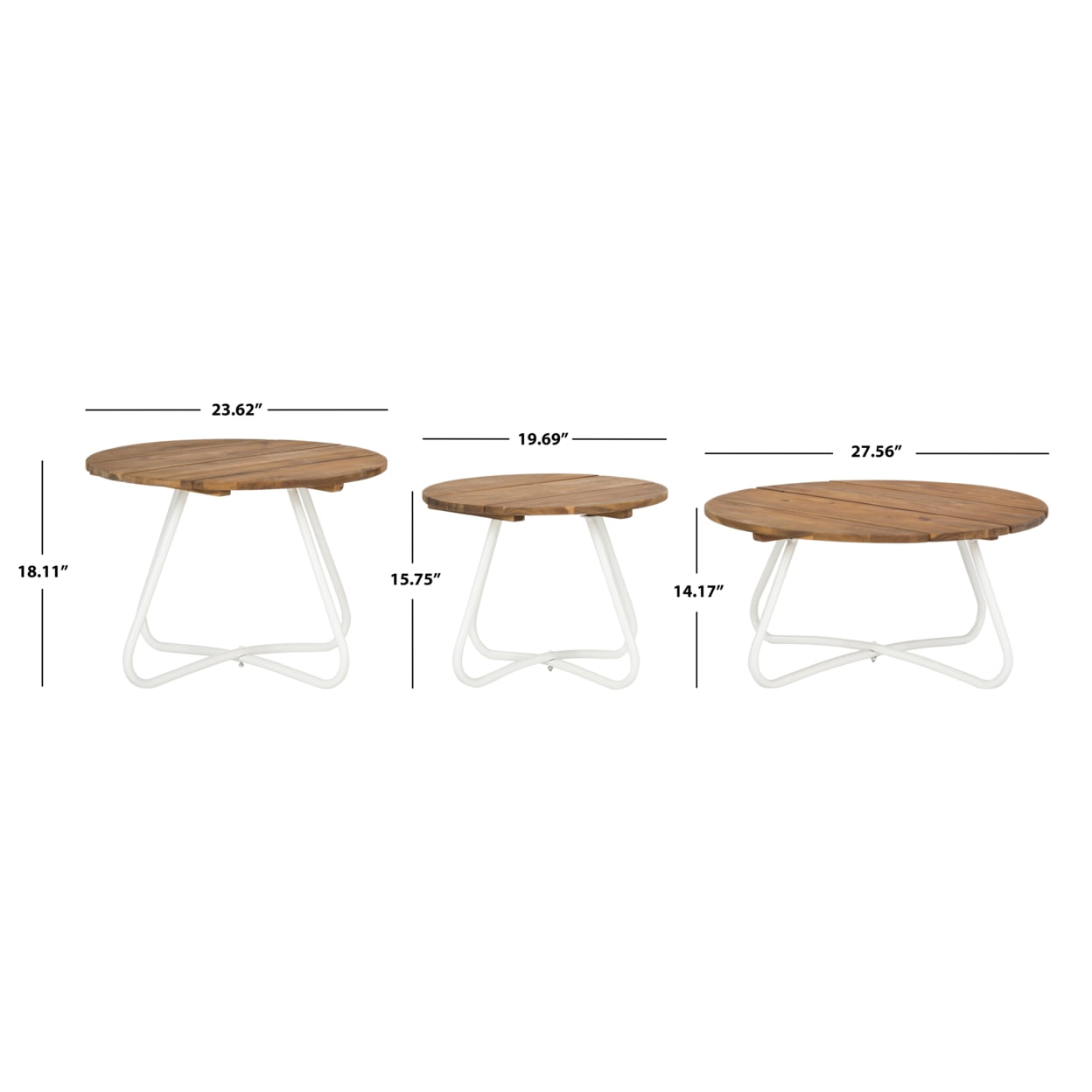 SAFAVIEH Henderson 3 Piece Wood Top Outdoor Coffee Tables, Natural/White