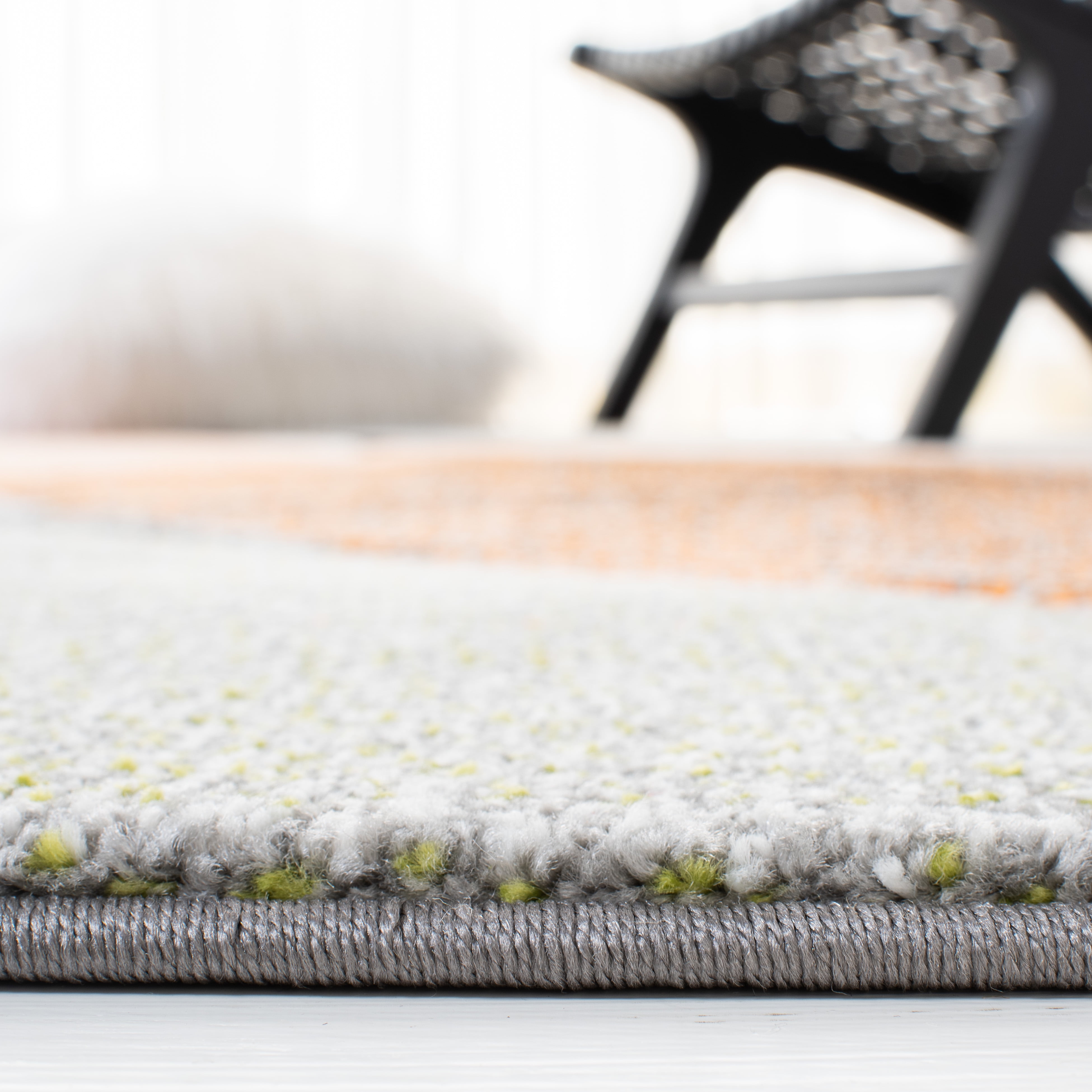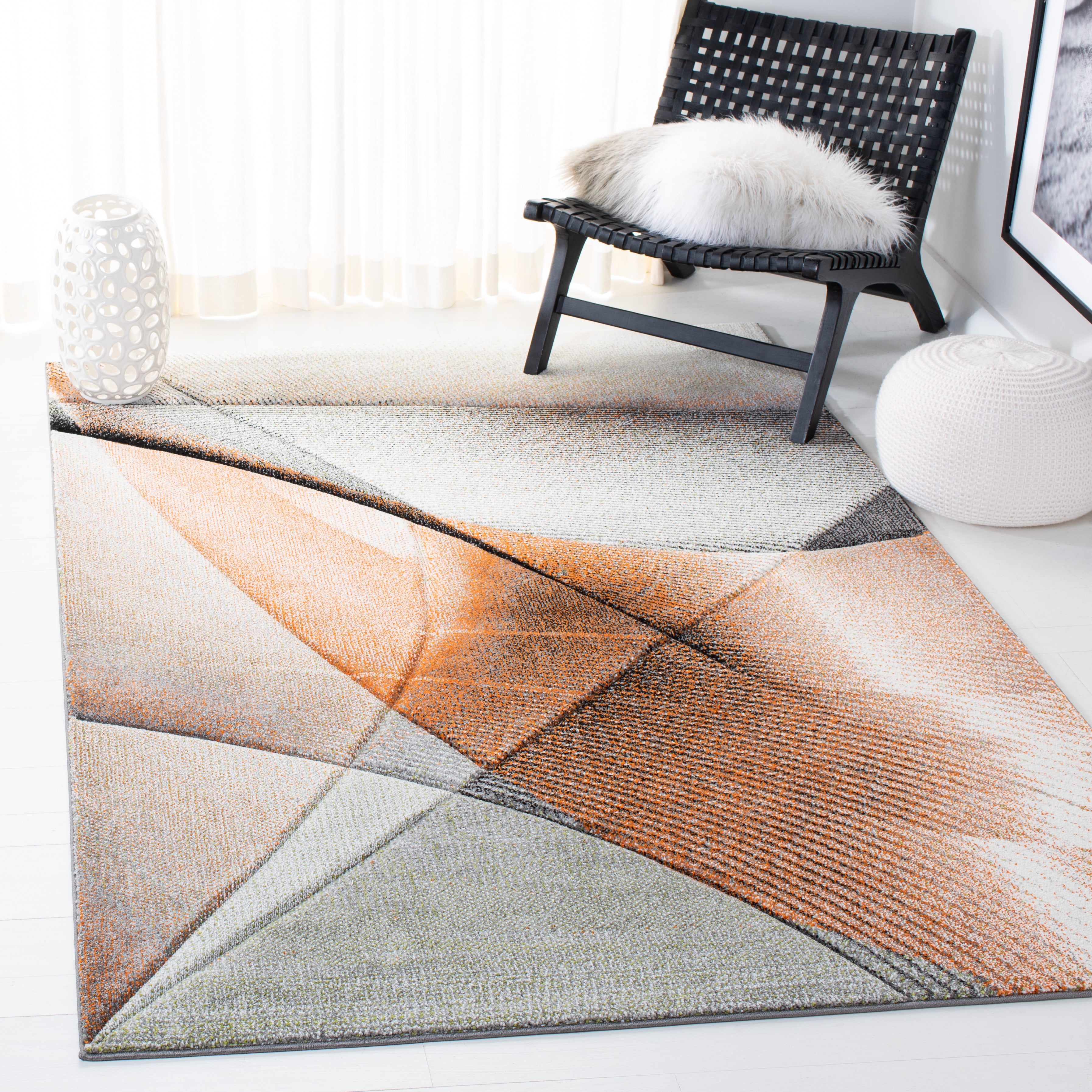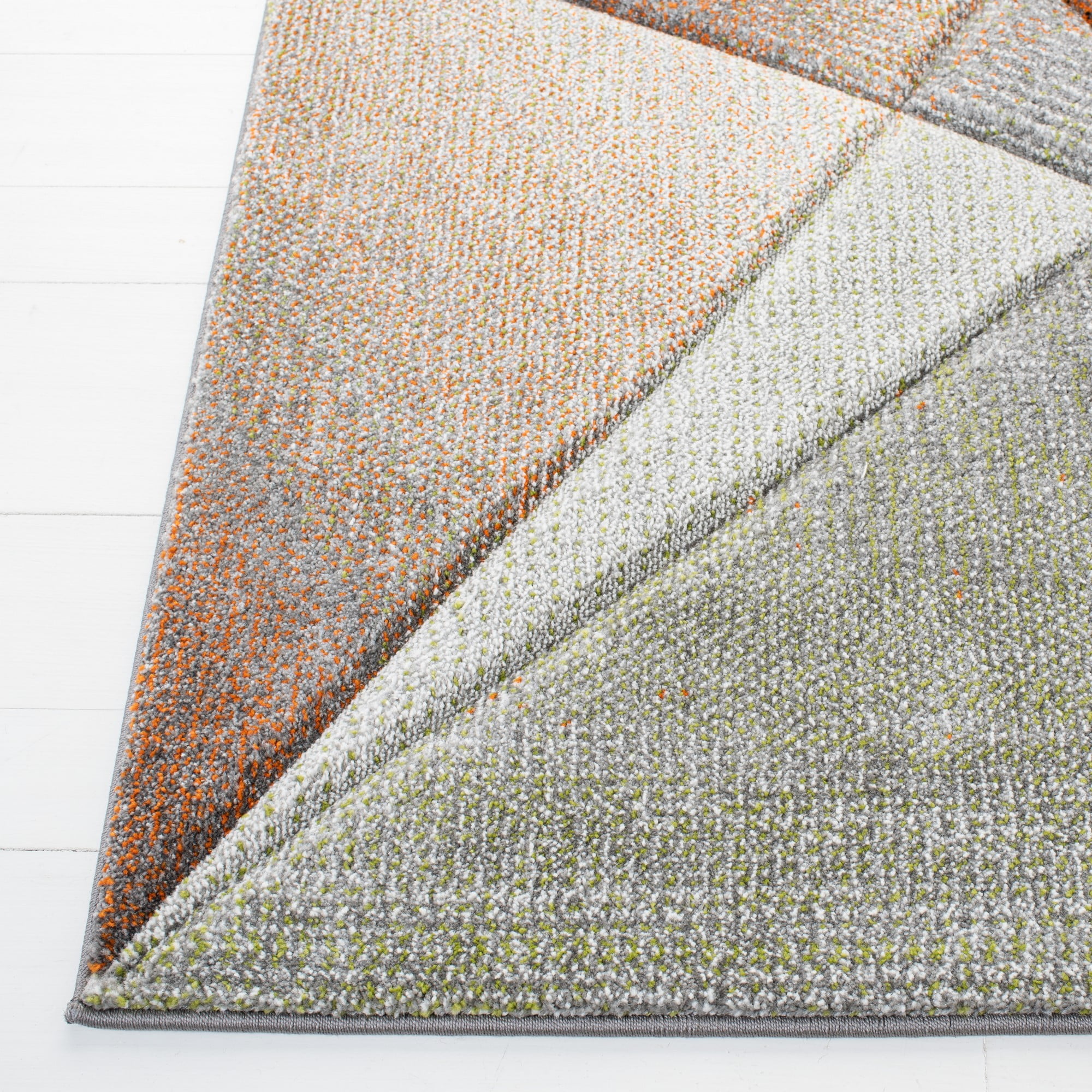 Color: Grey/Orange Size: 8′ x 10′ Power Loomed in Turkey Pile Height: 0.63 in. Polypropylene No backing, rug pad (sold separately) recommended to help prevent shifting and sliding Accessories in lifestyle photos not included Vacuum regularly (preferably one without beater bars) and spot clean; for hard-to-remove stains, professional rug cleaning is recommended; rotating your rugs every 3-6 months will protect against uneven wear from foot traffic and furniture weight Use rug protectors under the legs of heavy furniture to avoid flattening piles Avoid direct sunlight as it will cause the colors in your area rug to fade over time; place your area rug away from direct sunlight whenever possible For an instant decorating makeover, this area rug is one of the easiest and most fashionable ways to refresh a room with character and style. Please note: The images and product dimensions on our website are as accurate as possible. Due to differences in computer monitors, some rug colors may vary slightly. Lengths and widths may vary from the published dimensions. We do our best to provide you Packing and shipping of your rug may cause temporary creases; these surface waves are not imperfections or damages and will gradually recede; back-rolling or reverse rolling is the fastest and easiest way to remove creases in your area rug; allow ample ti Available in multiple sizes For carpet-to-carpet use, we recommend placing a hold pad in-between for protection