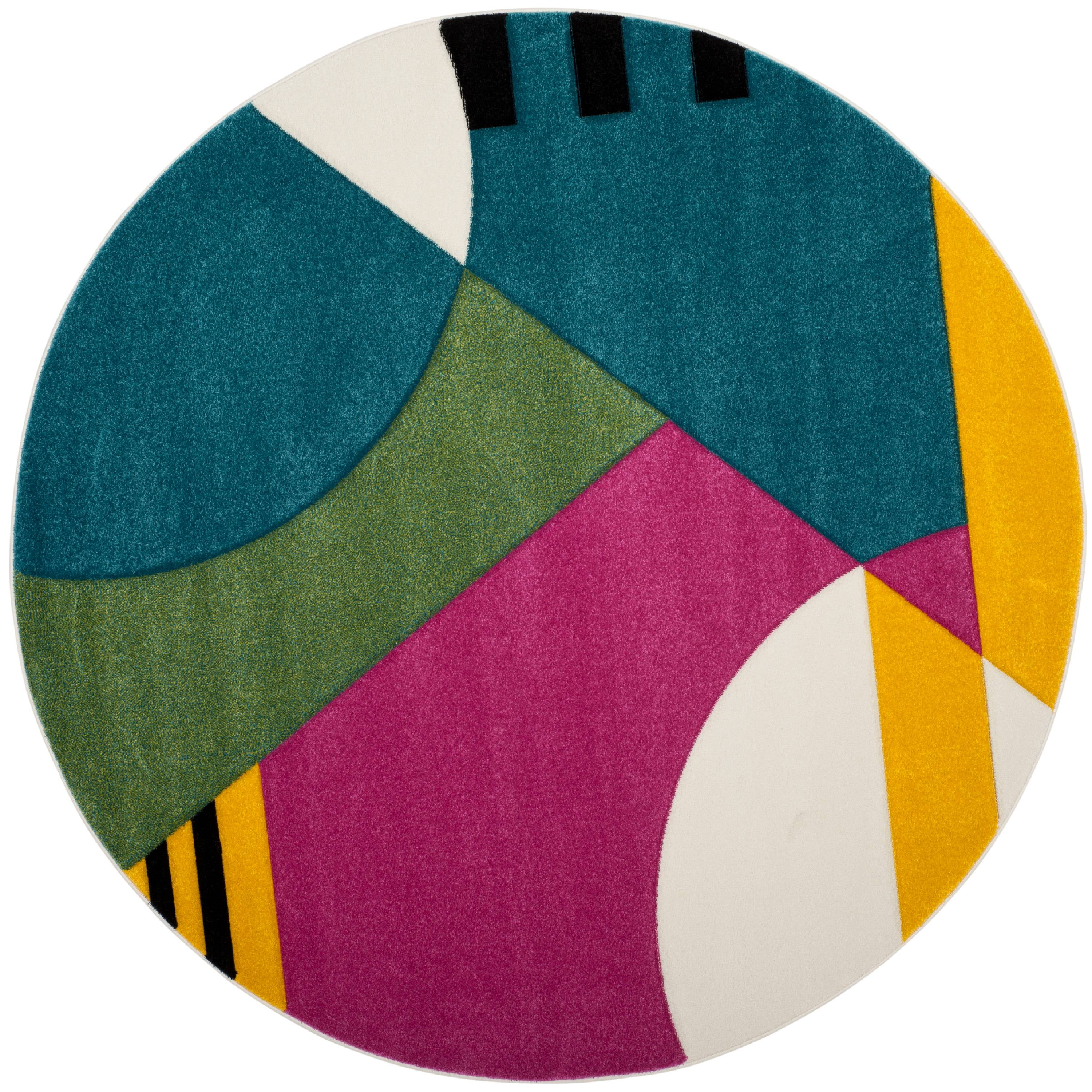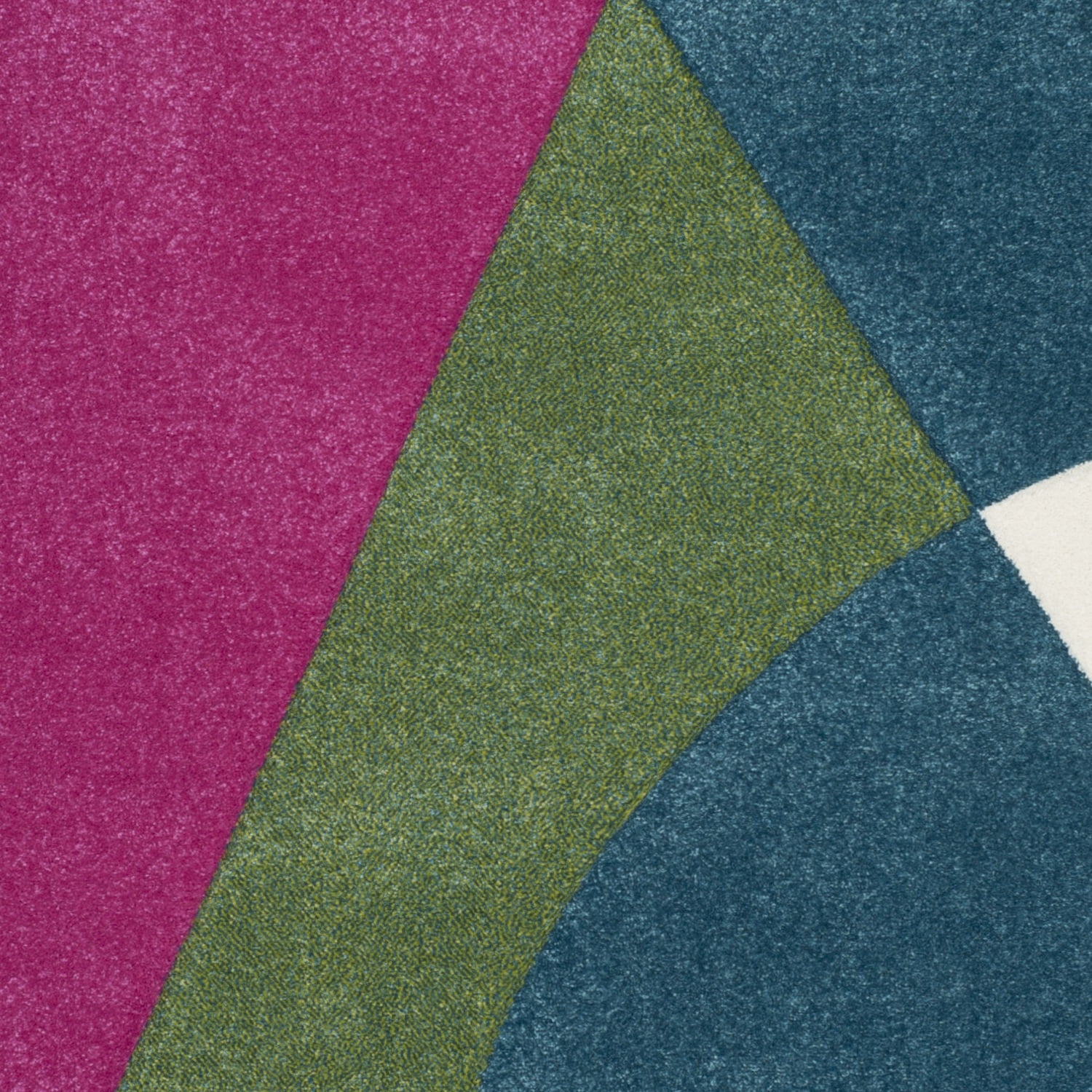 SAFAVIEH Hollywood HLW706C Peacock Blue/Fuchsia Rug Punctuated with pattern and print, the Hollywood Collection of Mid-Century modern rugs instantly transform any living space into an abode of artistic inspiration. Expertly machine-woven of enhanced synthetic fibers, these rugs are virtually non-shedding for long-lasting beauty. With a half-inch pile height, this rug has an undeniably soft feeling underfoot. Rug has an approximate thickness of 0.5 inches. For over 100 years, SAFAVIEH has set the standard for finely crafted rugs and home furnishings. From coveted fresh and trendy designs to timeless heirloom-quality pieces, expressing your unique personal style has never been easier. Begin your rug, furniture, lighting, outdoor, and home decor search and discover over 100,000 SAFAVIEH products today.