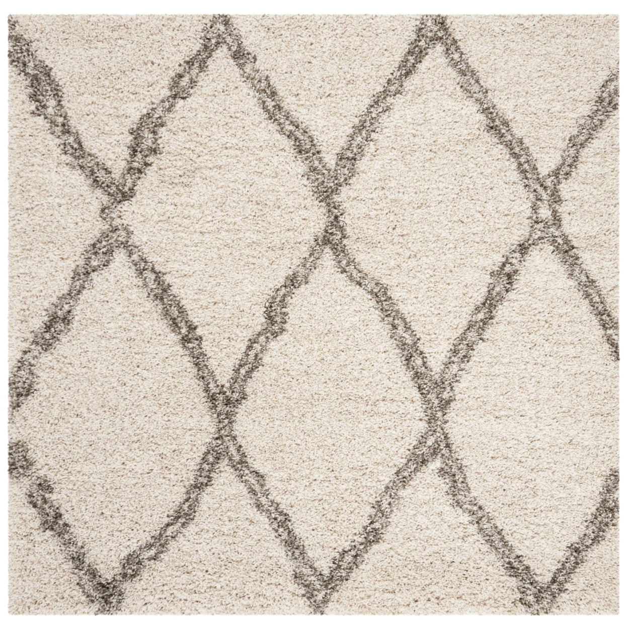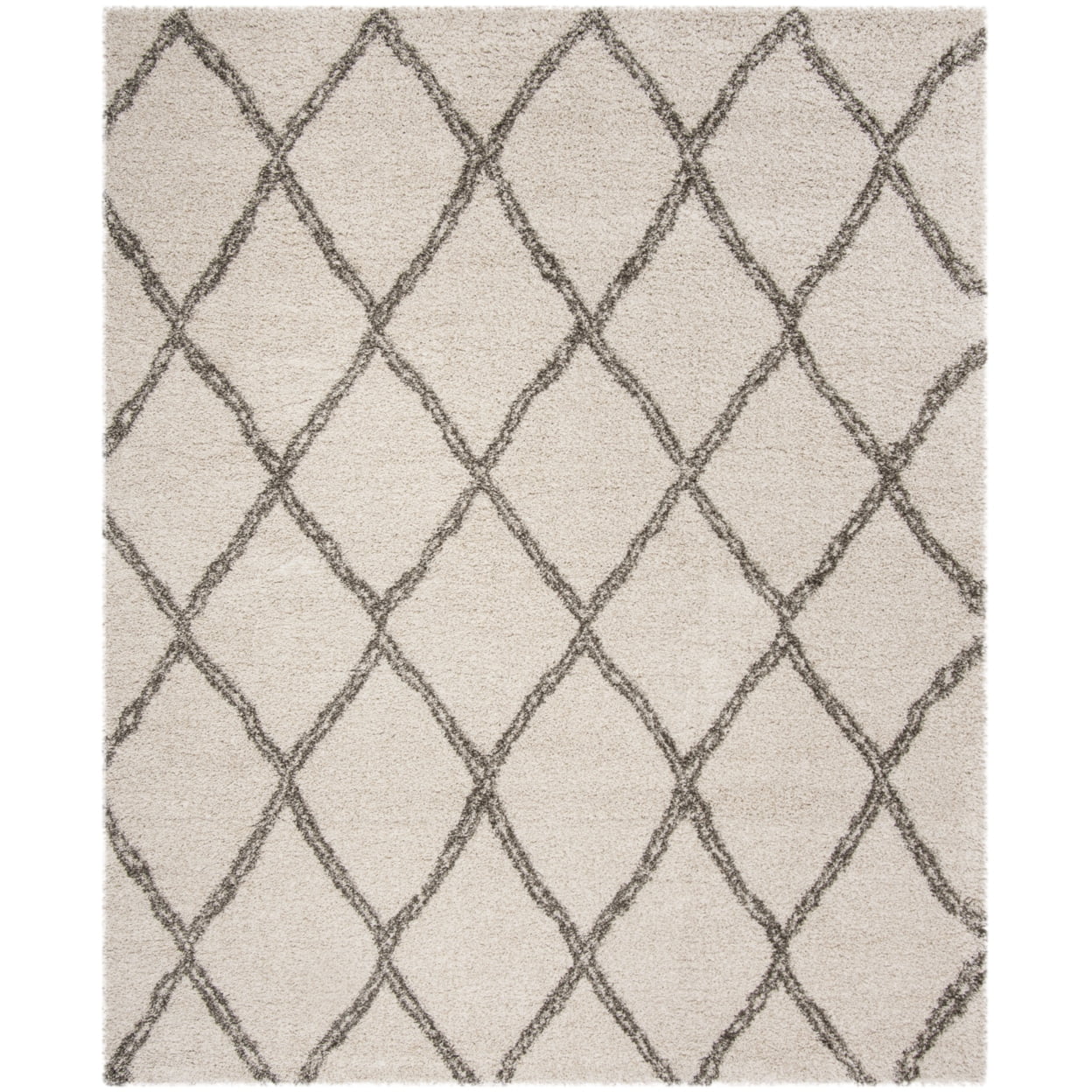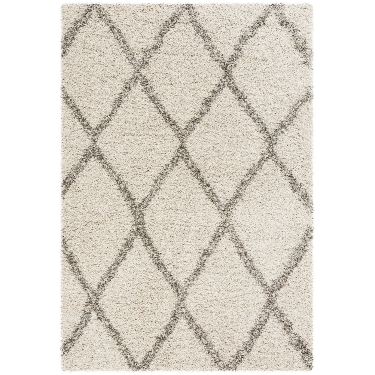 SAFAVIEH Hudson Adella Geometric Diamonds Shag Area Rug, Ivory/Grey, 5’1″ x 7’6″