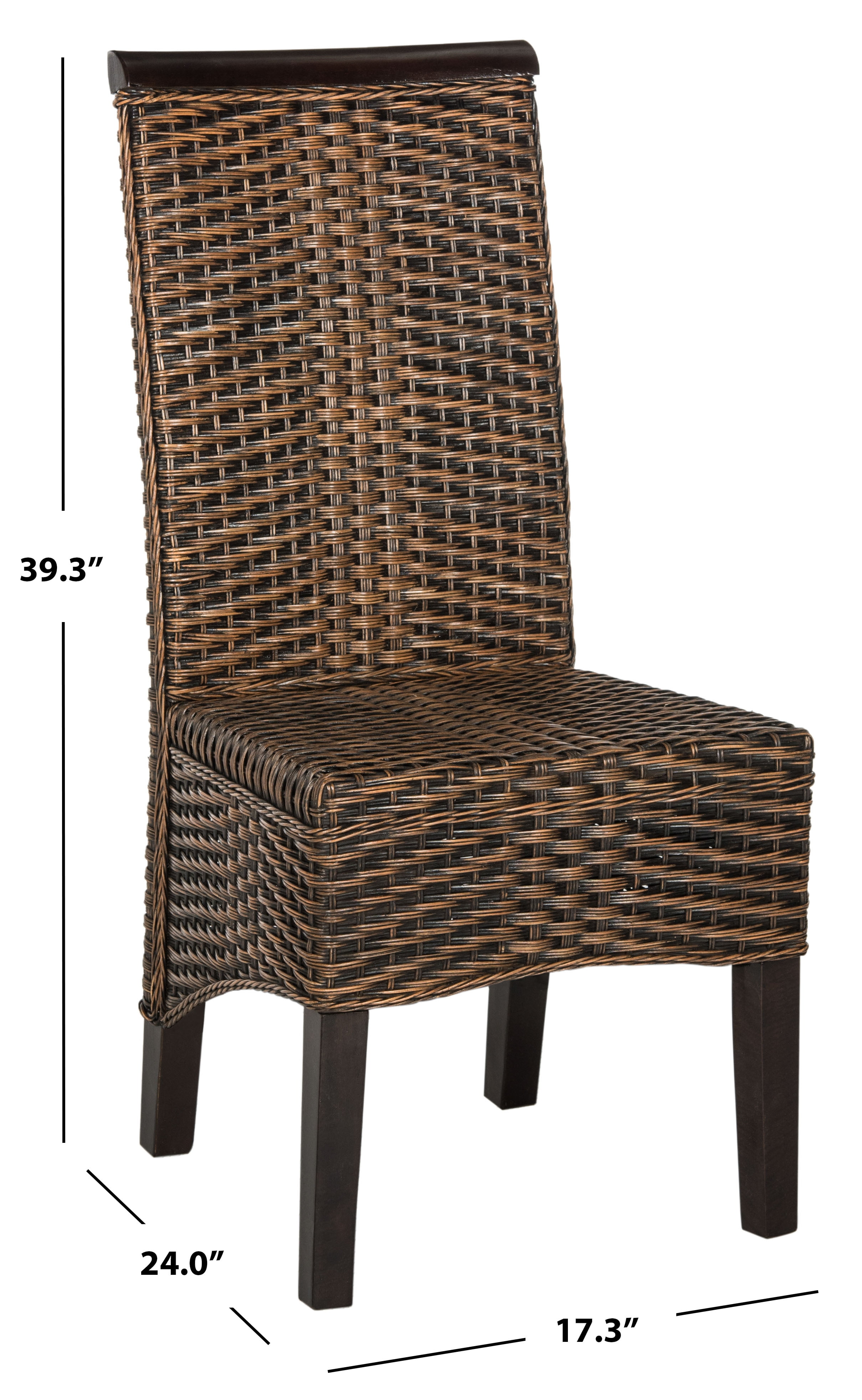 Contemporary design adds a chic look to your home Durable rattan frame for long lasting longevity Minor assembly needed Color: Brown/Multi Item Dimension: 17.3 in. W x 24 in. D x 39.3 in. H Seat Dimension: 19.2 in. W x 16.3 in. D x 18.8 in. H Backrest: 20.5 in. Leg Height: 10.2 in. Item Weight: 19.3 lbs Weight Capacity: 250 lbs Accessories in life style photo(s) not included Please note: The images and product dimensions on our website are as accurate as possible. Due to differences in computer monitors, some item’s color may vary slightly. Dust regularly with a soft, dry cloth. Never use oiled or treated cloths on lacquered finishes. Some finishes can be wiped with a damp (not wet) cloth, followed at once by rubbing with a dry cloth to remove fingerprints and smudges. For persistent spots, gently clean with a soft cloth and a solution of water and mild soap, make sure to wipe dry. Use adhesive felt pads, coasters and placemats to protect your furniture.