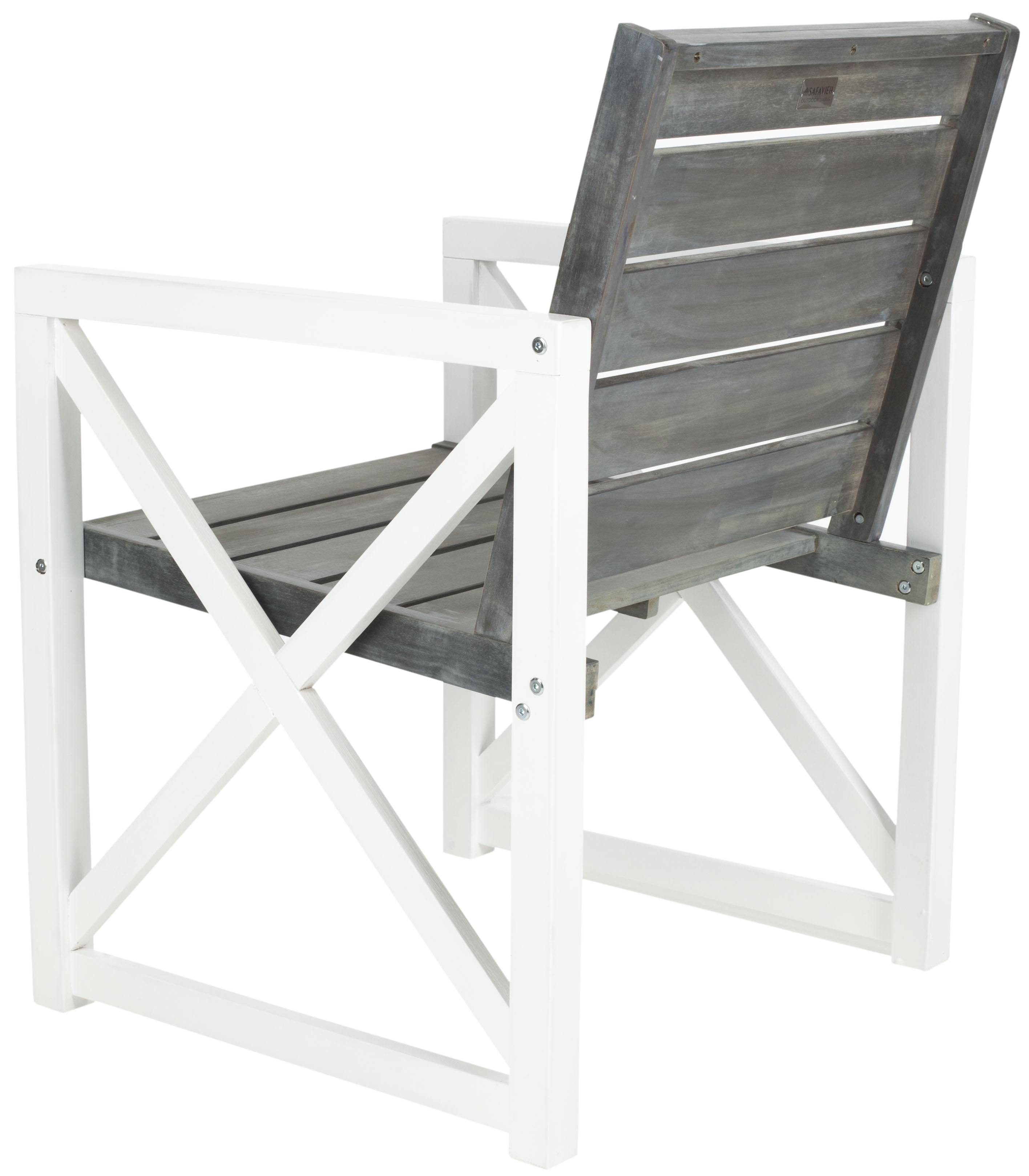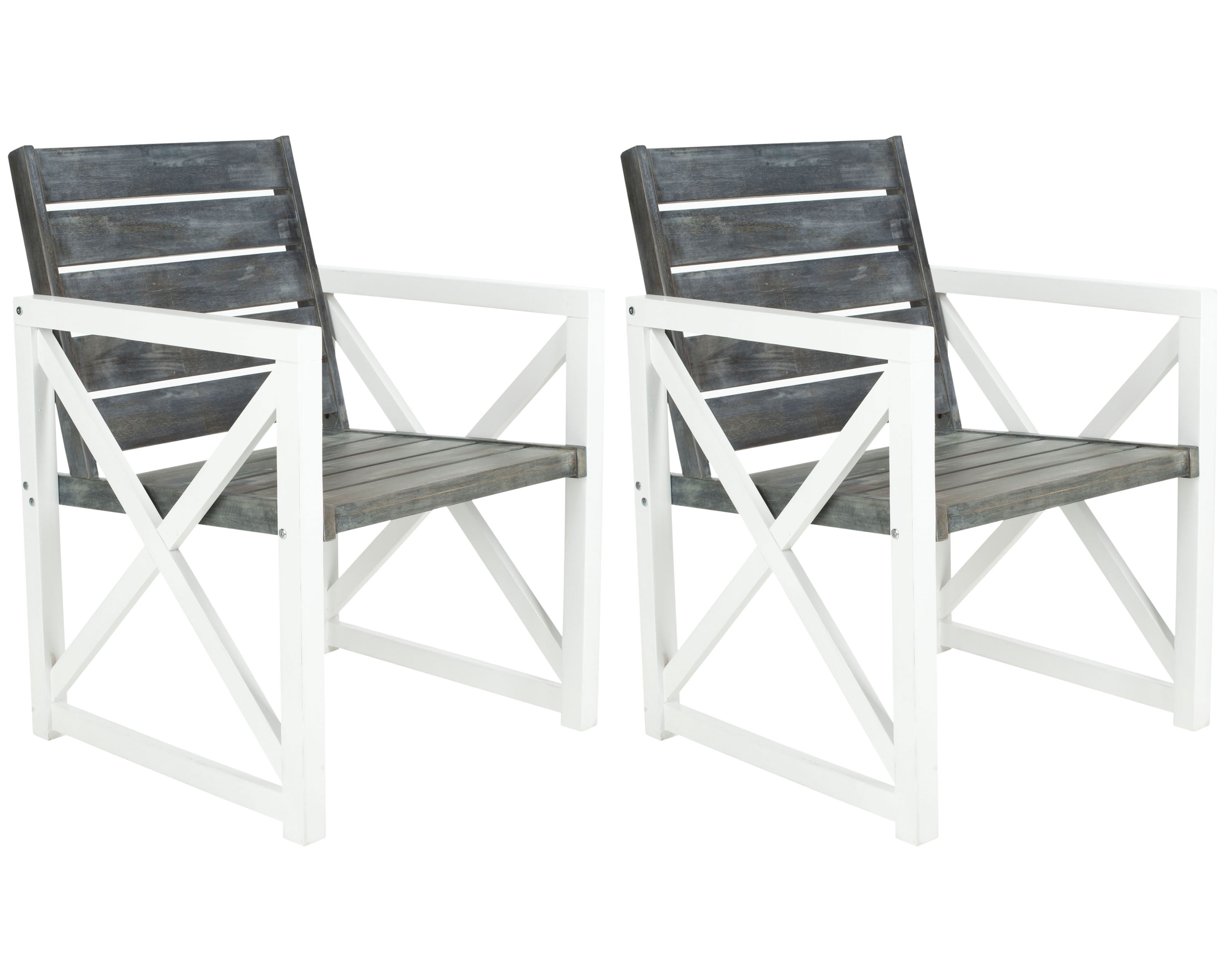 SAFAVIEH Irina Outdoor Patio Acacia Armchair, White/Ash Grey, Set of 2