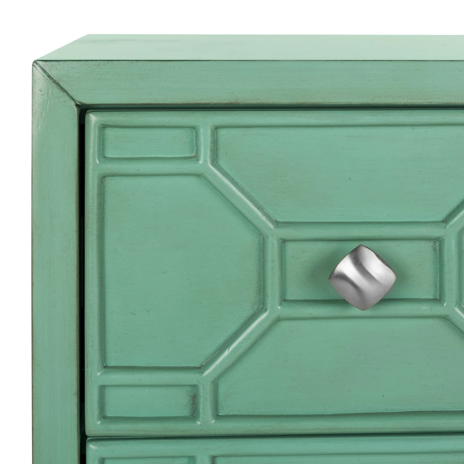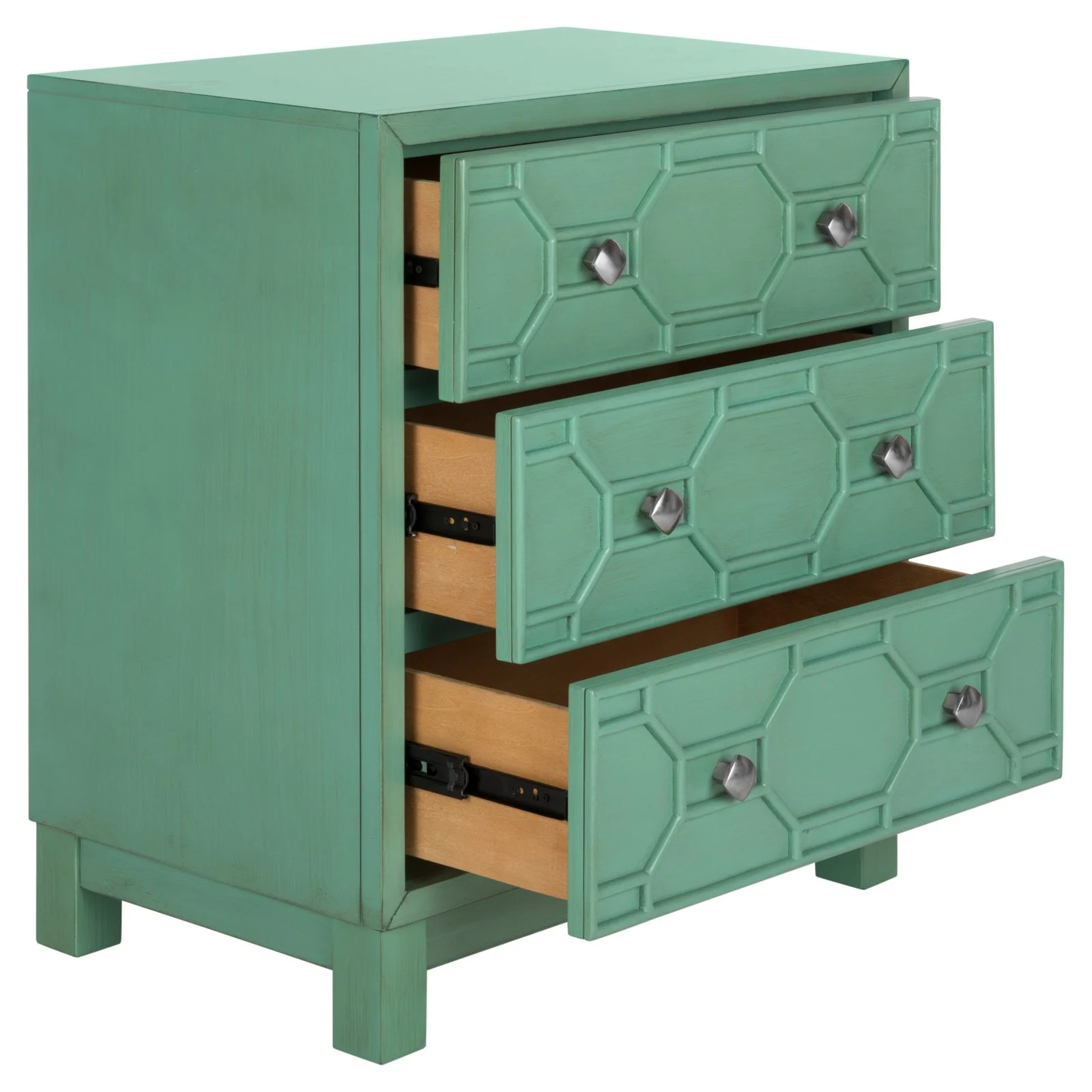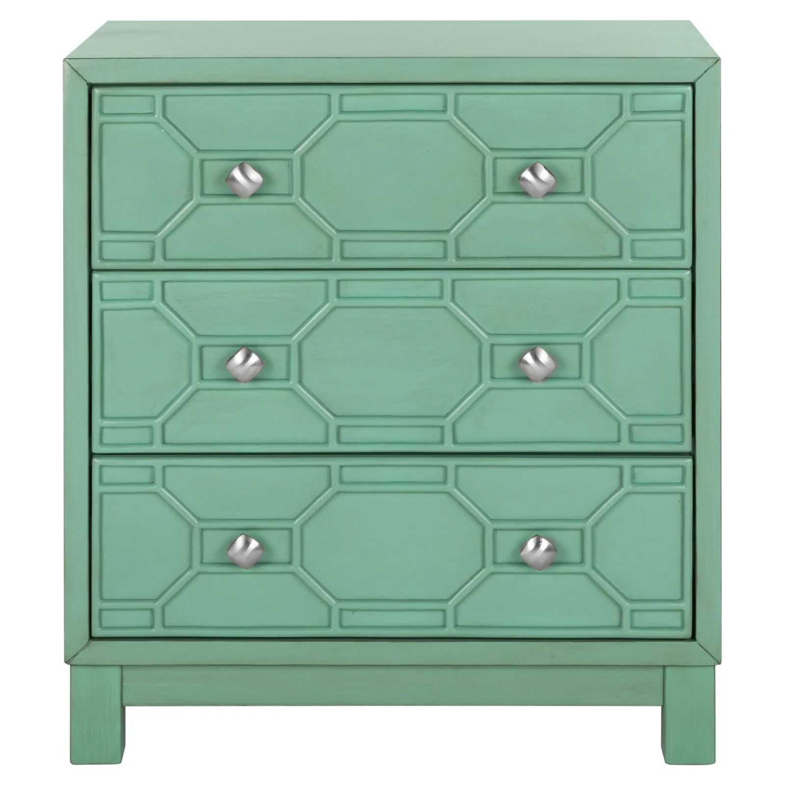 Shop SAFAVIEH at . Save Money. Live Better. SAFAVIEH Izumi Solid Geometric 3 Drawer Chest, Turquoise A modern masterpiece, this 3 drawer chest brings an elegant burst of color to the living room. Crafted with solid rubberwood, it features a bold turquoise finish and a stunning raised wood geometric pattern that graces each of its three ample drawers. For over 100 years, SAFAVIEH has set the standard for finely crafted rugs and home furnishings. Begin your rug, furniture, lighting, outdoor, and home decor search and discover over 100,000 SAFAVIEH products today.