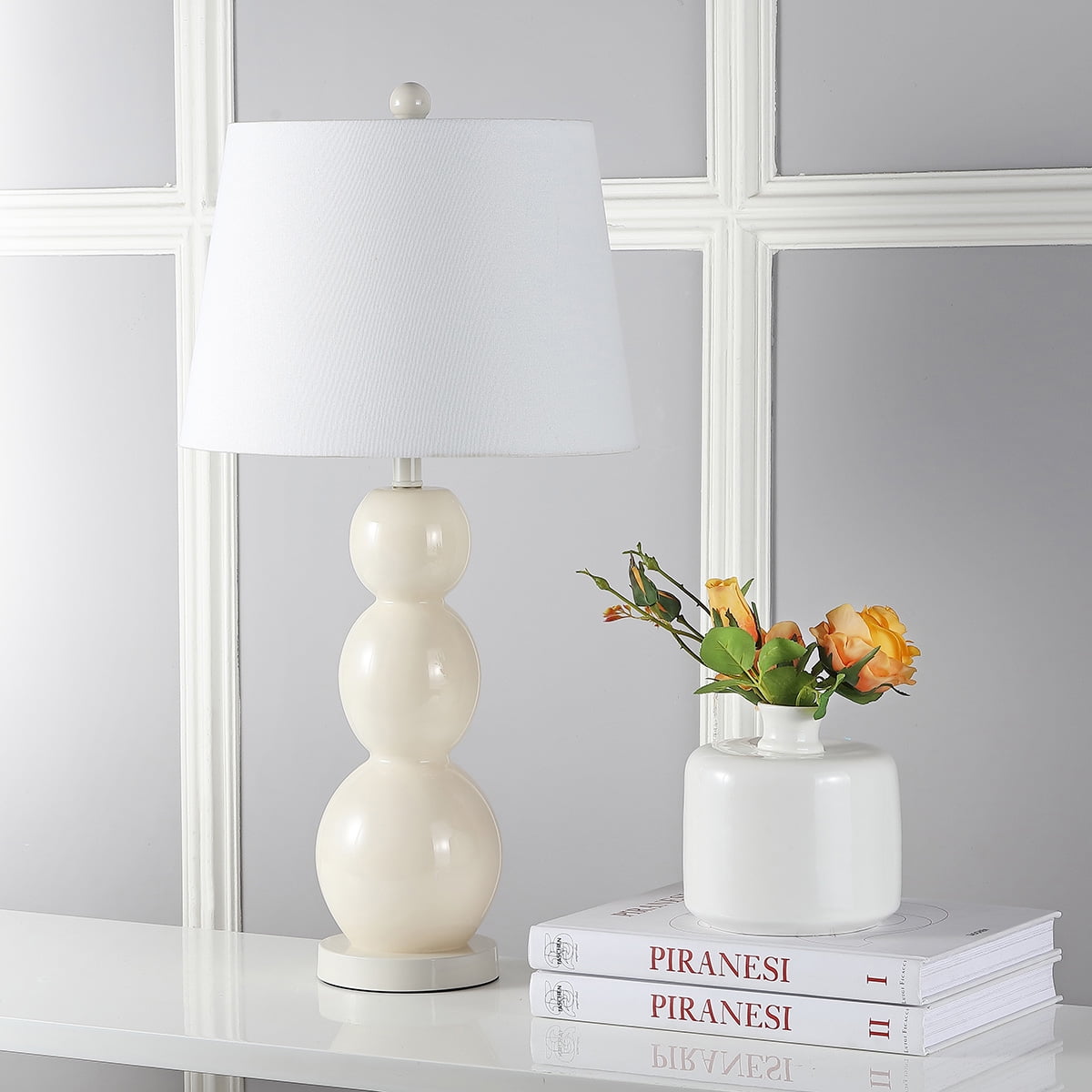SAFAVIEH Jayne 26 in. Grey Glass Table Lamp with Off-White Cotton Shade, Set of 2