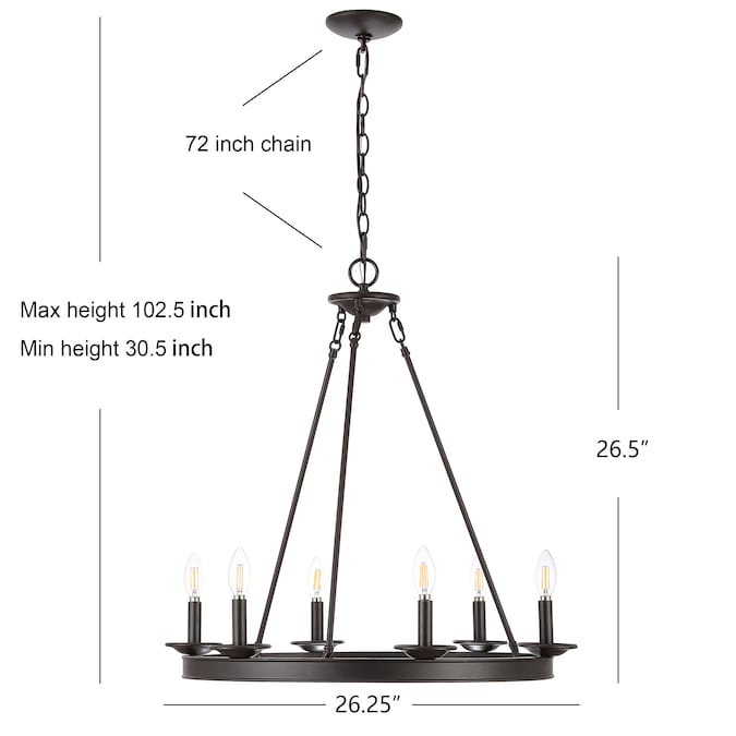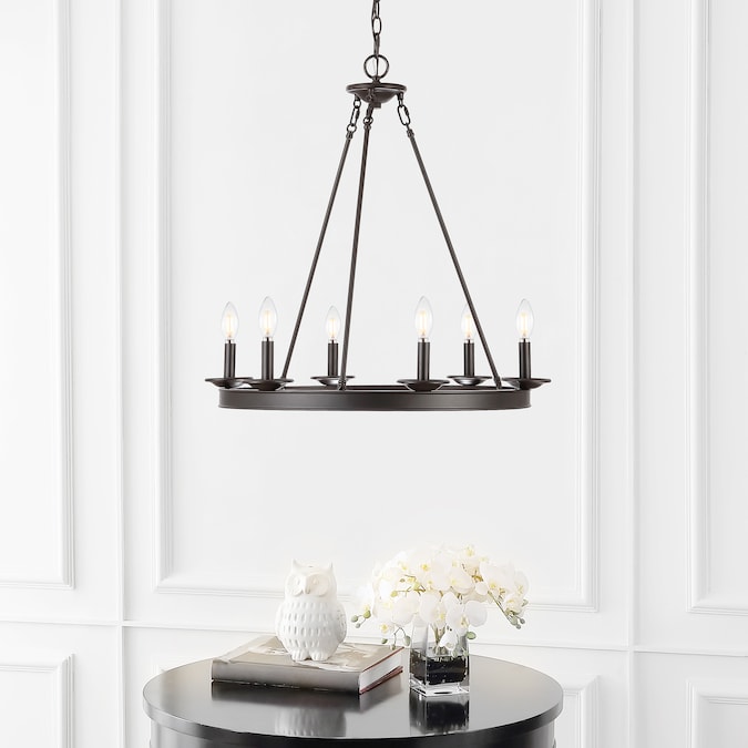 Elegant and understated, this timeless 6-light metal chandelier adds character to any living room or dining room. Designed with six gorgeous lights to create a subtle, ambient glow, its deluxe oil-rubbed bronze finish blends seamlessly into any decor.