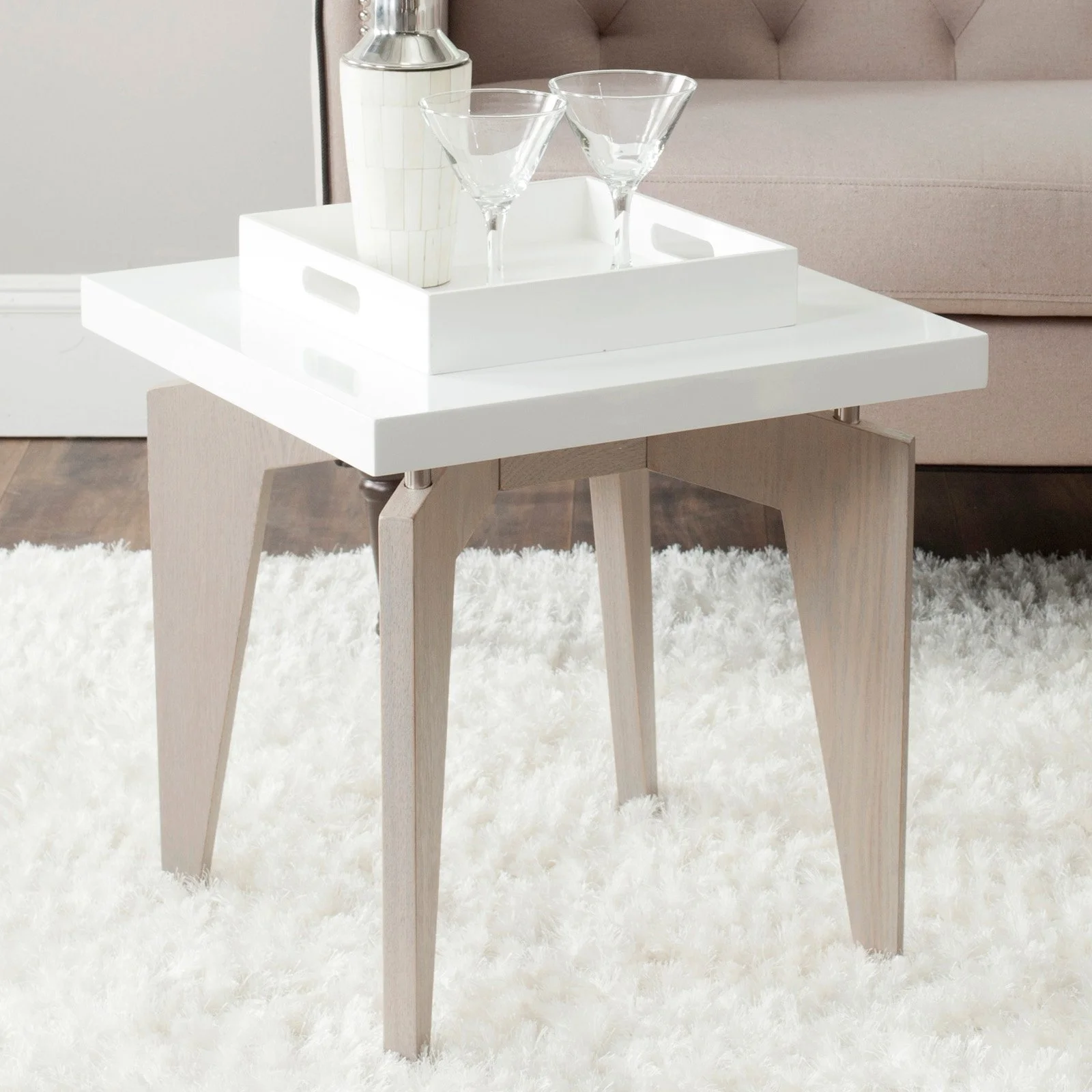 Shop SAFAVIEH at . Save Money. Live Better. SAFAVIEH Josef Lacquer End Table, White/Dark Brown The smooth white lacquer top of the contemporary Joseph End Table appears to float on metal posts that connect it to dark brown wood grained legs. Graphic and sleek, the surface of this end table is easy to clean and great for entertaining. For over 100 years, SAFAVIEH has set the standard for finely crafted rugs and home furnishings. Begin your rug, furniture, lighting, outdoor, and home decor search and discover over 100,000 SAFAVIEH products today.