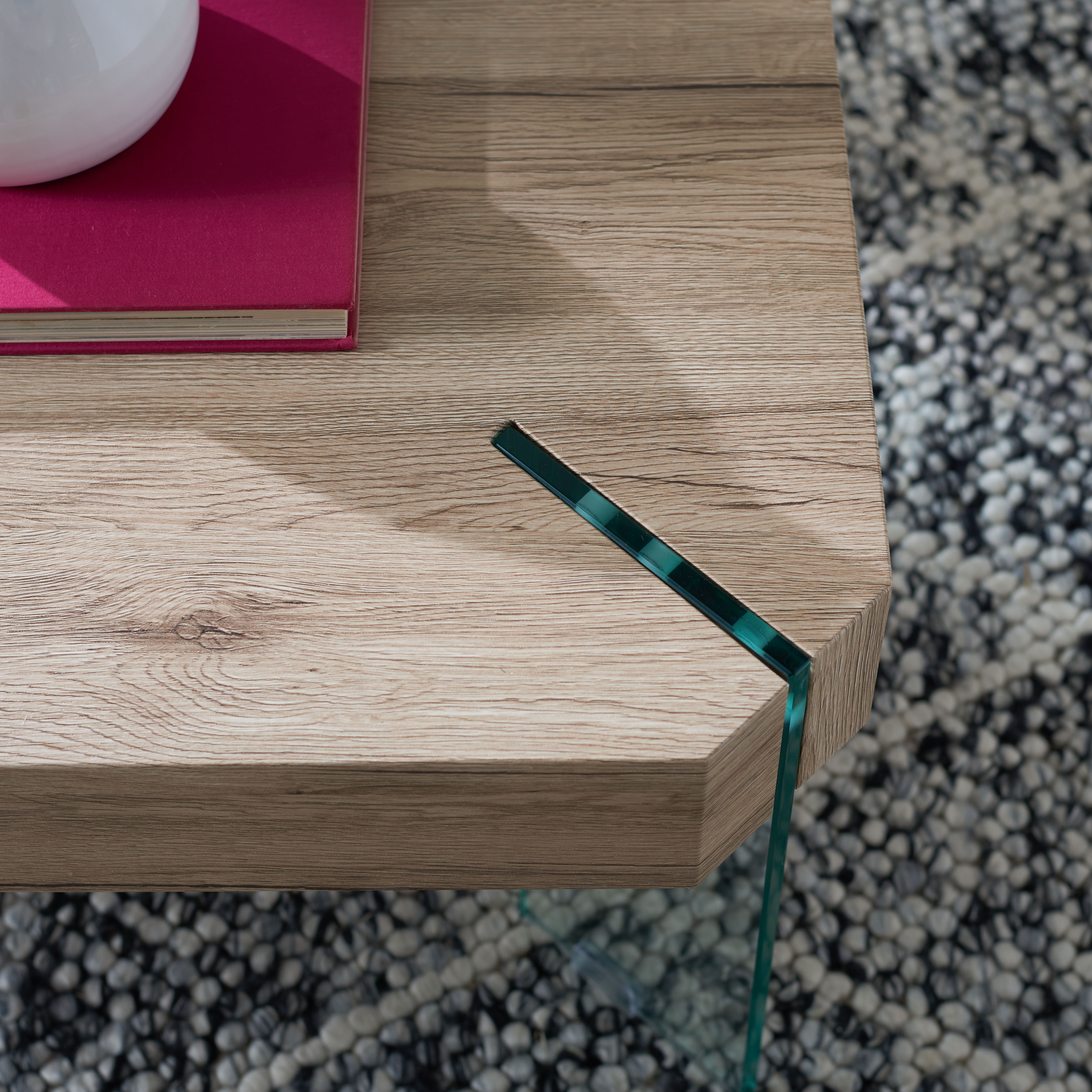 Contemporary design adds a chic look to your home Durable solid wood frame for long lasting longevity Minor assembly needed Color: Natural/Glass Legs Item Weight: 41 lbs Weight Capacity: 80 lbs Assembled dimensions: 43.3 in. W x 23.6 in. D x 15.7 in. H Leg Height: 15.7 in. Finish Surface Treatment: Powder Coating Accessories in life style photo(s) not included Please note: The images and product dimensions on our website are as accurate as possible. Due to differences in computer monitors, some furniture colors may vary slightly. Lengths and widths may vary from the published dimensions. We do our best to provide you with an exact measurement, but please be advised that some variation exists. Dust regularly with a soft, dry cloth. Never use oiled or treated cloths on lacquered finishes. Some finishes can be wiped with a damp (not wet) cloth, followed at once by rubbing with a dry cloth to remove fingerprints and smudges. For persistent spots, gently clean with a soft cloth and a solution of water and mild soap, make sure to wipe dry. Use adhesive felt pads, coasters and placemats to protect your furniture.