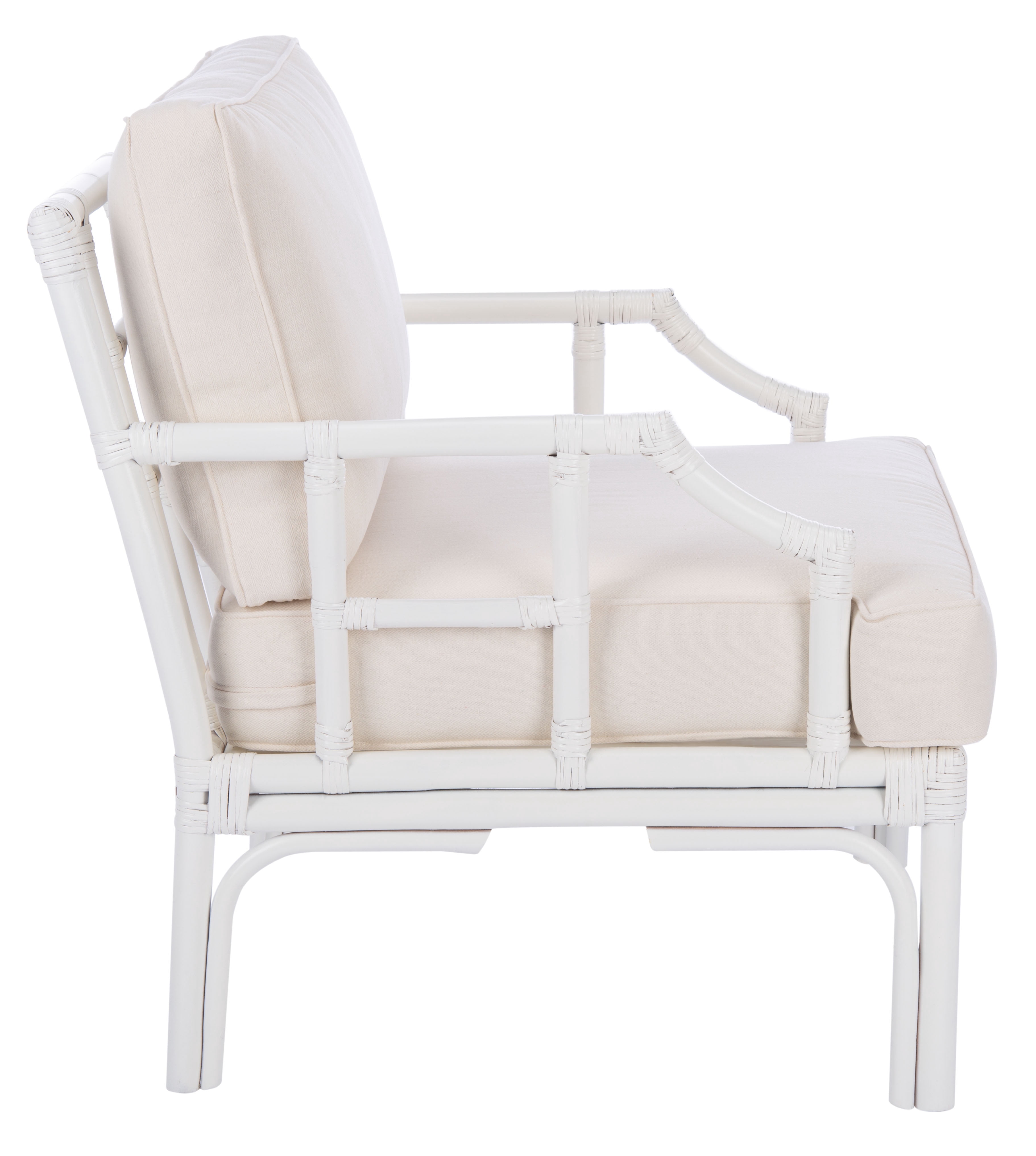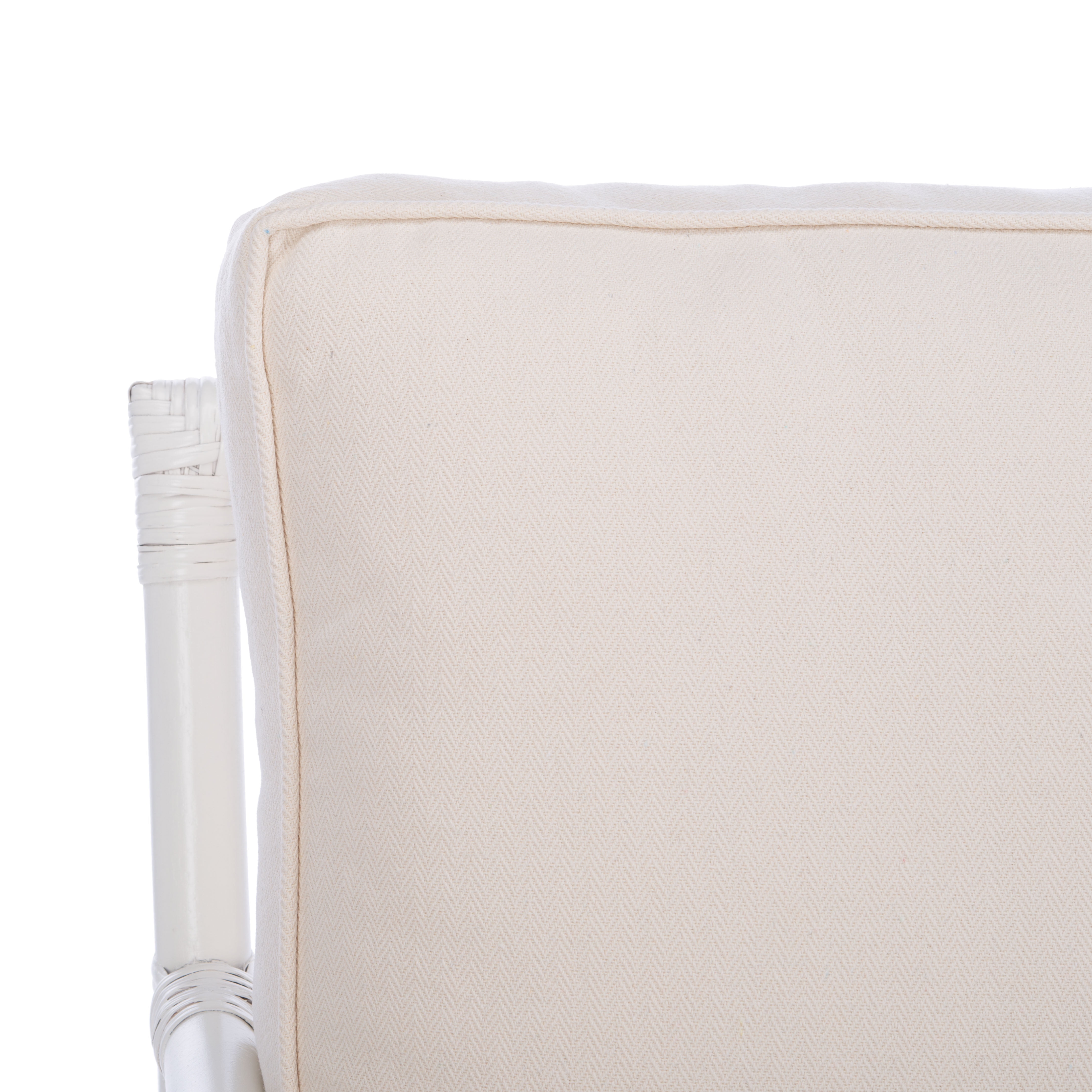 Contemporary design adds a chic look to your home Crafted with rattan wood No assembly required Color: White Assembled dimensions: 27.6 in. W x 31.5 in. D x 31.5 in. H Cushion material: 60% cotton/40% polyester Leg Height: 10.63 in. Seat dimensions: 28.3 in. W x 21.3 in. D x 19.7 in. H Item Weight: 31.31 lbs Weight capacity: 250lbs. Works with a wide range of dining styles Accessories in life style photo(s) not included Please note: The images and product dimensions on our website are as accurate as possible. Due to differences in computer monitors, some furniture colors may vary slightly. Lengths and widths may vary from the published dimensions. We do our best to provide you with an exact measurement, but please be advised that some variation exists. Clean by brushing with a soft brush or use a lightly damp cloth