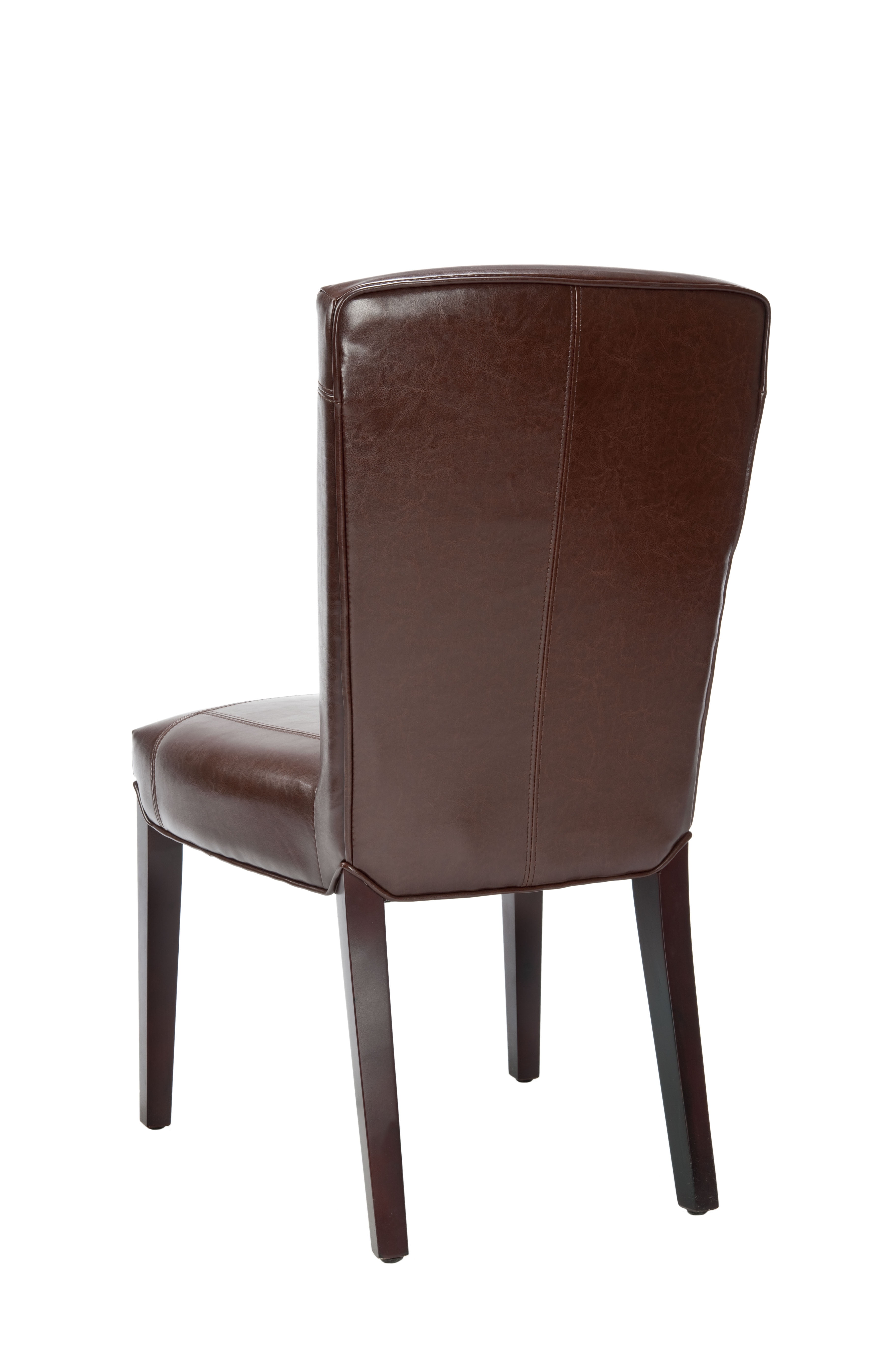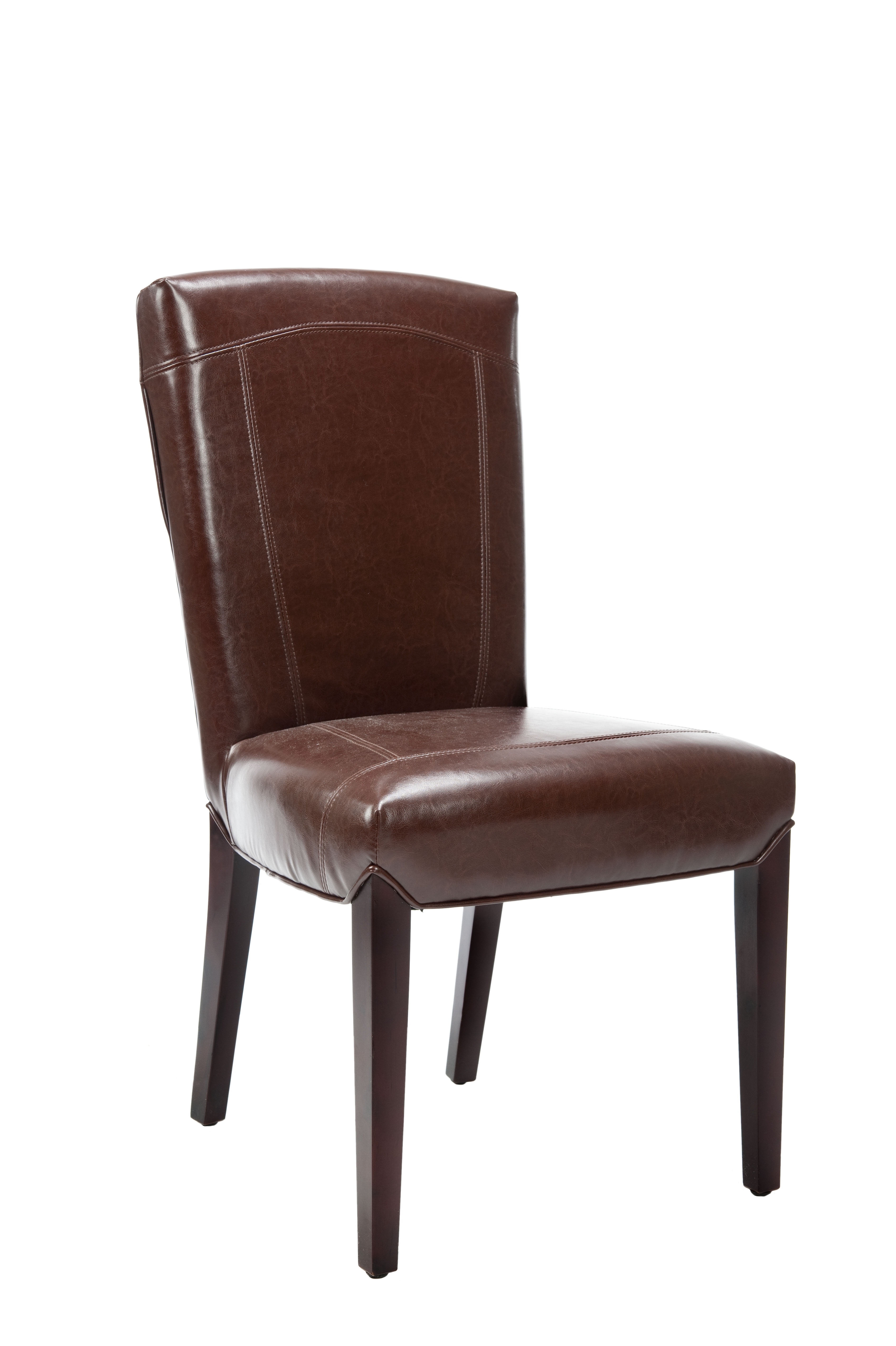 Contemporary design adds a chic look to your home Durable birch wood frame for long lasting longevity No assembly needed Color: Brown Frame Color: Cherry Mahogany Item Dimension: 20.3 in. W x 24.8 in. D x 39.4 in. H Upholstered with Bicast Leather Item contains foam Seat Dimension: 20.3 in. W x 17.5 in. D x 19.9 in. H Leg Height: 14.4 in. H Sold in a set of 2 Item Weight: 17.6 lbs. Weight Capacity: 275 lbs. each Accessories in life style photo(s) not included Please note: The images and product dimensions on our website are as accurate as possible. Due to differences in computer monitors, some furniture colors may vary slightly. Lengths and widths may vary from the published dimensions. We do our best to provide you with an exact measurement, but please be advised that some variation exists. Although Leather is one of the most durable upholstery materials, proper care is vital to maintain its appearance and performance. Dust weekly using a soft, clean cloth slightly dampened with distilled water. Blot spills immediately with a soft, clean absorbent dry cloth.