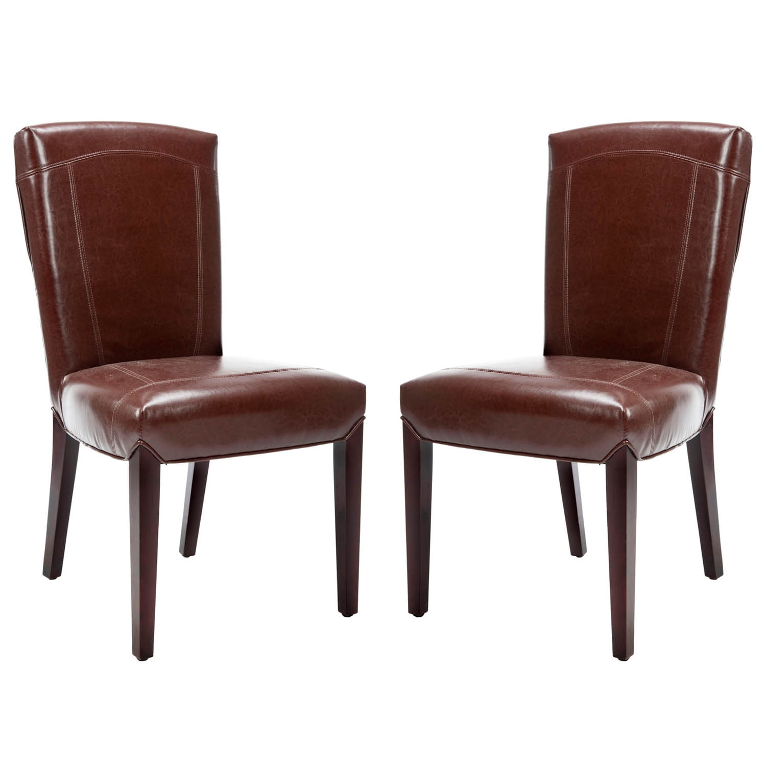 Shop SAFAVIEH at . Save Money. Live Better. SAFAVIEH Ken 19”H Rustic Classic Leather Side Chair, Brown, Set of 2 Brown leather and a cherry mahogany finish on the legs give the Ken side chair a masculine edge that’s softened just enough with outline detail on the backrest and round legs. For over 100 years, SAFAVIEH has set the standard for finely crafted rugs and home furnishings. Begin your rug, furniture, lighting, outdoor, and home decor search and discover over 100,000 SAFAVIEH products today.