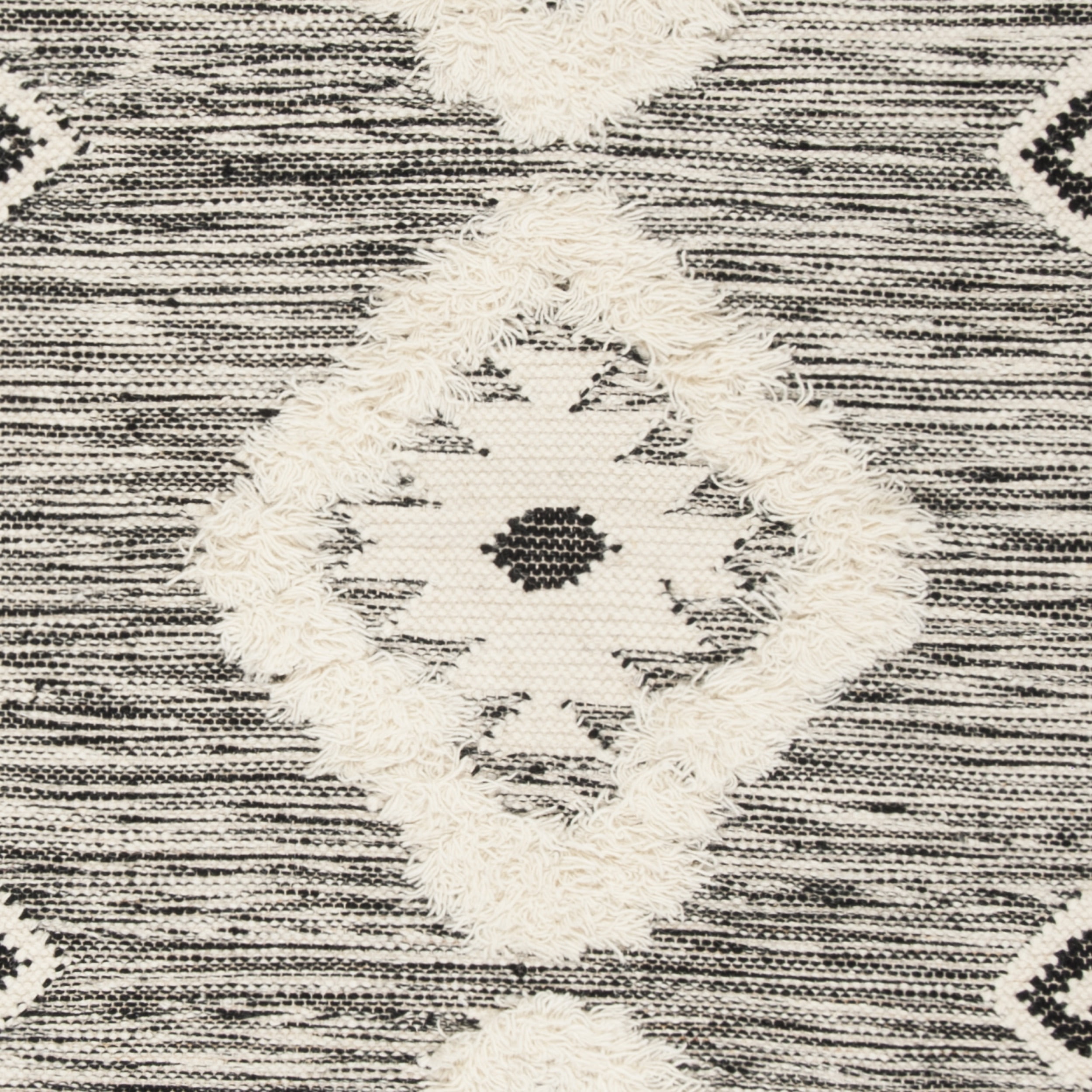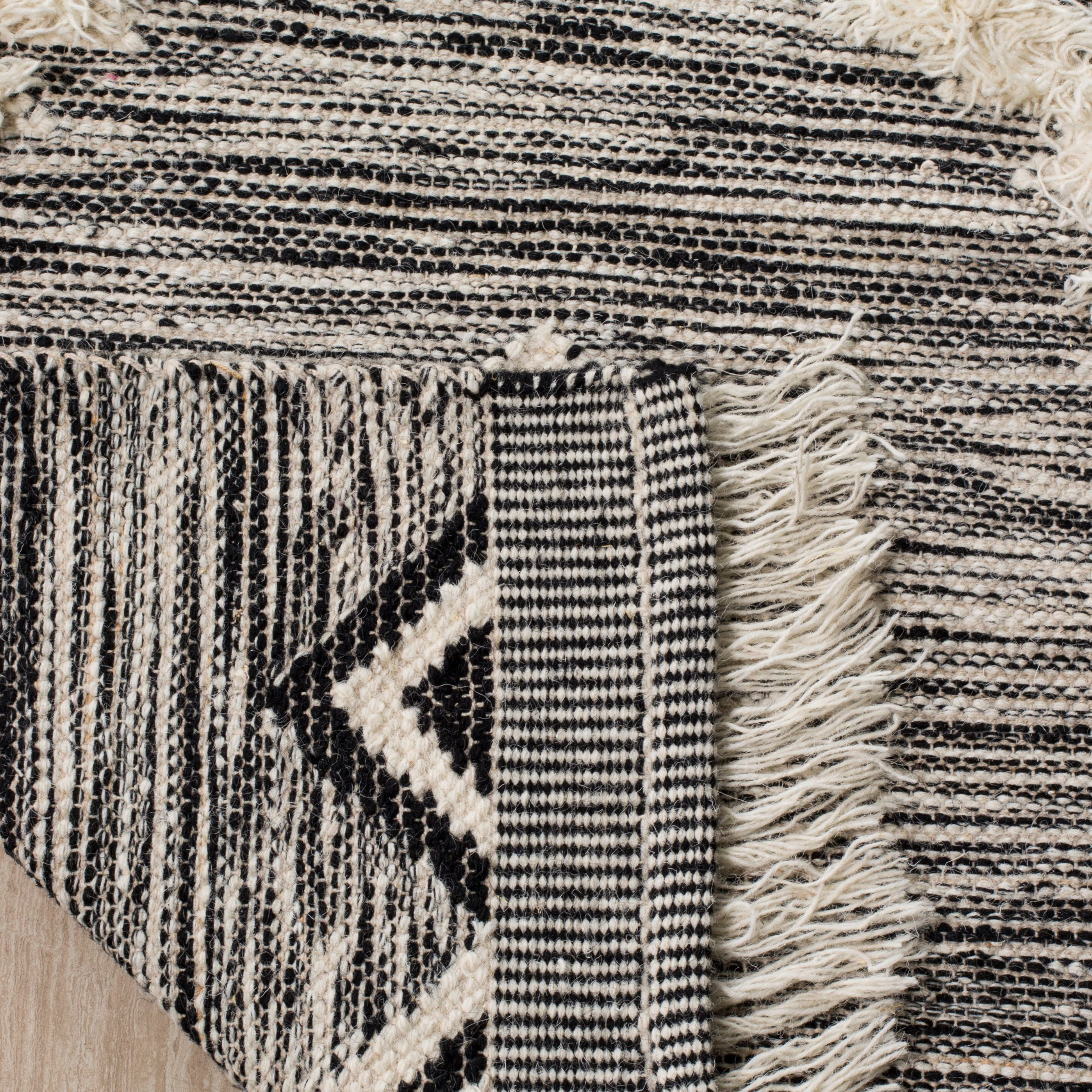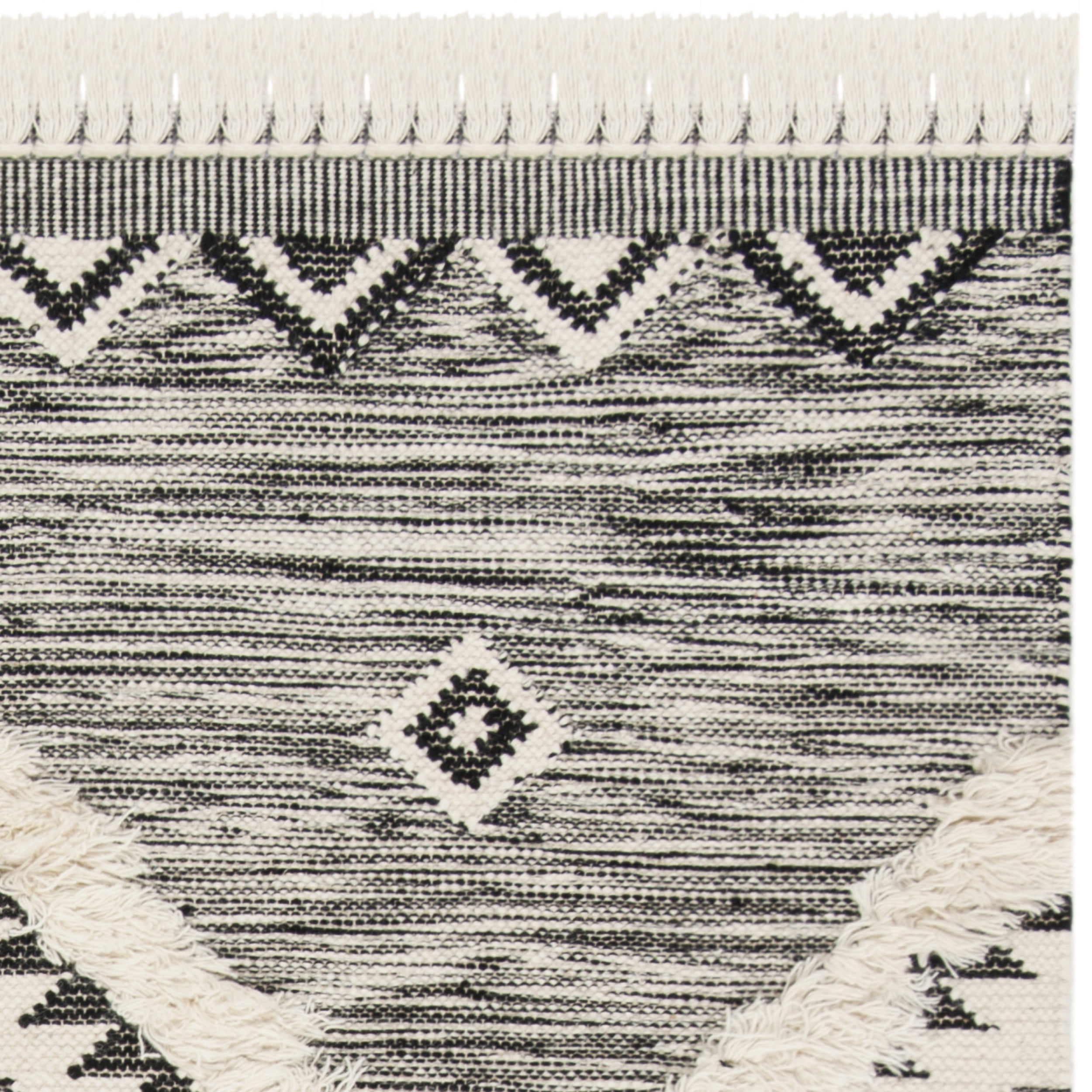 SAFAVIEH Kenya Pierce Geometric Diamonds Fringe Area Rug, Black/Ivory, 5′ x 8′