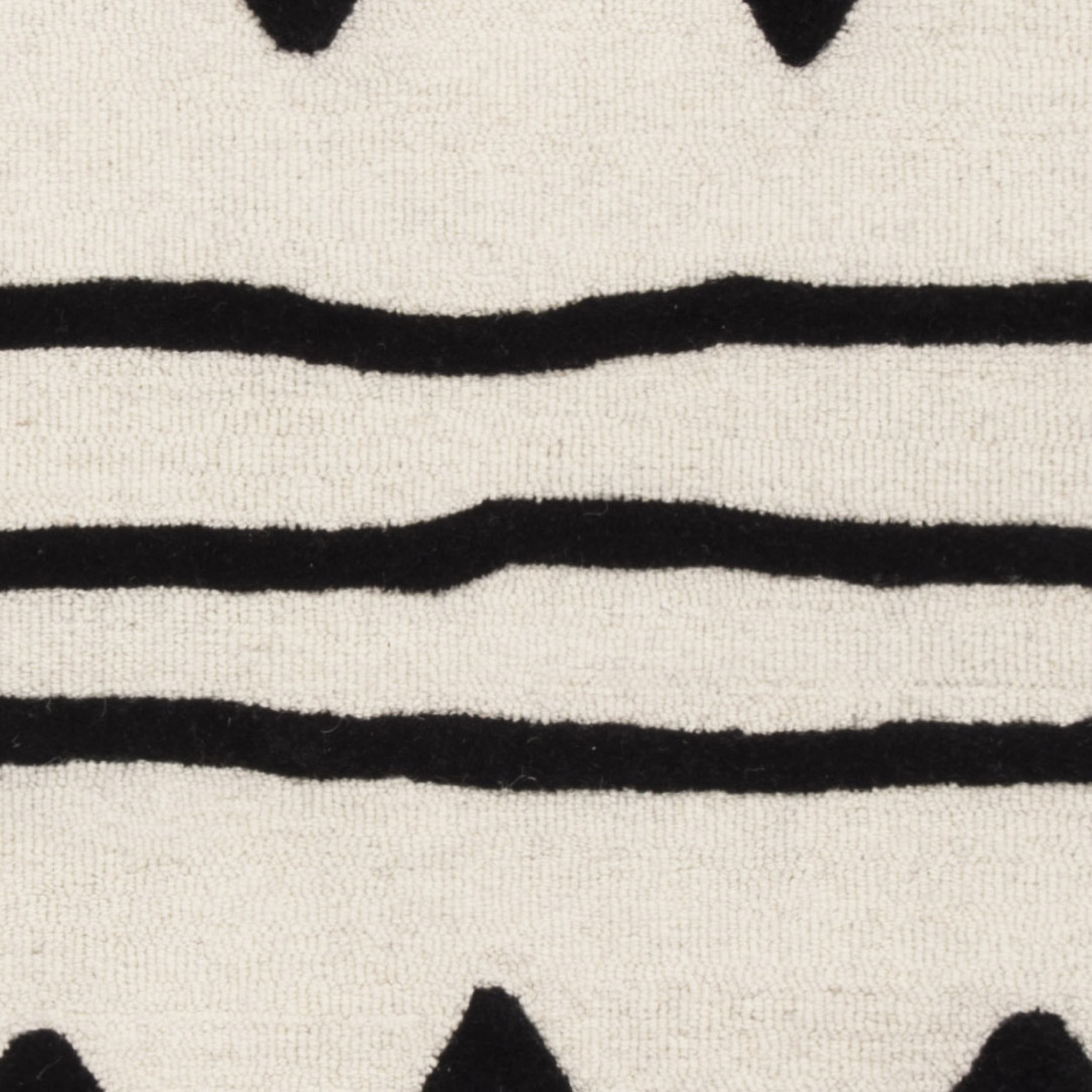 Color: Ivory/Black Size: 2’6″ x 8′ Runner Hand Tufted in India Pile Height: 0.5 in. Cotton backing, rug pad (sold separately) recommended to help prevent shifting and sliding 100% Wool Pile Stylish addition for any room Accessories in lifestyle photos not included New wool rugs shed as a natural consequence of how they are made; vacuum a new wool rug 1-2 times a week for the first few weeks using a low pressure vacuum cleaner without beater bars; vacuum in the direction of the pile, not against it; do not pull loose ends or stray loops, clip them with scissors to remove Vacuum (preferably one without beater bars) regularly and spot clean; for hard-to-remove stains, professional rug cleaning is recommended; rotating your rugs every 3-6 months will protect against uneven wear from foot traffic and furniture weight Use rug protectors under the legs of heavy furniture to avoid flattening piles Avoid direct sunlight as it will cause the colors in your area rug to fade over time; place your area rug away from direct sunlight whenever possible For an instant decorating makeover, this area rug is one of the easiest and most fashionable ways to refresh a room with character and style. Please note: The images and product dimensions on our website are as accurate as possible. Due to differences in computer monitors, some rug colors may vary slightly. Lengths and widths may vary from the published dimensions. We do our best to provide you with an exact measurement, but please be advised that some variation exists. Patterns may vary slightly according to shape and size selected. Packing and shipping of your rug may cause temporary creases; these surface waves are not imperfections or damages and will gradually recede; back-rolling or reverse rolling is the fastest and easiest way to remove creases in your area rug; allow ample time for your rug to settle, these creases and waves will normally flatten out Available in multiple color and sizes For carpet-to-carpet use, we recommend placing a hold pad in-between for protection