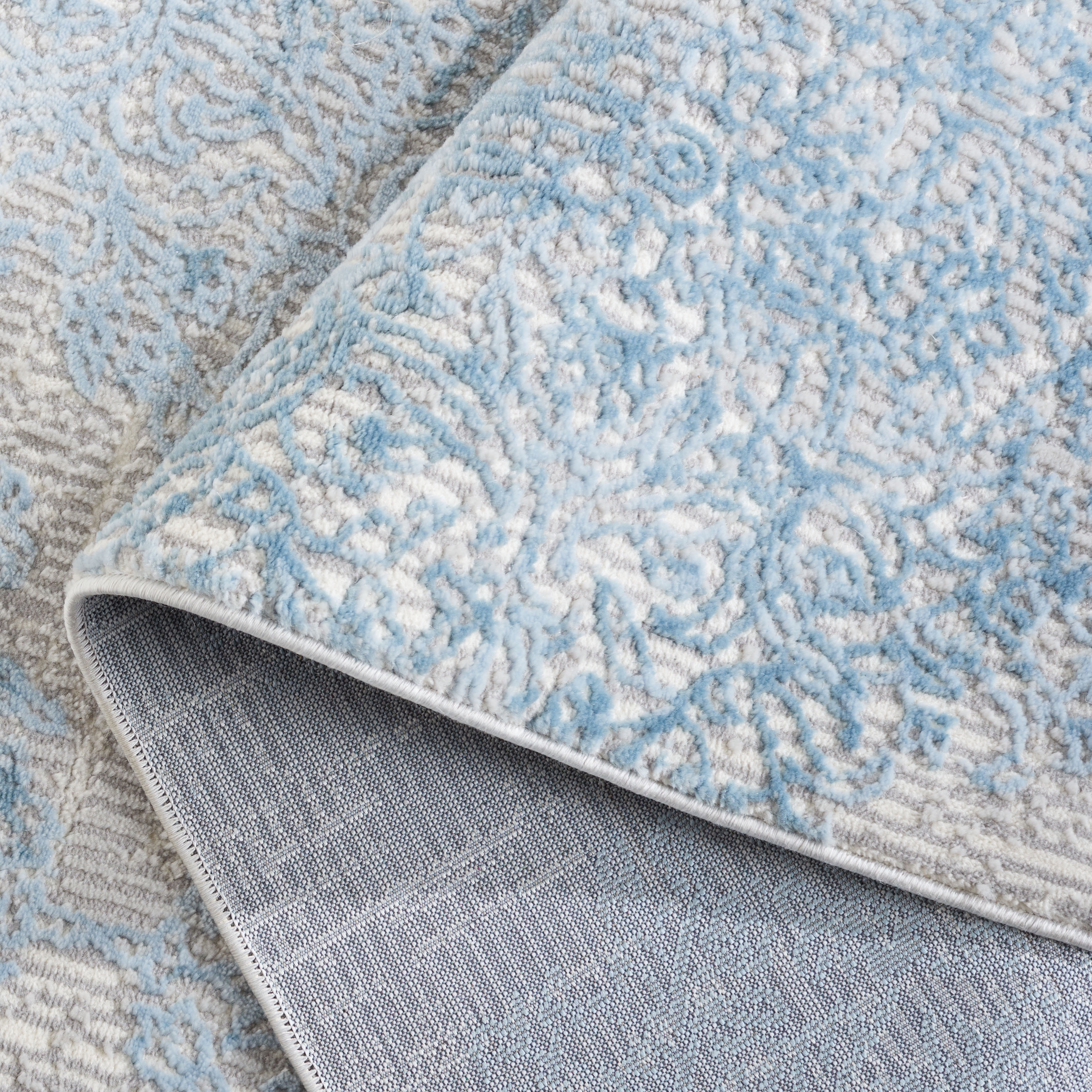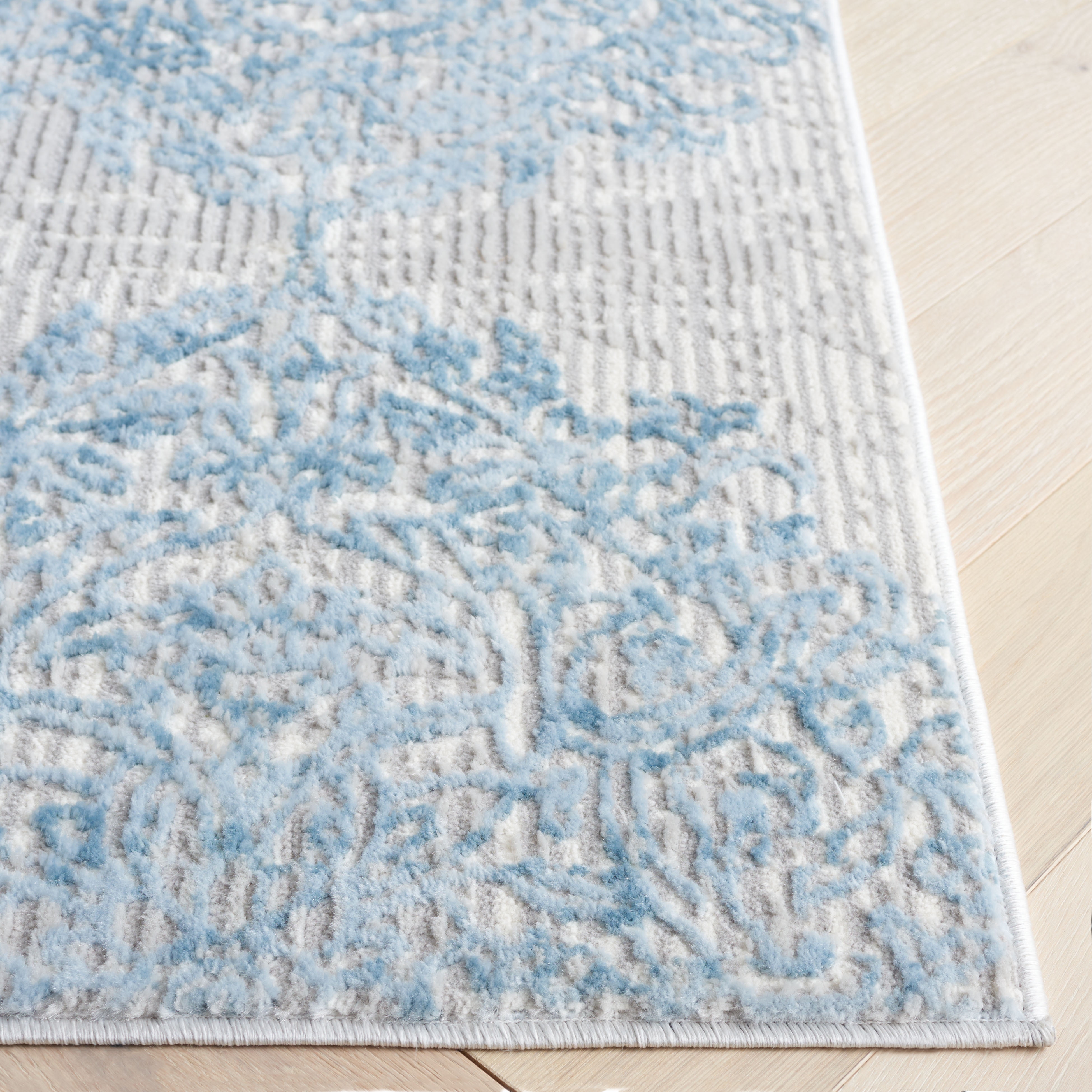 [COLOR]: Grey/Blue [SIZE]: 8′ x 10′ [COUNTRY OF ORIGIN]: Power Loomed in Turkey [PILE HEIGHT]: 0.38″ [MATERIAL]: 35% Polypropylene; 35% Polyester; 30% Cotton [BACKING]: Backing contains cotton with latex. Rug pad (sold separately) recommended to help prevent shifting and sliding [HOLD PAD]: For carpet-to-carpet use, we recommend placing a hold pad in-between for protection [RUG PROTECTORS]: Use rug protectors under the legs of heavy furniture to avoid flattening piles [CLEANING]: Vacuum regularly (preferably one without beater bars) and spot clean; for hard-to-remove stains, professional rug cleaning is recommended; rotating your rugs every 3-6 months will protect against uneven wear from foot traffic and furniture weight Avoid direct sunlight as it will cause the colors in your area rug to fade over time; place your area rug away from direct sunlight whenever possible The images and product dimensions on our website are as accurate as possible. Due to differences in computer monitors, some rug colors may vary slightly. Lengths and widths may vary from the published dimensions. We do our best to provide you with an exact measurement, but please be advised that some variation exists. Patterns may vary slightly according to shape and size selected. Packing and shipping of your rug may cause temporary creases; these surface waves are not imperfections or damages and will gradually recede; back-rolling or reverse rolling is the fastest and easiest way to remove creases in your area rug; allow ample time for your rug to settle, these creases and waves will normally flatten out Accessories in lifestyle photos not included Check out our other products on : SAFAVIEH
