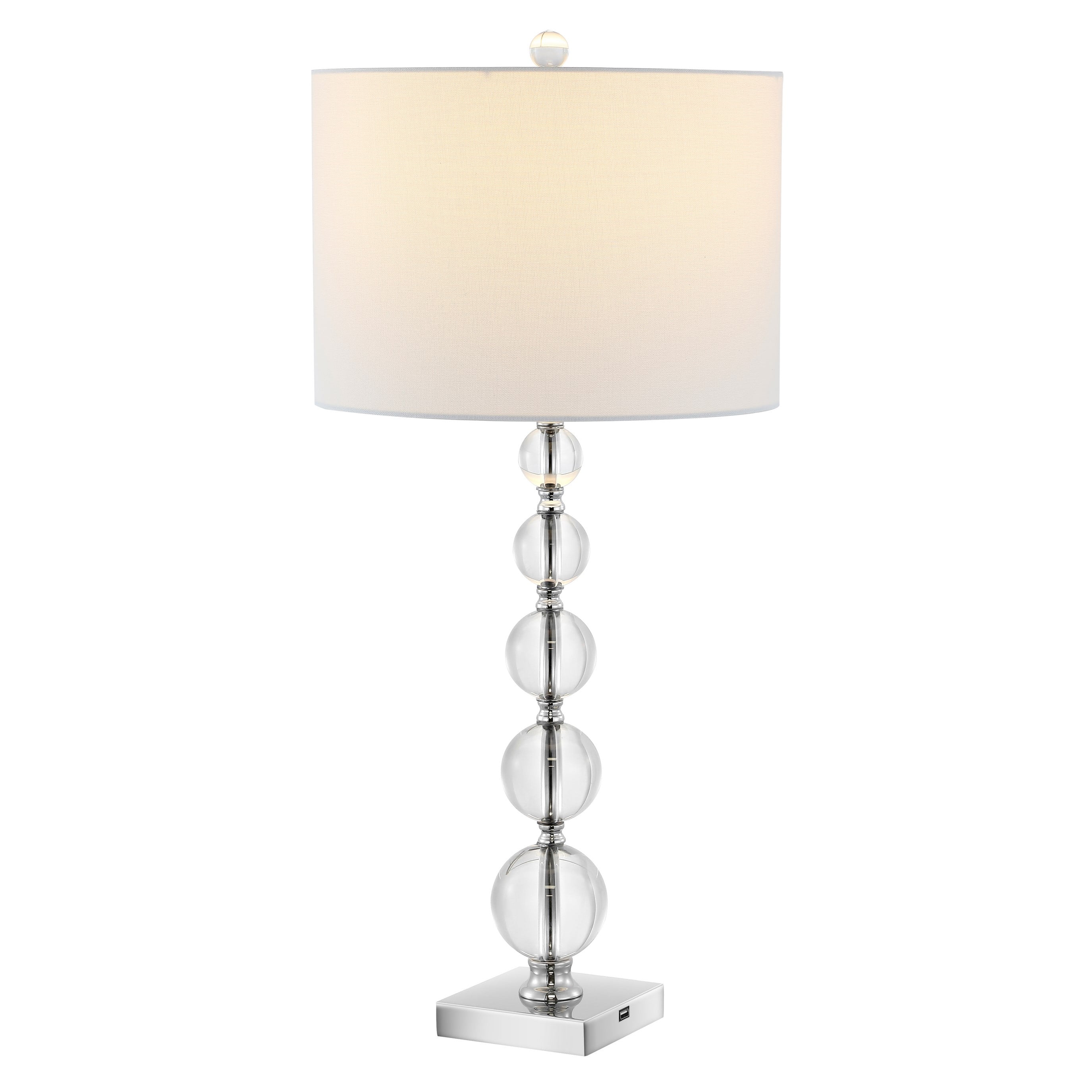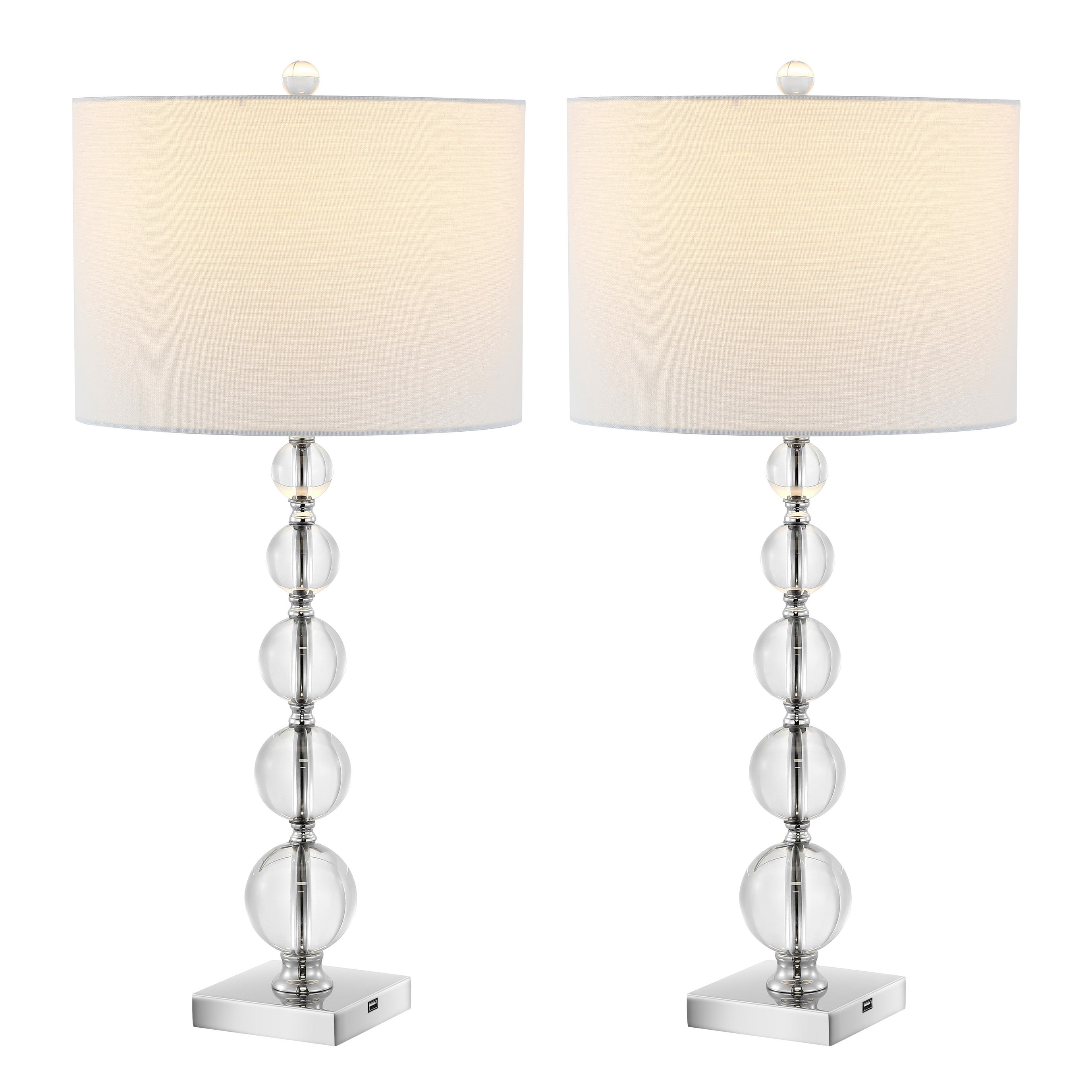 SAFAVIEH Liam 29 in. Table Lamps with USB Port, Clear/Chrome, Set of 2