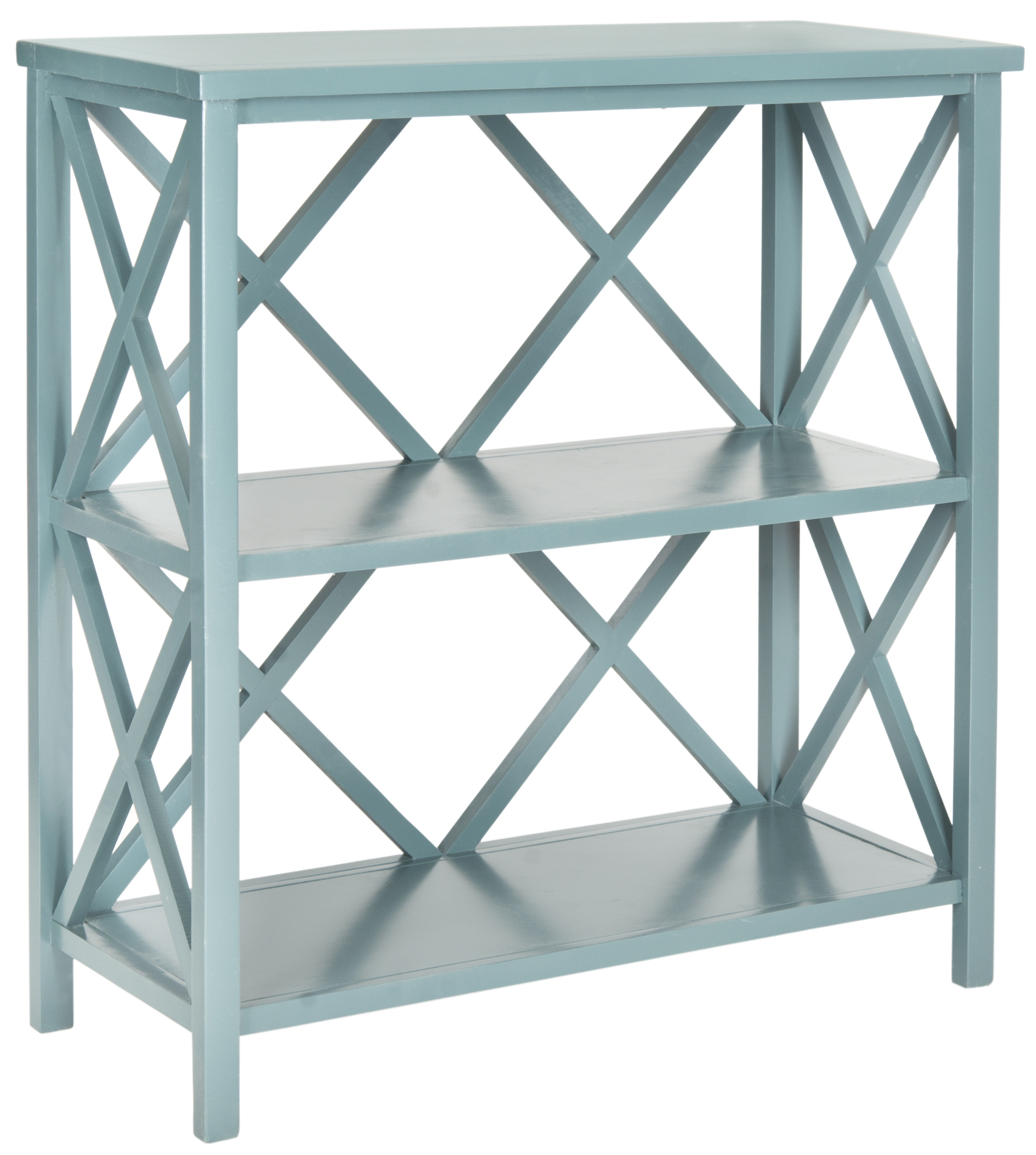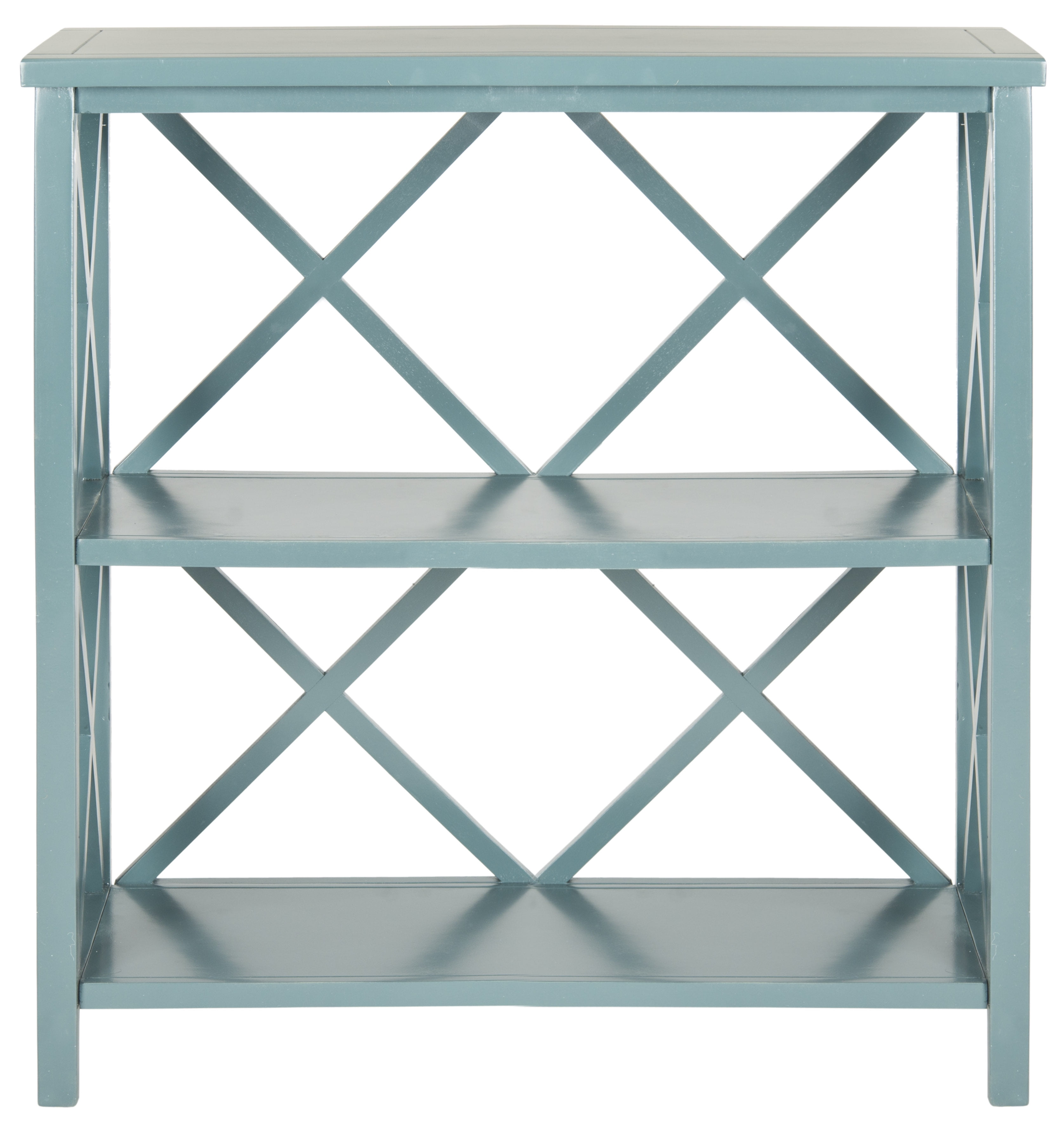 SAFAVIEH Liam Duo X-Back 2 Tier Open Bookcase, Slate Teal