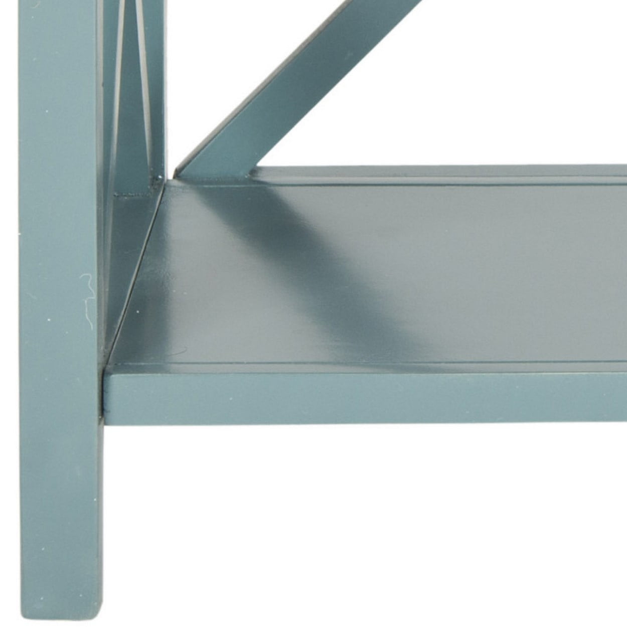 Contemporary design adds a chic look to your home Durable pine wood frame for long lasting longevity Minor assembly needed Color: Slate Teal Item Dimension: 33.5 in. W x 13.5 in. D x 35.6 in. H Shelf: 29.92 in. W x 11.42 in. D x 14.37 in. H 2 shelves for extra storage Item Weight: 24.3 lbs Weight Capacity: 20 lbs. each tier Wood is a natural material with variations of color shade, configuration, streaks, and grain structure. Each individual piece of Safavieh furniture has characteristic markings that will differ from photo and showroom samples. Regular attention and maintenance of fine furniture can ensure its beauty for years to come. Always use felt pads under all articles to prevent discoloration or softening of the lacquer. Plastic and rubber bases on items can discolor wood. Accessories in life style photo(s) not included Please note: The images and product dimensions on our website are as accurate as possible. Due to differences in computer monitors, some furniture colors may vary slightly. Lengths and widths may vary from the published dimensions. We do our best to provide you with an exact measurement, but please be advised that some variation exists. Dust regularly with a soft, dry cloth. Never use oiled or treated cloths on lacquered finishes. Some finishes can be wiped with a damp (not wet) cloth, followed at once by rubbing with a dry cloth to remove fingerprints and smudges. For persistent spots, gently clean with a soft cloth and a solution of water and mild soap, make sure to wipe dry. Use adhesive felt pads, coasters and placemats to protect your furniture.