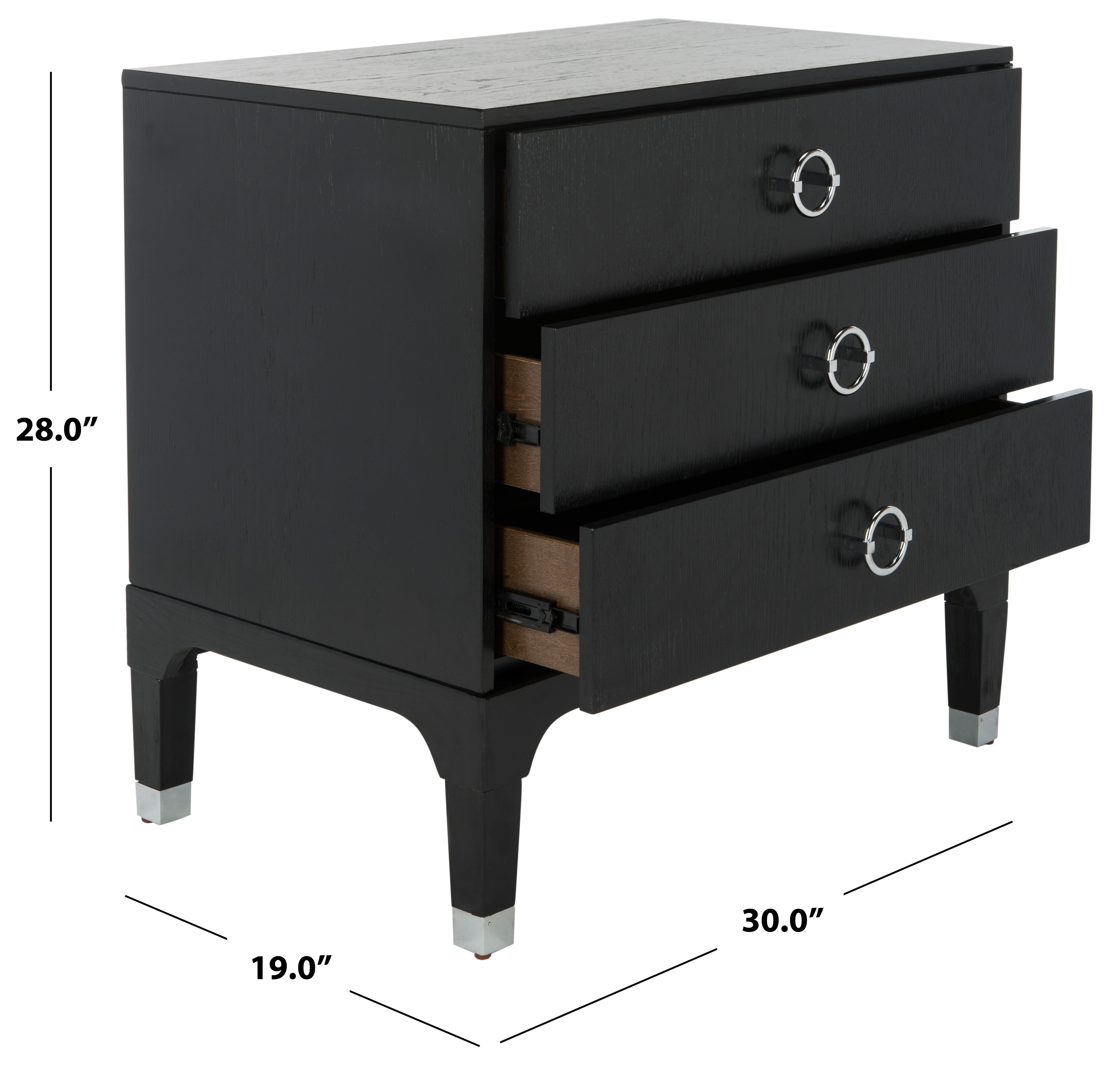 Safavieh Lorna 3-Drawer Contemporary Night Stand, Black