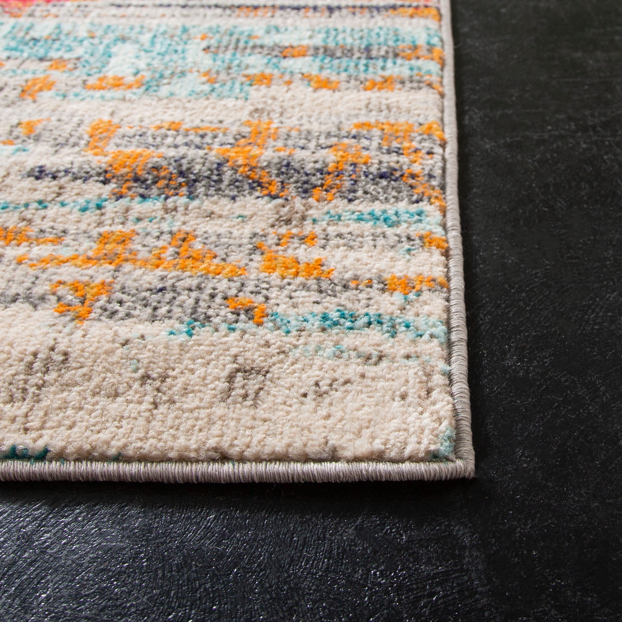 Color: Ivory/Multi Size: 5’3″ x 7’6″ Power Loomed in Turkey Pile Height: 0.3 in. Polypropylene Frisee Backing contains jute and latex, rug pad (sold separately) recommended to help prevent shifting and sliding Indoor Use Accessories in lifestyle photos not included Vacuum regularly (preferably one without beater bars) and spot clean; for hard-to-remove stains, professional rug cleaning is recommended; rotating your rugs every 3-6 months will protect against uneven wear from foot traffic and furniture weight Use rug protectors under the legs of heavy furniture to avoid flattening piles Avoid direct sunlight as it will cause the colors in your area rug to fade over time; place your area rug away from direct sunlight whenever possible For an instant decorating makeover, this area rug is one of the easiest and most fashionable ways to refresh a room with character and style. Please note: The images and product dimensions on our website are as accurate as possible. Due to differences in computer monitors, some rug colors may vary slightly. Lengths and widths may vary from the published dimensions. We do our best to provide you Packing and shipping of your rug may cause temporary creases; these surface waves are not imperfections or damages and will gradually recede; back-rolling or reverse rolling is the fastest and easiest way to remove creases in your area rug; allow ample ti Available in multiple sizes For carpet-to-carpet use, we recommend placing a hold pad in-between for protection