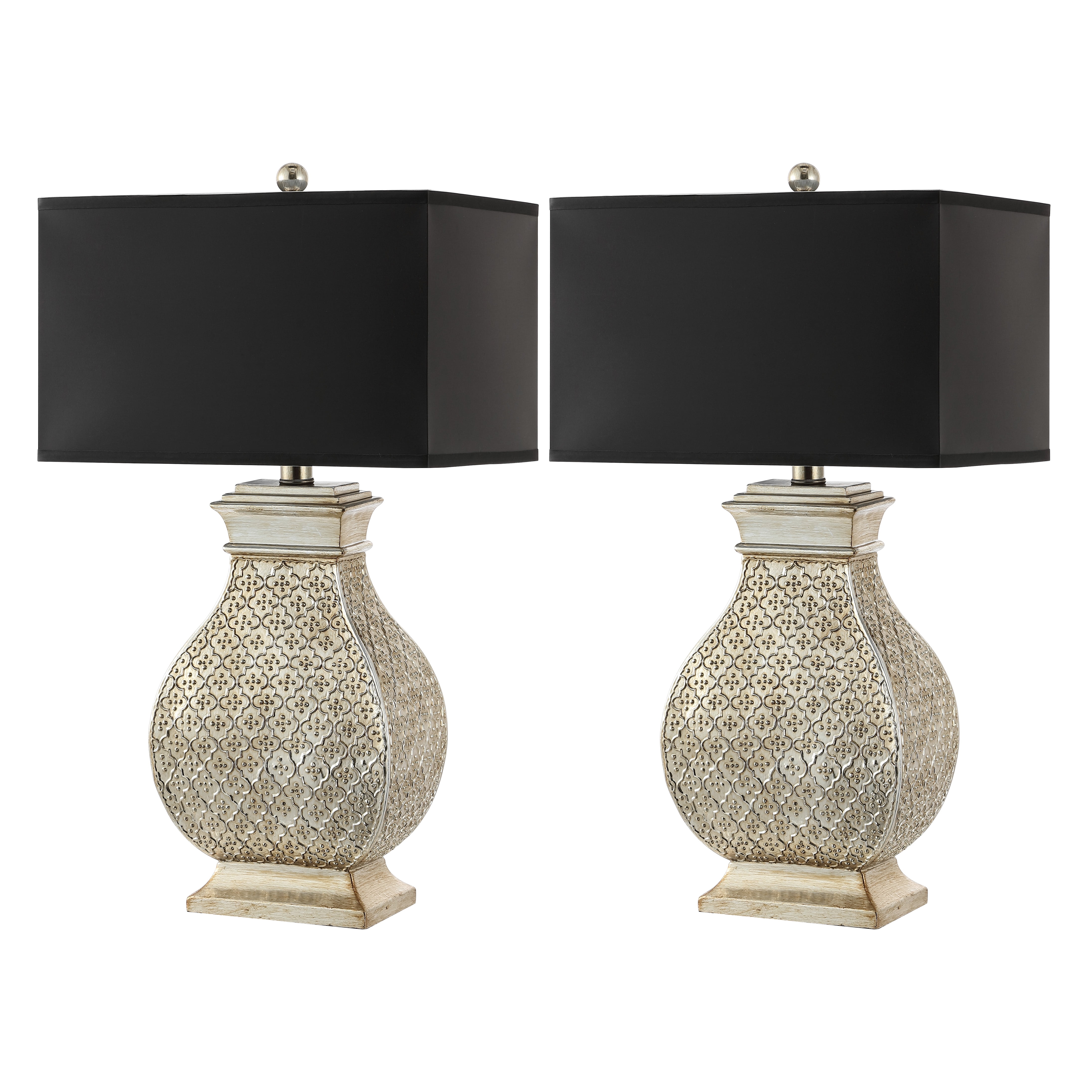 SAFAVIEH Malaga 29 in. Silver Resin Table Lamp with Black Polyester Shade, Set of 2