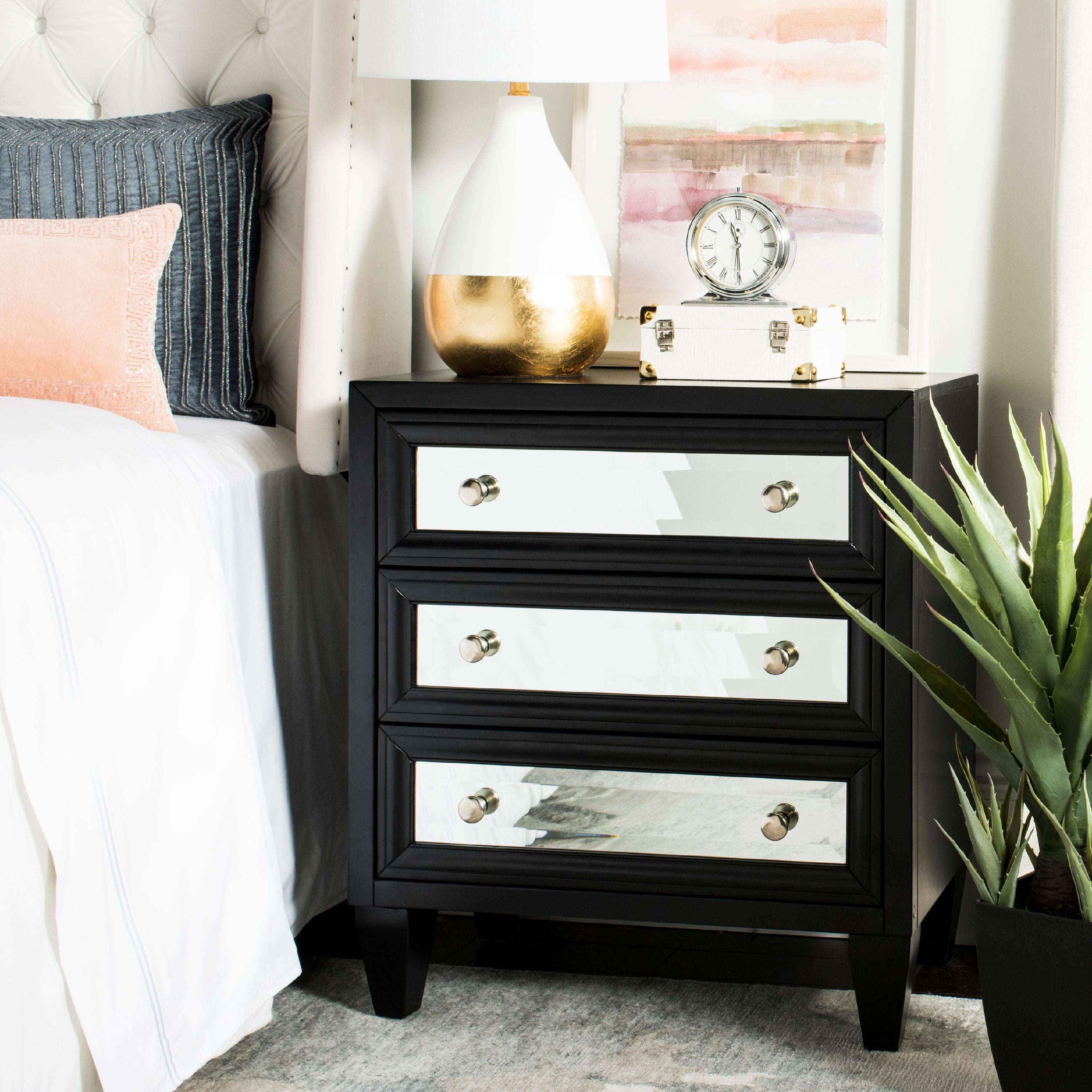 SAFAVIEH Marlon Solid Classic 3 Drawer Mirror Chest, Black