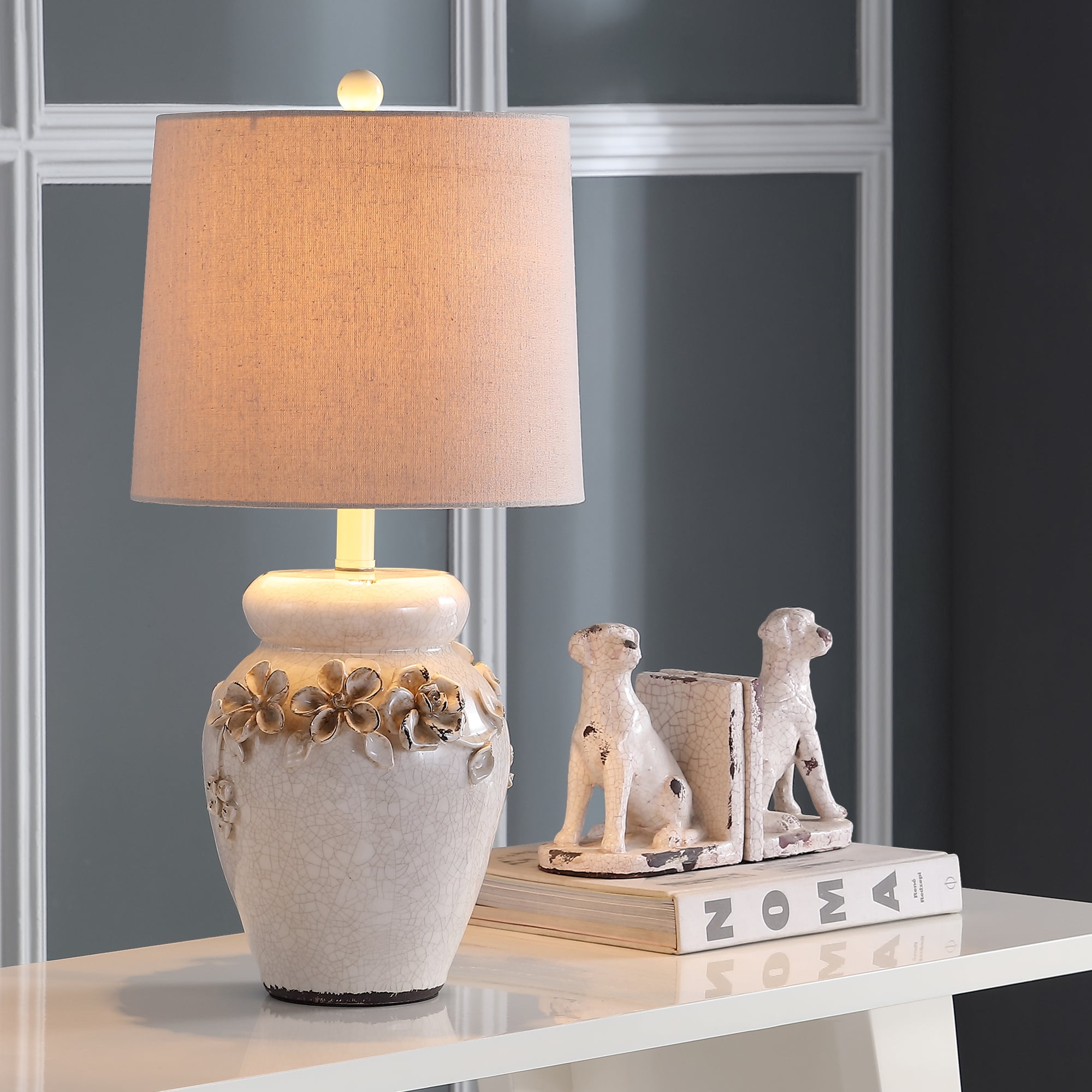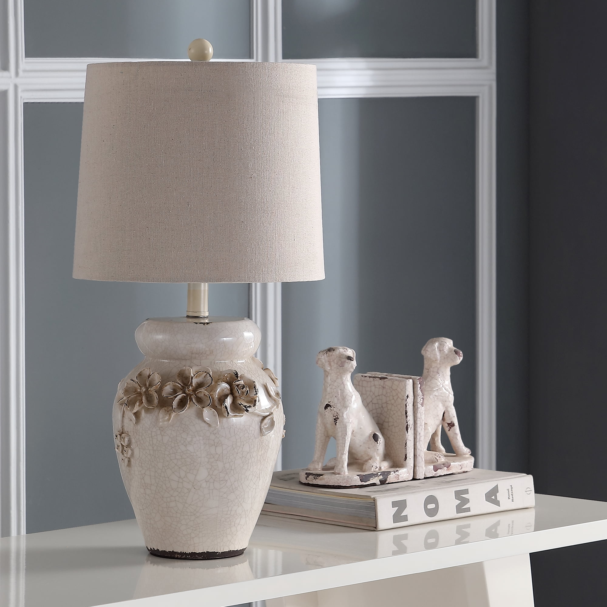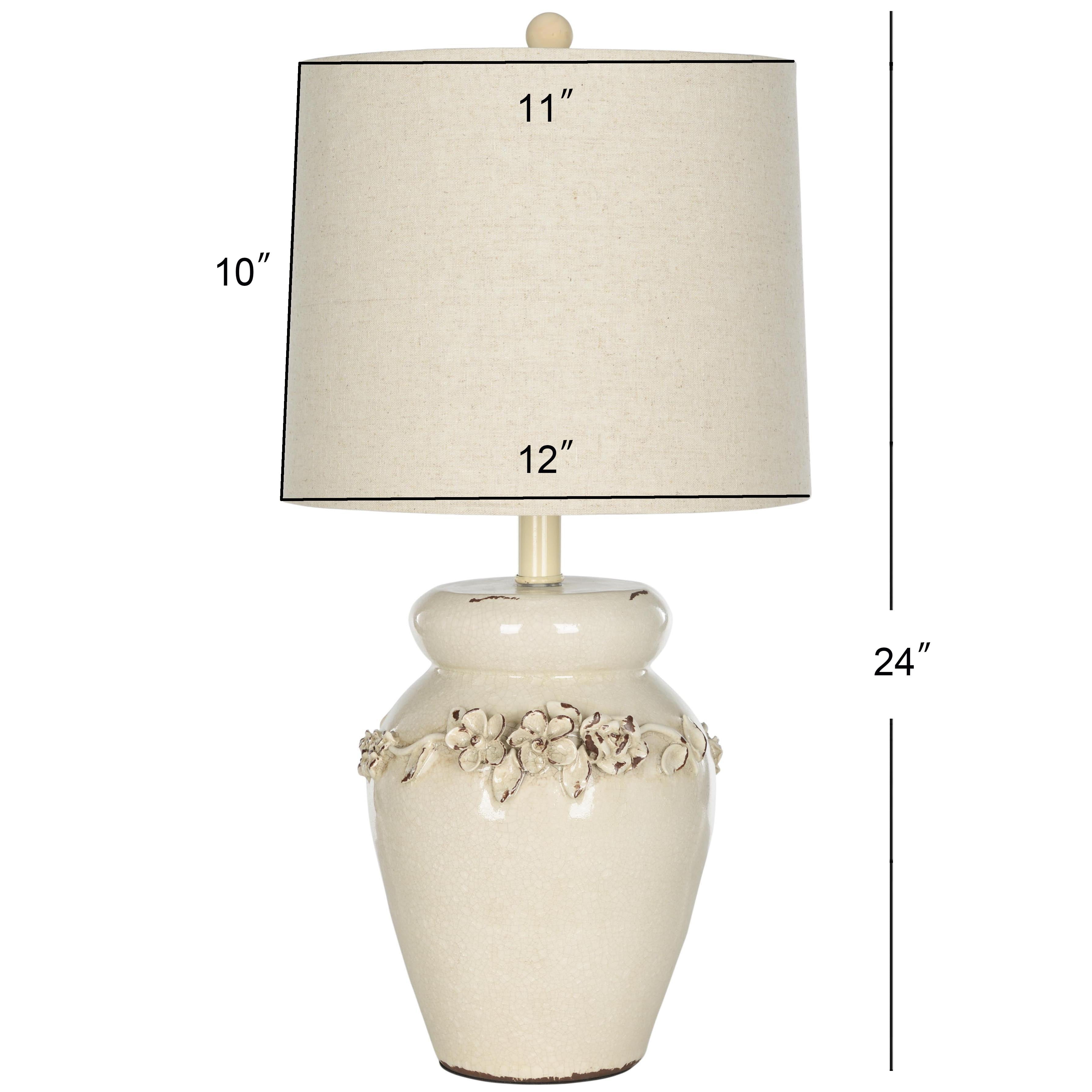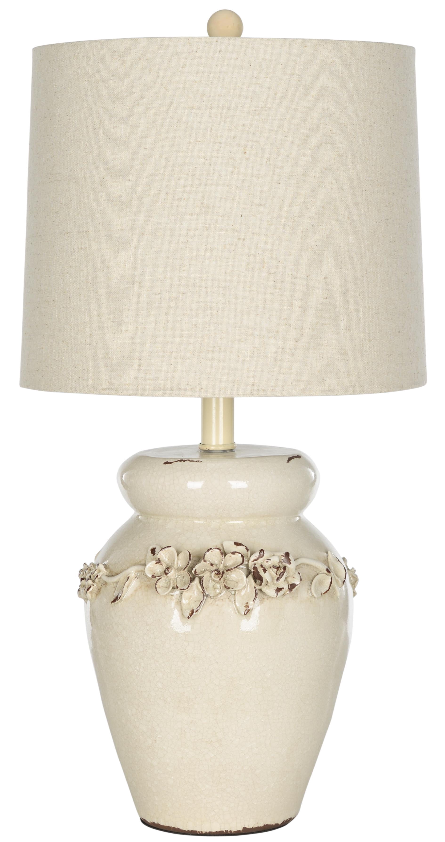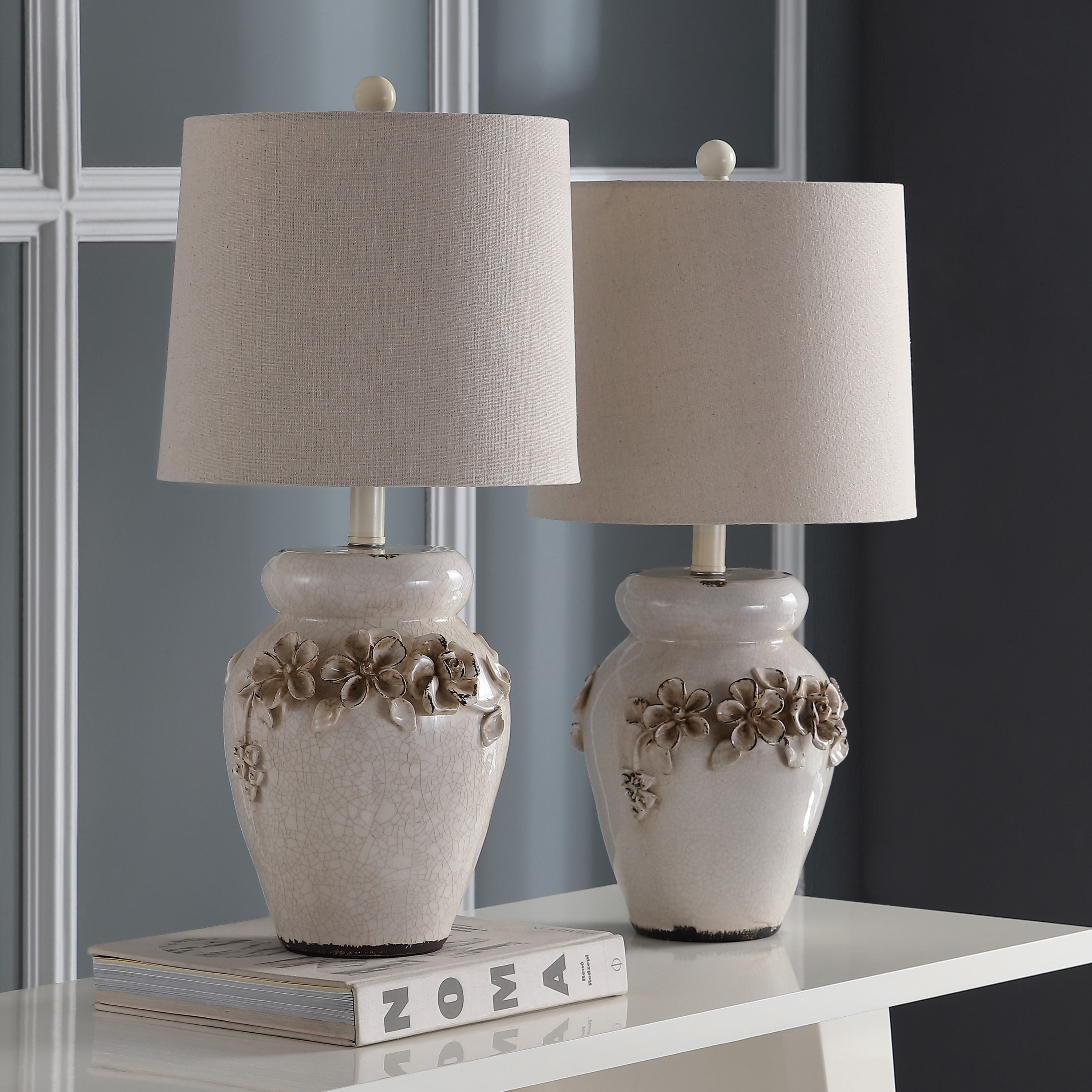 Shop Safavieh at . Save Money. Live Better. SAFAVIEH Marquesa 24 in. 2-Lt. Cream Ceramic Table Lamp w/Oatmeal Cotton Shade, Set of 2 Inspired by antique Tuscan terra bianca pottery, the crackle cream ceramic Marquesa Vase Lamp is adorned with embossed trailing vine leaves. Finished to reveal earthy clay beneath the glaze, this rustic design is complemented with cream cotton shade in linen-weave texture and silver fittings.