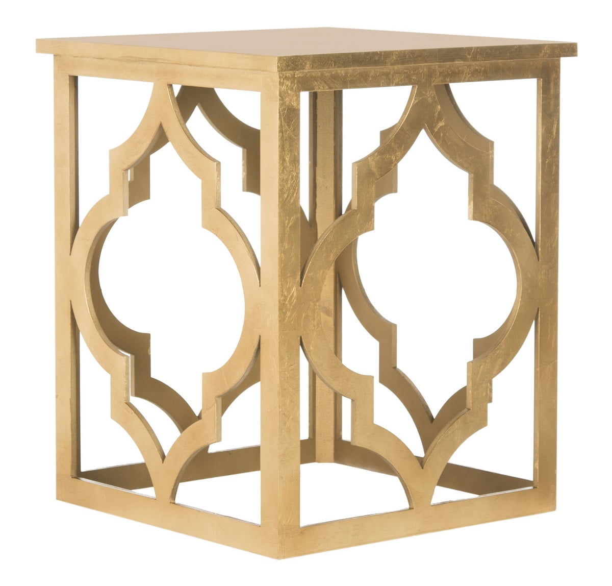 Shop SAFAVIEH at . Save Money. Live Better. SAFAVIEH Milo Trellis Glam Gold Leaf Wood End Table, Gold The ages old quatrefoil motif inspired this thoroughly modern Milo End Table. A gold finish adds subtle sheen to Milo’s open frame, creating an elegant, airy look in any interior. For over 100 years, SAFAVIEH has set the standard for finely crafted rugs and home furnishings. Begin your rug, furniture, lighting, outdoor, and home decor search and discover over 100,000 SAFAVIEH products today.