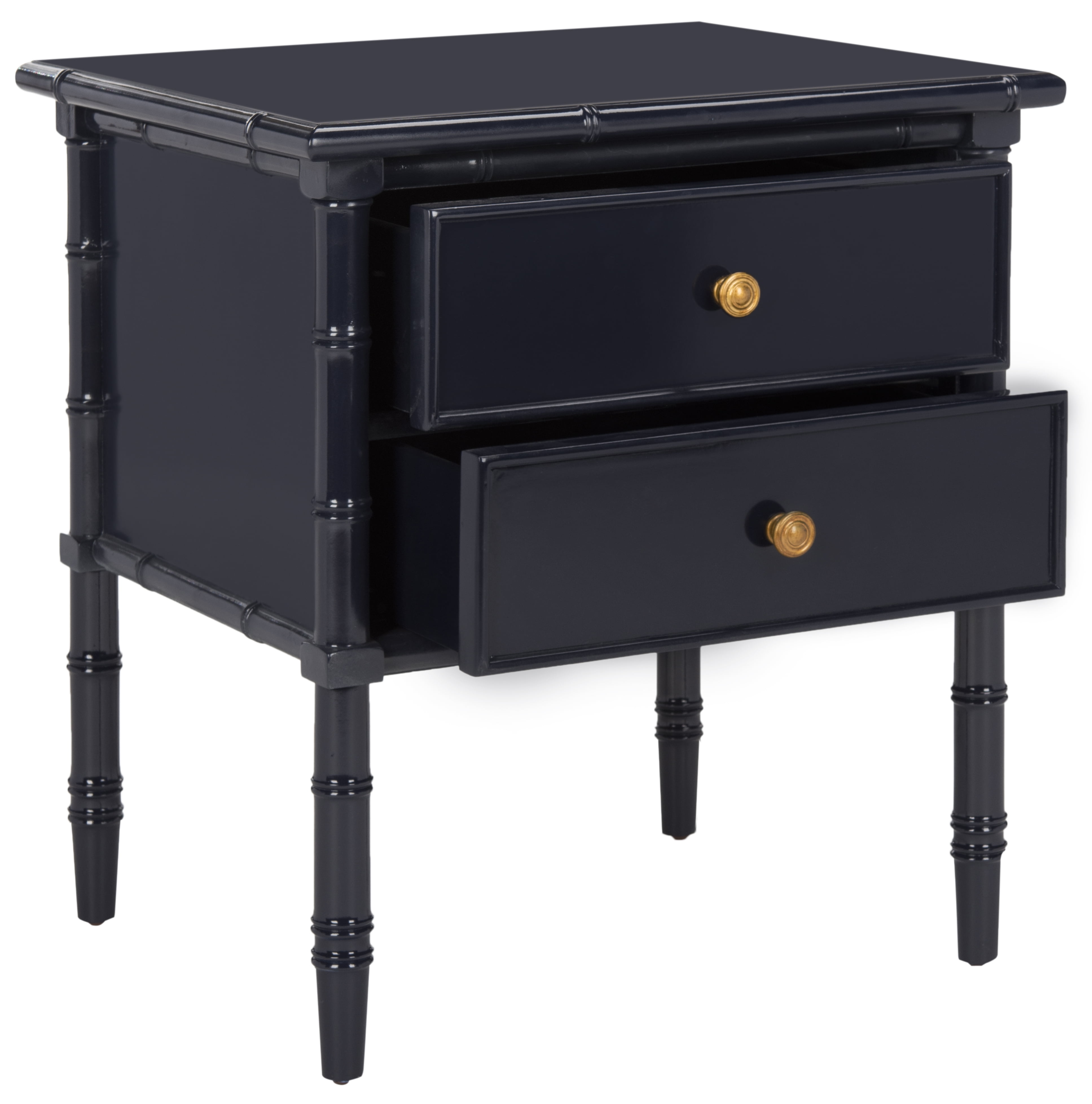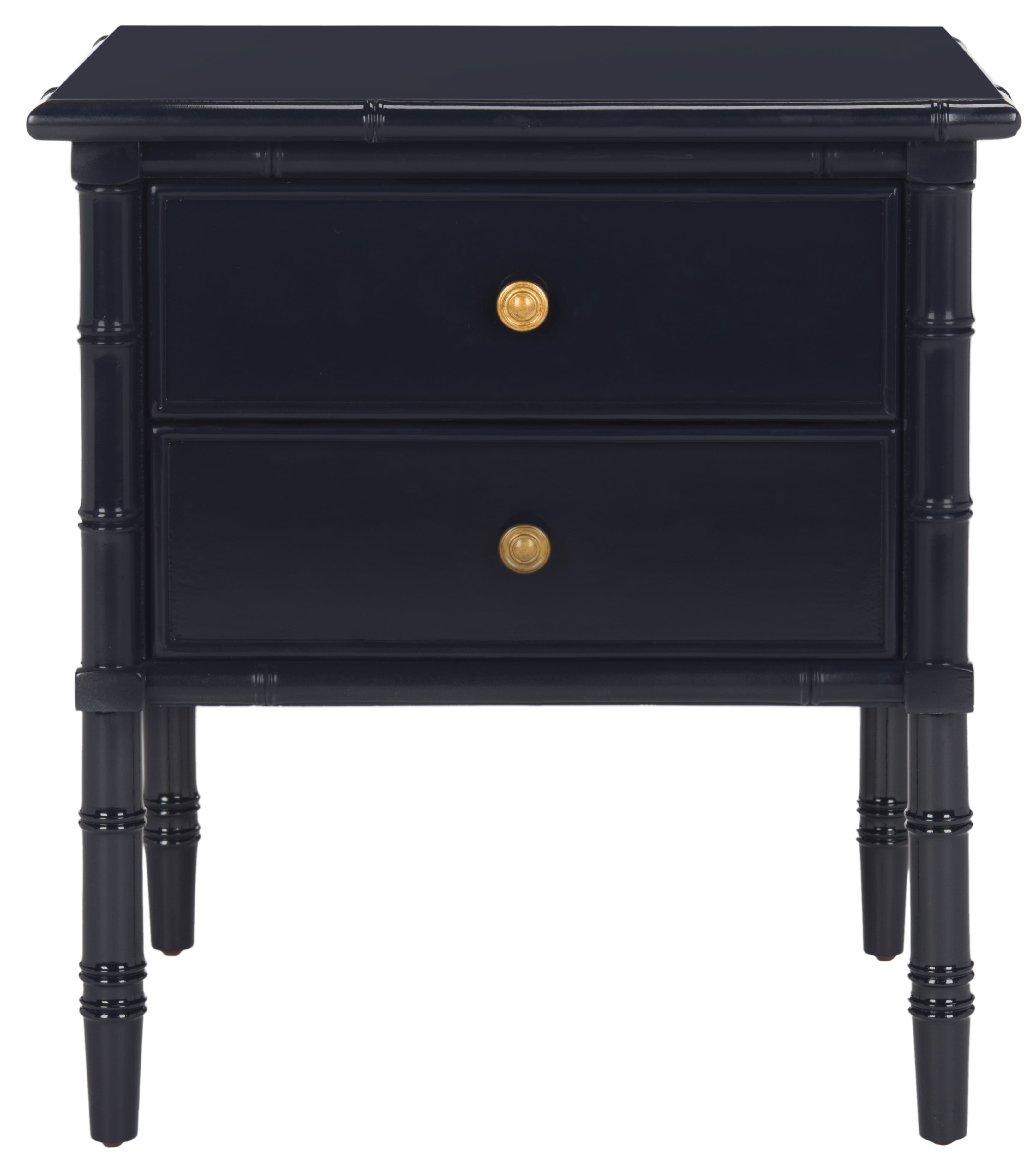 SAFAVIEH Mina Modern Coastal 2-Drawer 25″ H Bamboo Nightstand Navy Revitalize any room with the modern coastal charm of this Mina Nightstand. Flaunting a touch of Chinoiserie chic with its bamboo-styled frame, Minas bold navy finish perfectly pairs with its shimmering gold pulls, making a dynamic decorative statement. Two drawers provide plentiful bedside storage. For over 100 years, SAFAVIEH has set the standard for finely crafted rugs and home furnishings. From coveted fresh and trendy designs to timeless heirloom-quality pieces, expressing your unique personal style has never been easier. Begin your rug, furniture, lighting, outdoor, and home decor search and discover over 100,000 SAFAVIEH products today.