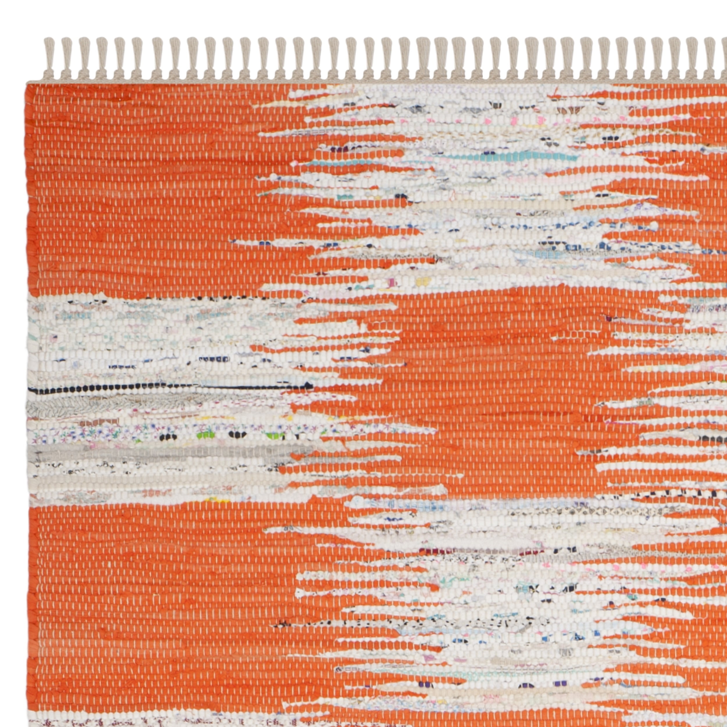 Color: Orange/Multi Size: 4′ x 6′ Hand Woven in India Pile Height: 0.25 in. No backing, rug pad (sold separately) recommended to help prevent shifting and sliding 100% Cotton Stylish addition for any room Accessories in lifestyle photos not included Vacuum regularly (preferably one without beater bars) and spot clean; for hard-to-remove stains, professional rug cleaning is recommended; rotating your rugs every 3-6 months will protect against uneven wear from foot traffic and furniture weight Use rug protectors under the legs of heavy furniture to avoid flattening piles Avoid direct sunlight as it will cause the colors in your area rug to fade over time; place your area rug away from direct sunlight whenever possible For an instant decorating makeover, this area rug is one of the easiest and most fashionable ways to refresh a room with character and style. Please note: The images and product dimensions on our website are as accurate as possible. Due to differences in computer monitors, some rug colors may vary slightly. Lengths and widths may vary from the published dimensions. We do our best to provide you with an exact measurement, but please be advised that some variation exists. Patterns may vary slightly according to shape and size selected. Packing and shipping of your rug may cause temporary creases; these surface waves are not imperfections or damages and will gradually recede; back-rolling or reverse rolling is the fastest and easiest way to remove creases in your area rug; allow ample time for your rug to settle, these creases and waves will normally flatten out Available in multiple sizes For carpet-to-carpet use, we recommend placing a hold pad in-between for protection