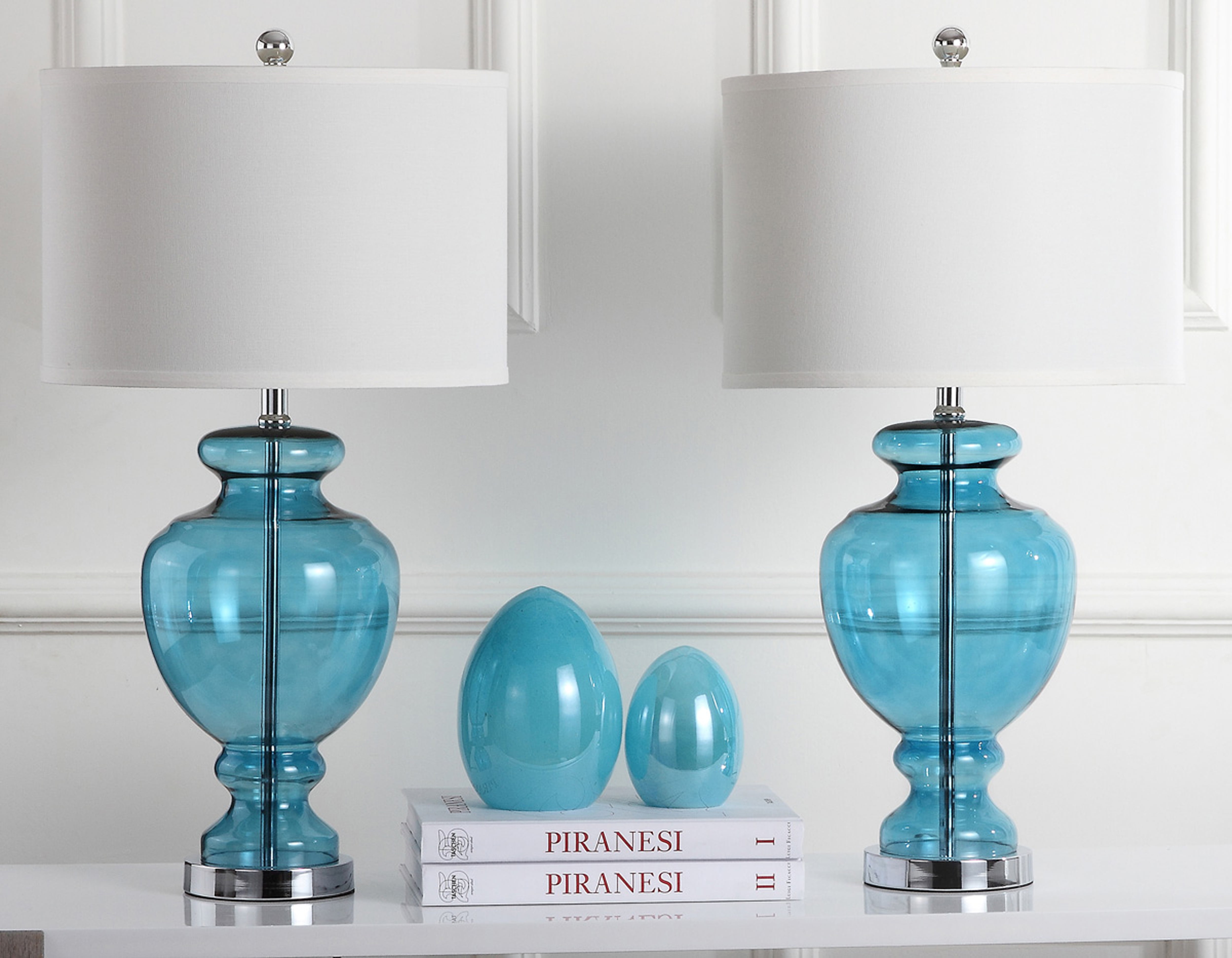 Shop Safavieh at . Save Money. Live Better. SAFAVIEH Morocco 27 in. H Solid Glam Glass Table Lamp, Set of 2 Inspired by collectible colored glass vases, this turquoise glass table lamp is a perfect accessory for any chic interior. Silver fittings and off white cotton shade refresh the classic silhouette with a touch of seaside romance.
