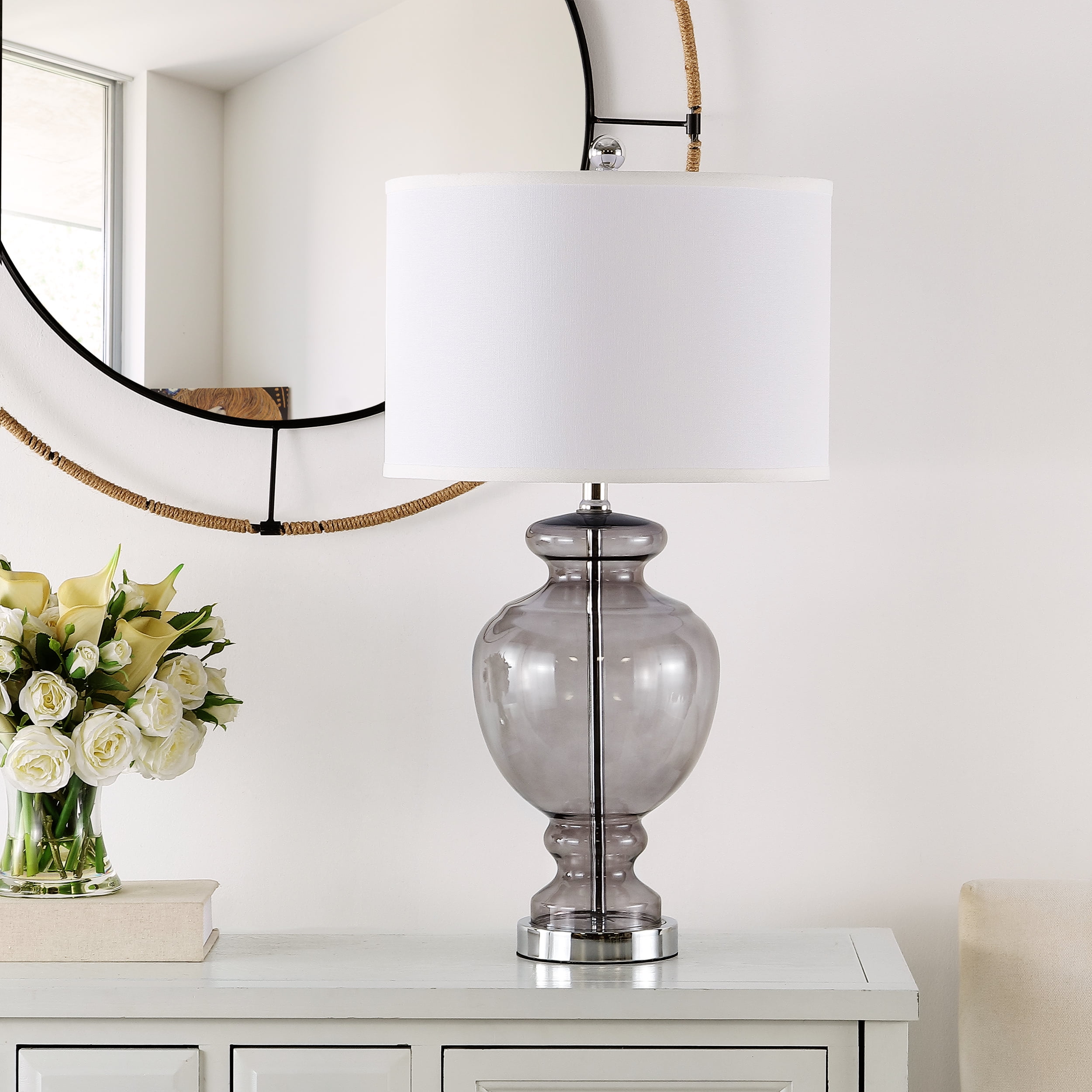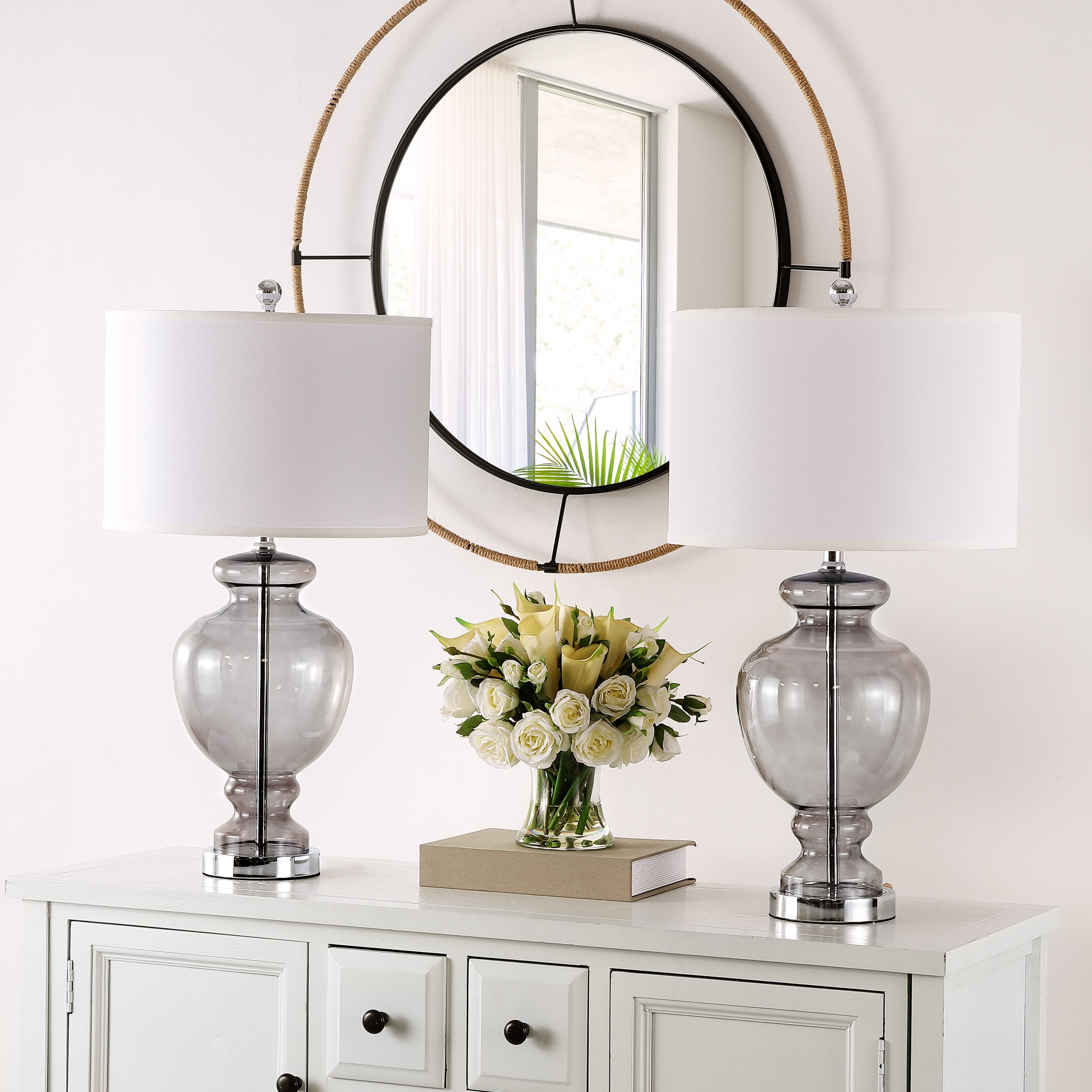 SAFAVIEH Morocco 27 in. H Solid Glam Glass Table Lamp, Smoking Grey, Set of 2