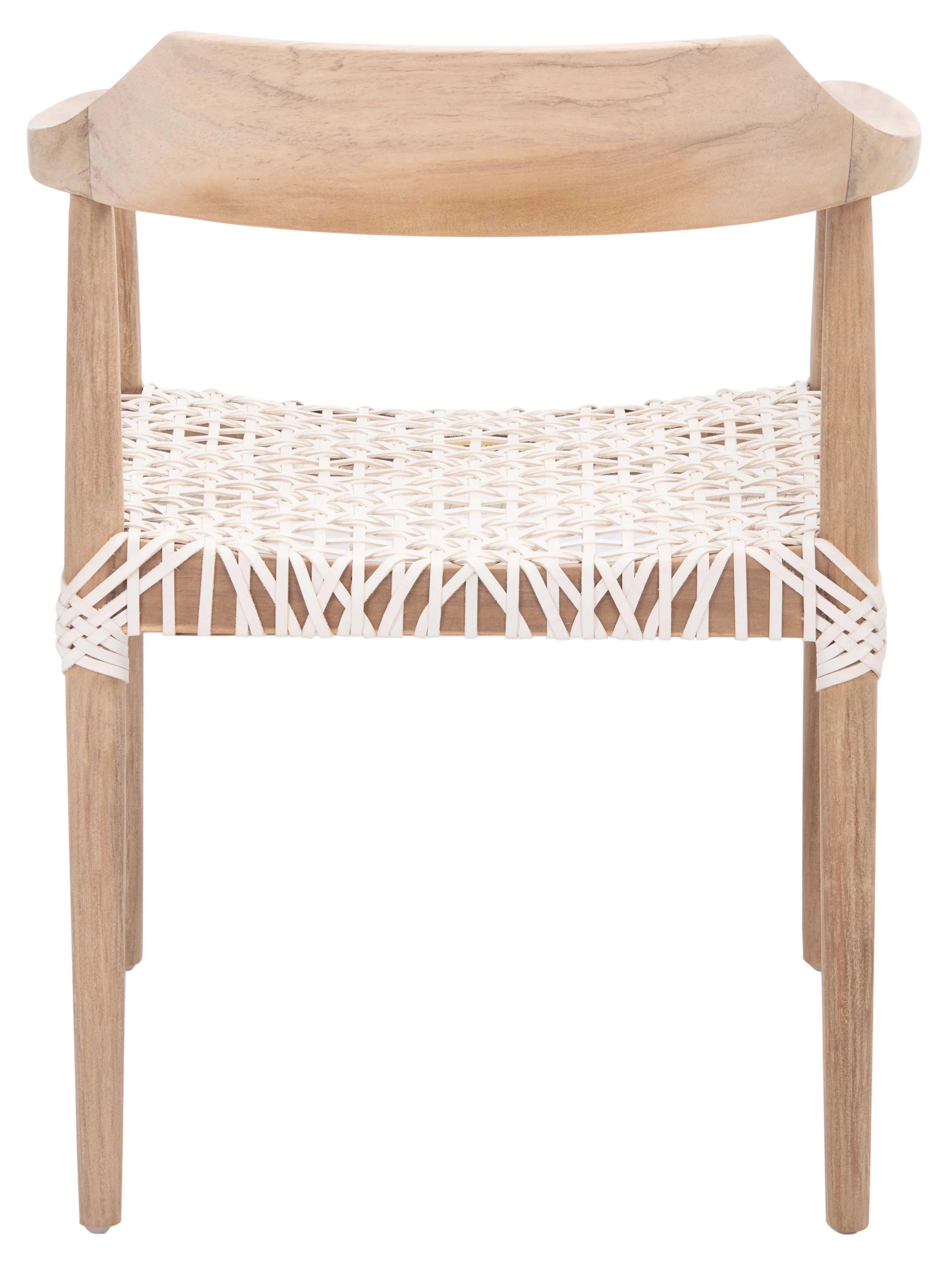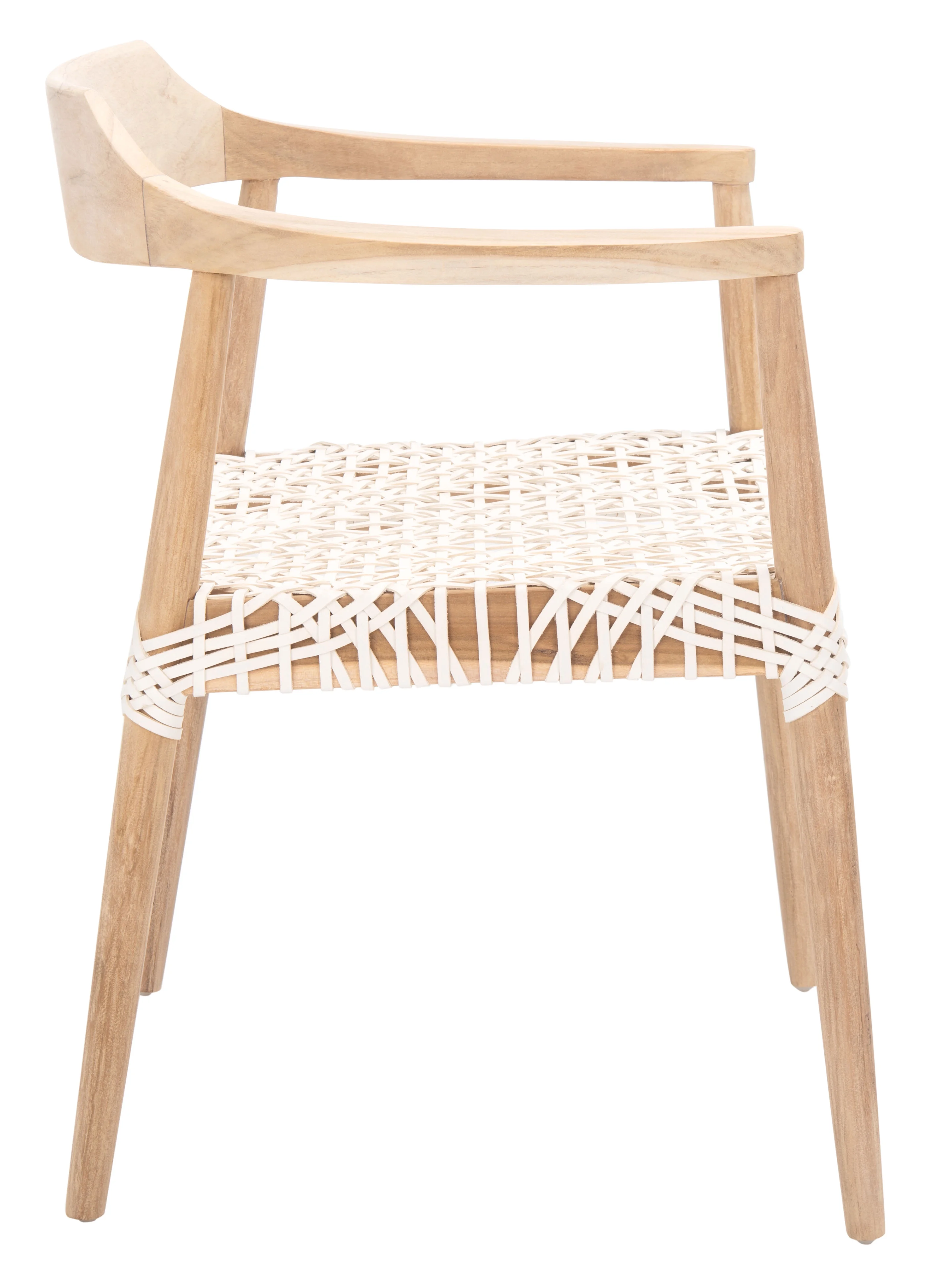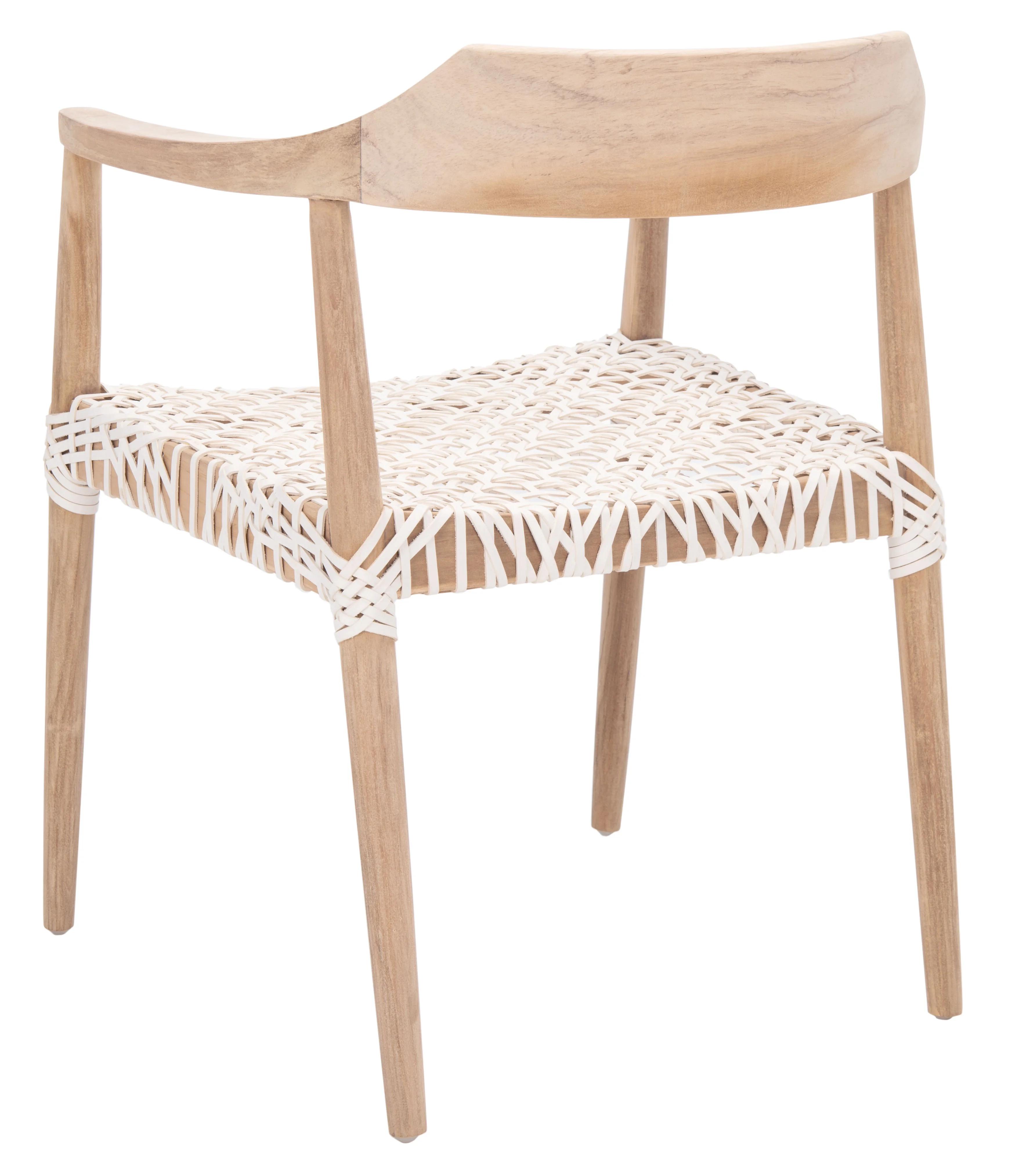 SAFAVIEH Munro Leather Woven Accent Chairs, Unfinished Natural (Teak Wood Frame)/White (Leather Seat) (22 in. W x 20.5 in. D x 28.5 in. H)