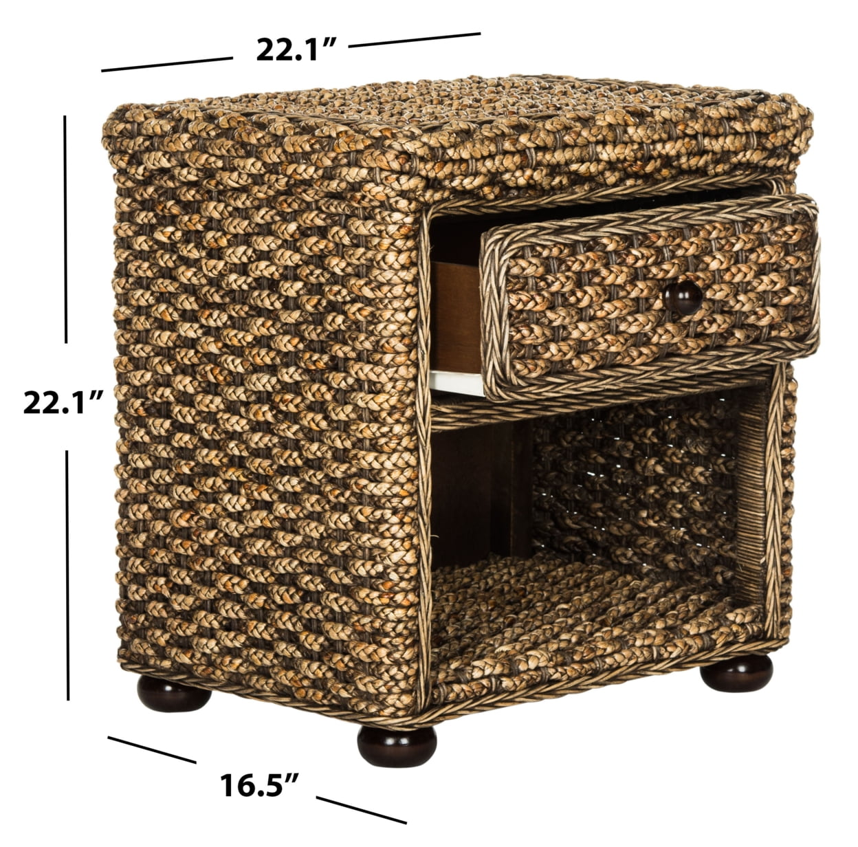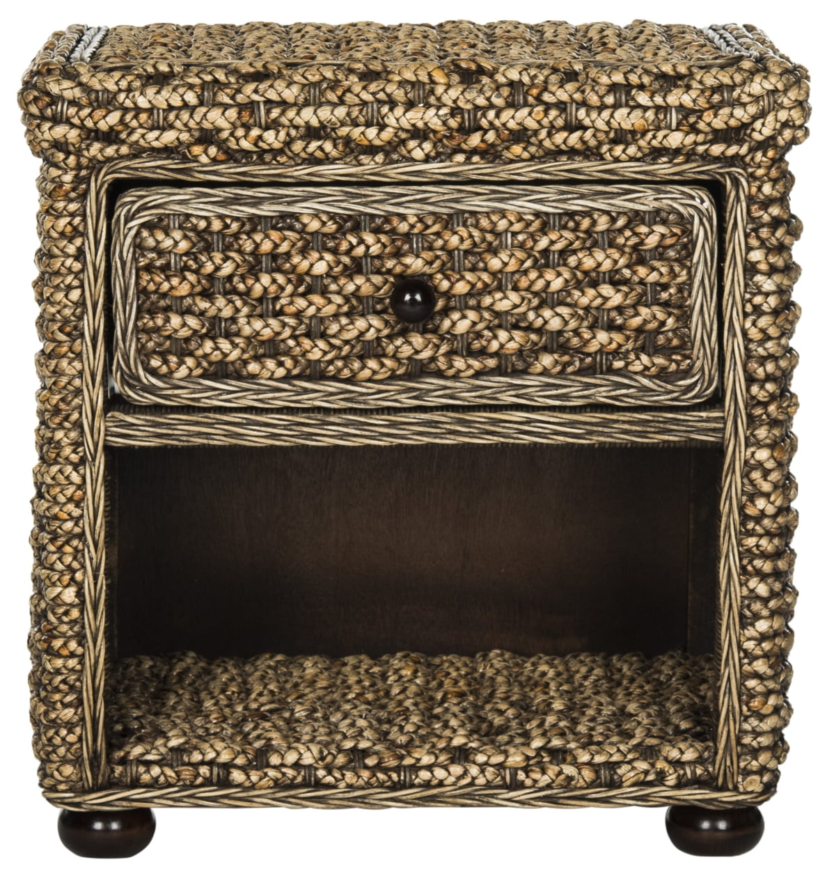 SAFAVIEH Musa Braided Brown Wash Wicker Nightstand With Drawer Brown Wash Relaxed and refined, this wicker one drawer nightstand was meticulously crafted to highlight its fresh, natural texture. Finished in a neutral brown hue, it transforms any bedroom into an oasis of organic style with its woven details and ample storage. For over 100 years, SAFAVIEH has set the standard for finely crafted rugs and home furnishings. From coveted fresh and trendy designs to timeless heirloom-quality pieces, expressing your unique personal style has never been easier. Begin your rug, furniture, lighting, outdoor, and home decor search and discover over 100,000 SAFAVIEH products today.