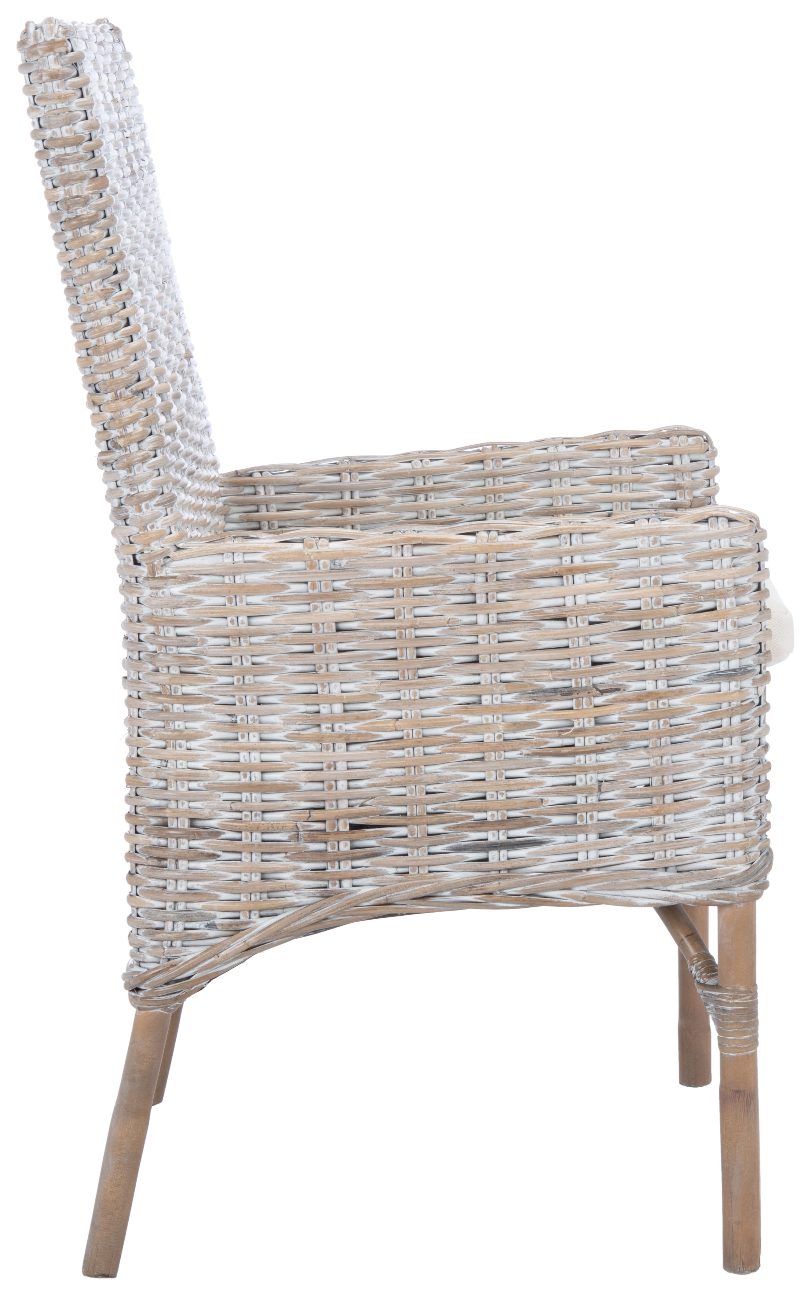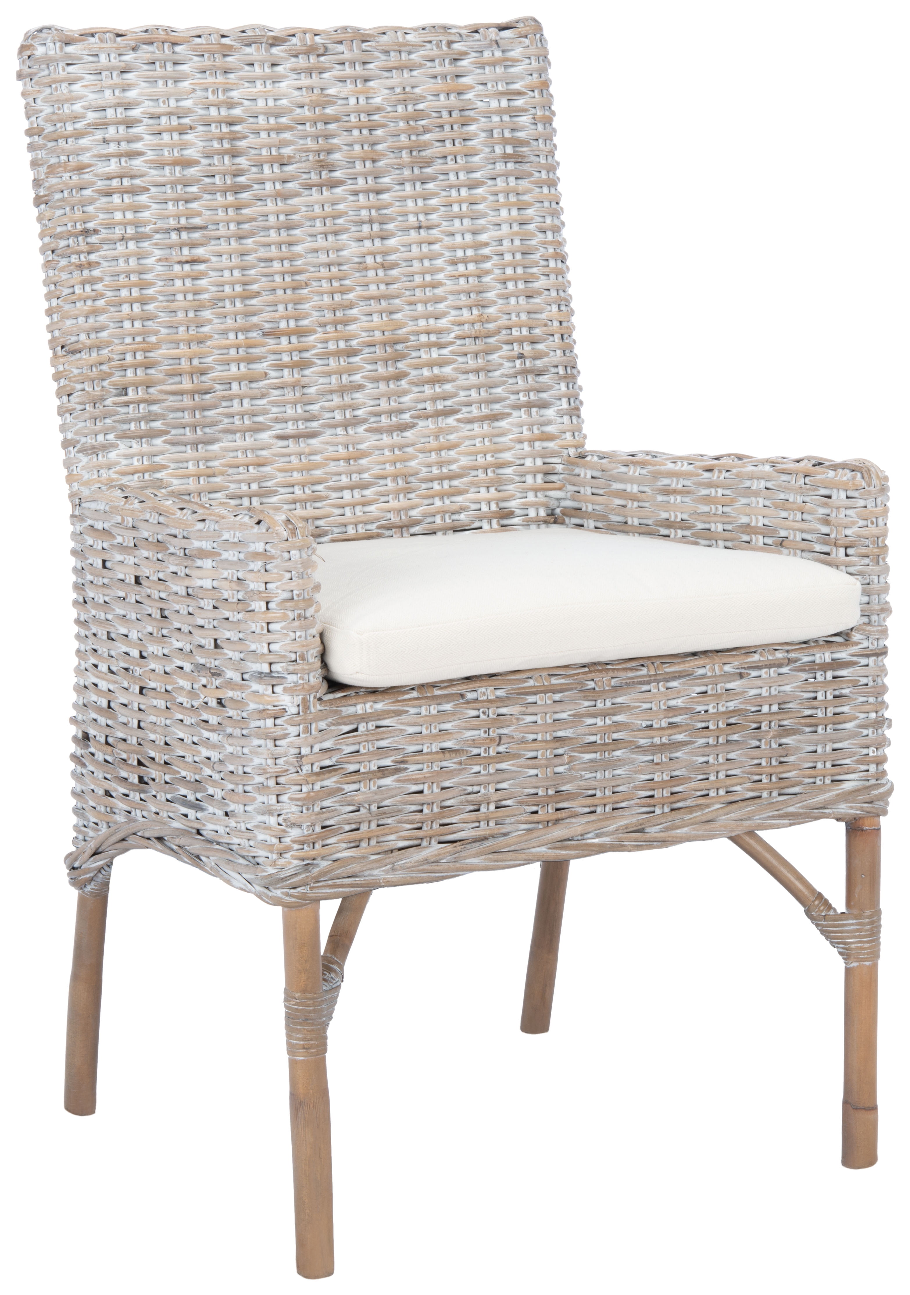 Shop Safavieh at . Save Money. Live Better. SAFAVIEH Nancy Rattan Accent Chairs with Cushion, Grey White Wash (18.5 in. W x 22.8 in. D x 38.2 in. H) A contemporary update on a classic silhouette, this Nancy Accent Chair is ideal for imbuing your décor with rich visual depth. Nancy’s grey whitewash kubu rattan provides a calm sense of seaside motion, while its plush white cushion ensures living room lounging is at once cozy and chic.