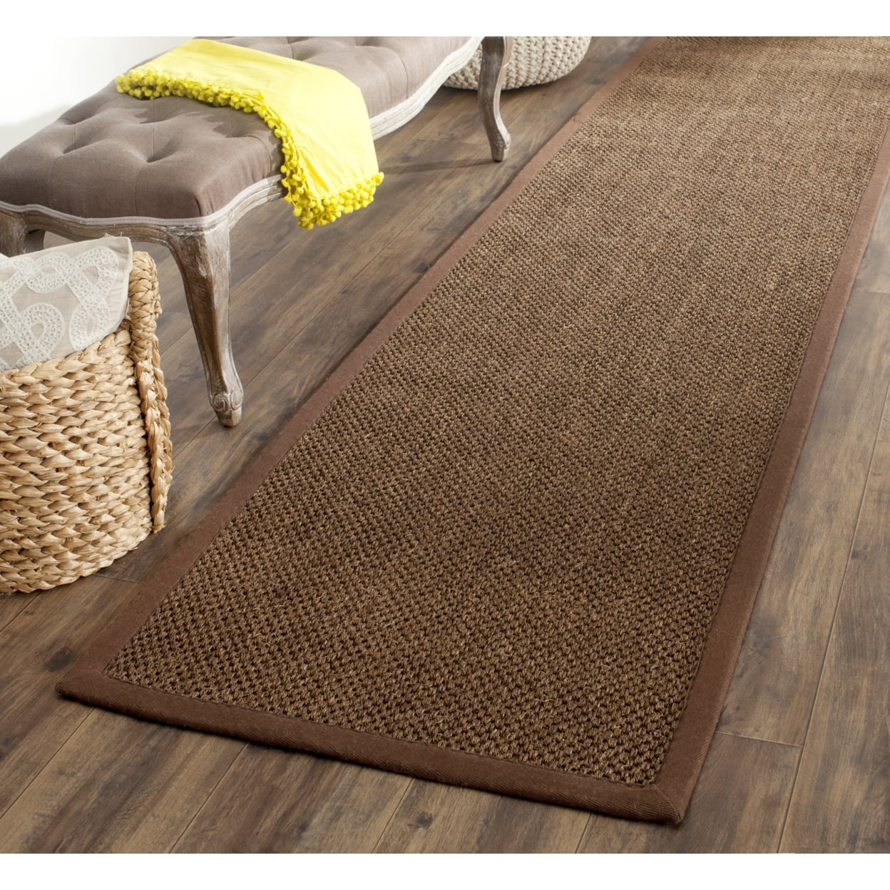 SAFAVIEH Natural Fiber Juniper Border Sisal Runner Rug, Brown, 2’6″ x 22′