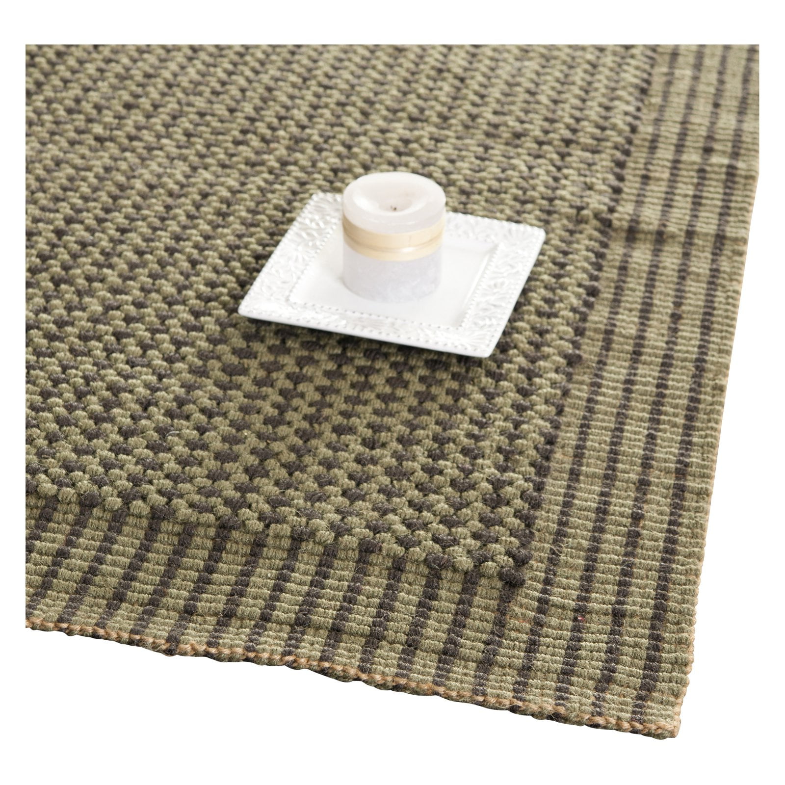 Color: Charcoal/Green Size: 3′ x 5′ Hand Woven in India Pile Height: 0.5 in. No backing, rug pad (sold separately) recommended to help prevent shifting and sliding 100% Jute Stylish addition for any room Accessories in lifestyle photos not included Vacuum regularly (preferably one without beater bars) and spot clean; for hard-to-remove stains, professional rug cleaning is recommended; rotating your rugs every 3-6 months will protect against uneven wear from foot traffic and furniture weight Use rug protectors under the legs of heavy furniture to avoid flattening piles Avoid direct sunlight as it will cause the colors in your area rug to fade over time; place your area rug away from direct sunlight whenever possible For an instant decorating makeover, this area rug is one of the easiest and most fashionable ways to refresh a room with character and style. Please note: The images and product dimensions on our website are as accurate as possible. Due to differences in computer monitors, some rug colors may vary slightly. Lengths and widths may vary from the published dimensions. We do our best to provide you with an exact measurement, but please be advised that some variation exists. Patterns may vary slightly according to shape and size selected. Packing and shipping of your rug may cause temporary creases; these surface waves are not imperfections or damages and will gradually recede; back-rolling or reverse rolling is the fastest and easiest way to remove creases in your area rug; allow ample time for your rug to settle, these creases and waves will normally flatten out Available in multiple sizes For carpet-to-carpet use, we recommend placing a hold pad in-between for protection