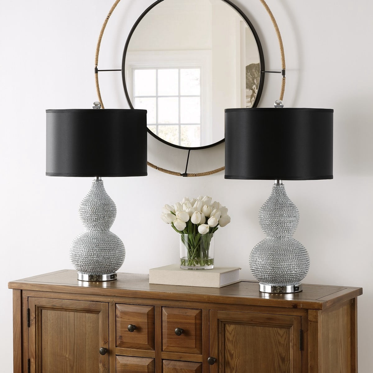 SAFAVIEH Nicole 24.5 in. Table Lamps with USB Port, Silver, Set of 2
