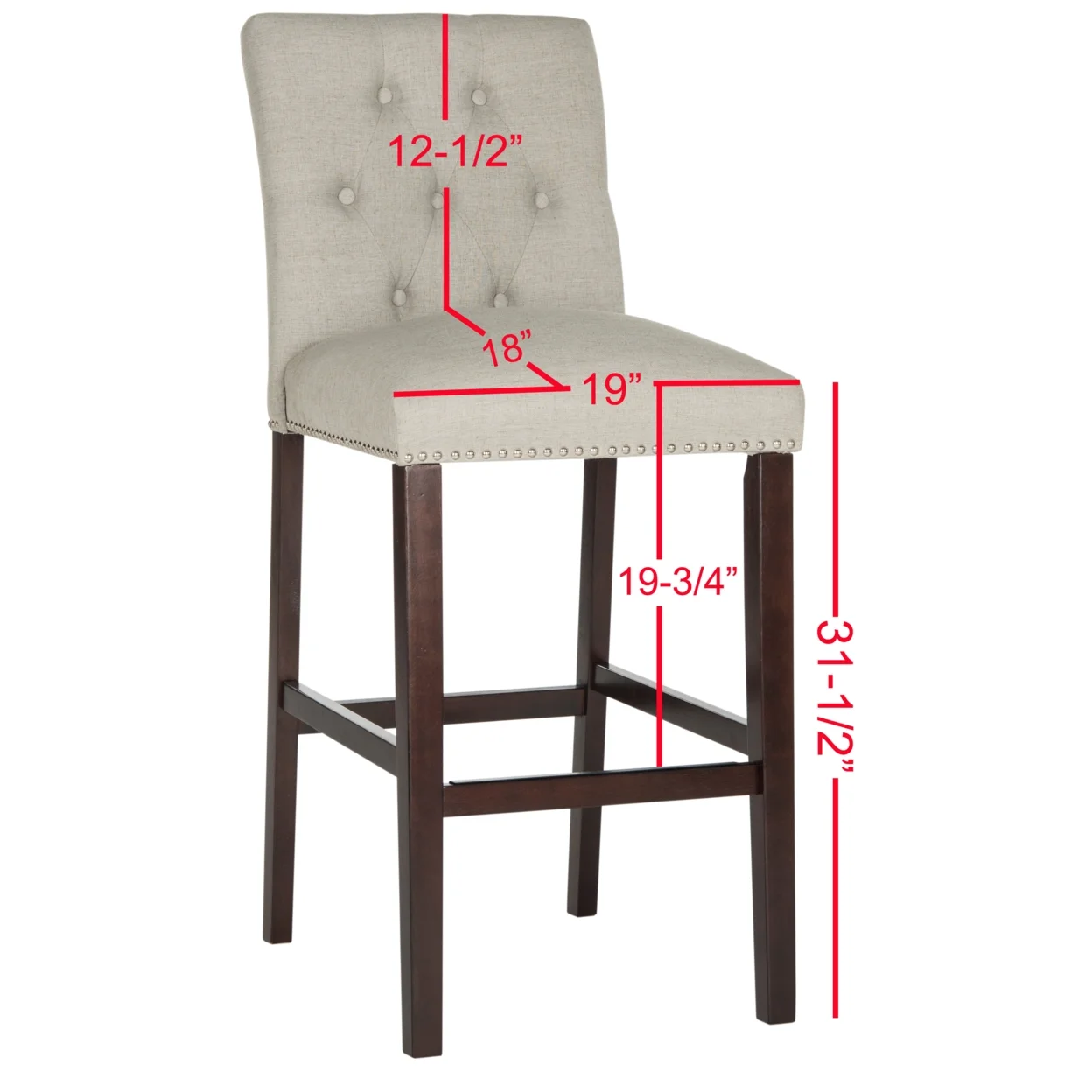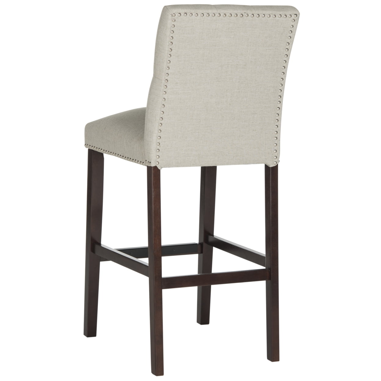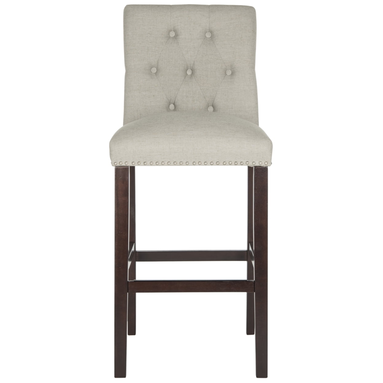 SAFAVIEH Norah Bar Stool Set of 2 Light Grey Elevate the taste level in any room with these posh modern bar stools (set of 2). Their plush, tufted light grey upholstery and sturdy espresso legs make them ideal for savoring petit dejeuner in the morning or a glass of wine after the sun goes down. For over 100 years, SAFAVIEH has set the standard for finely crafted rugs and home furnishings. From coveted fresh and trendy designs to timeless heirloom-quality pieces, expressing your unique personal style has never been easier. Begin your rug, furniture, lighting, outdoor, and home decor search and discover over 100,000 SAFAVIEH products today.