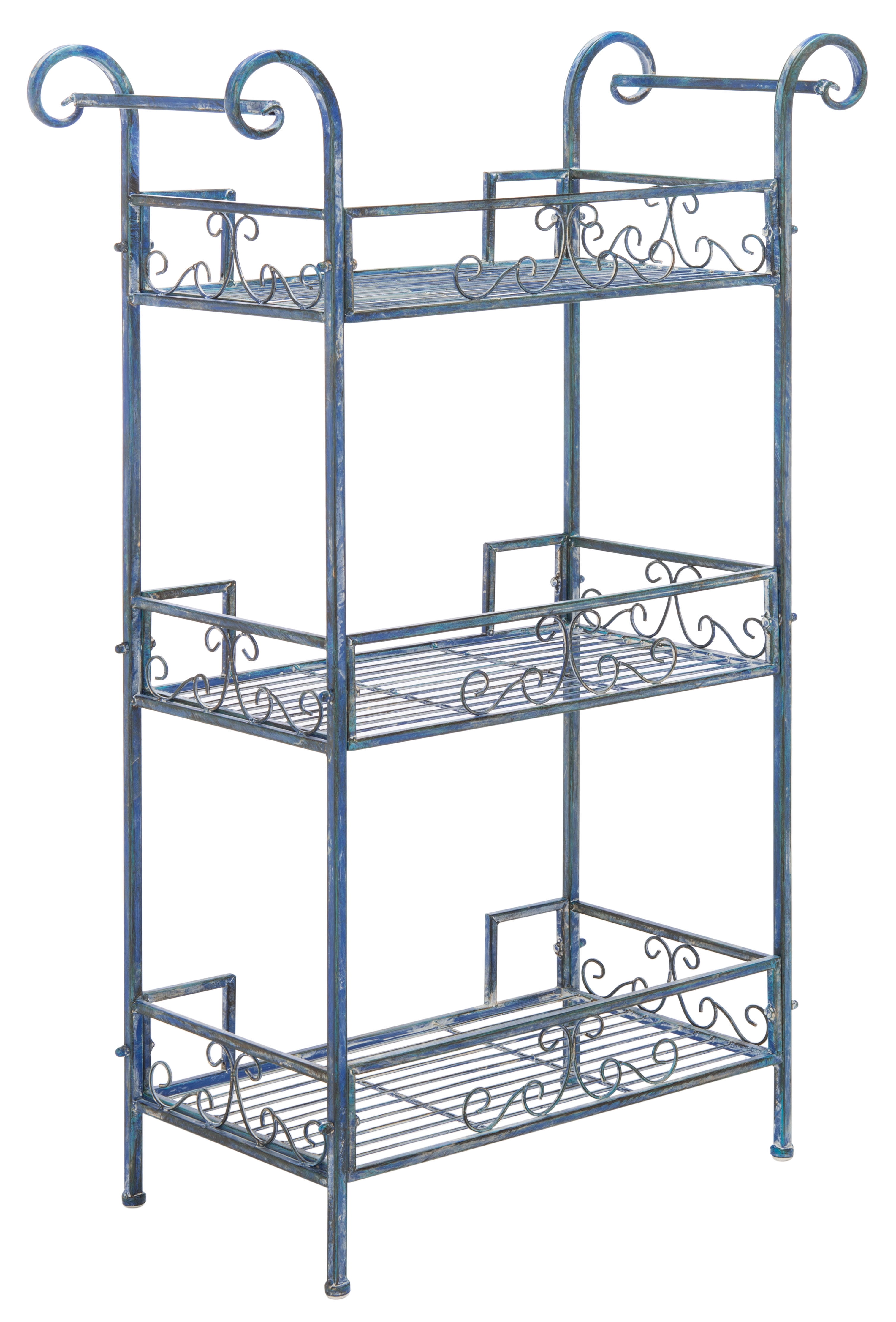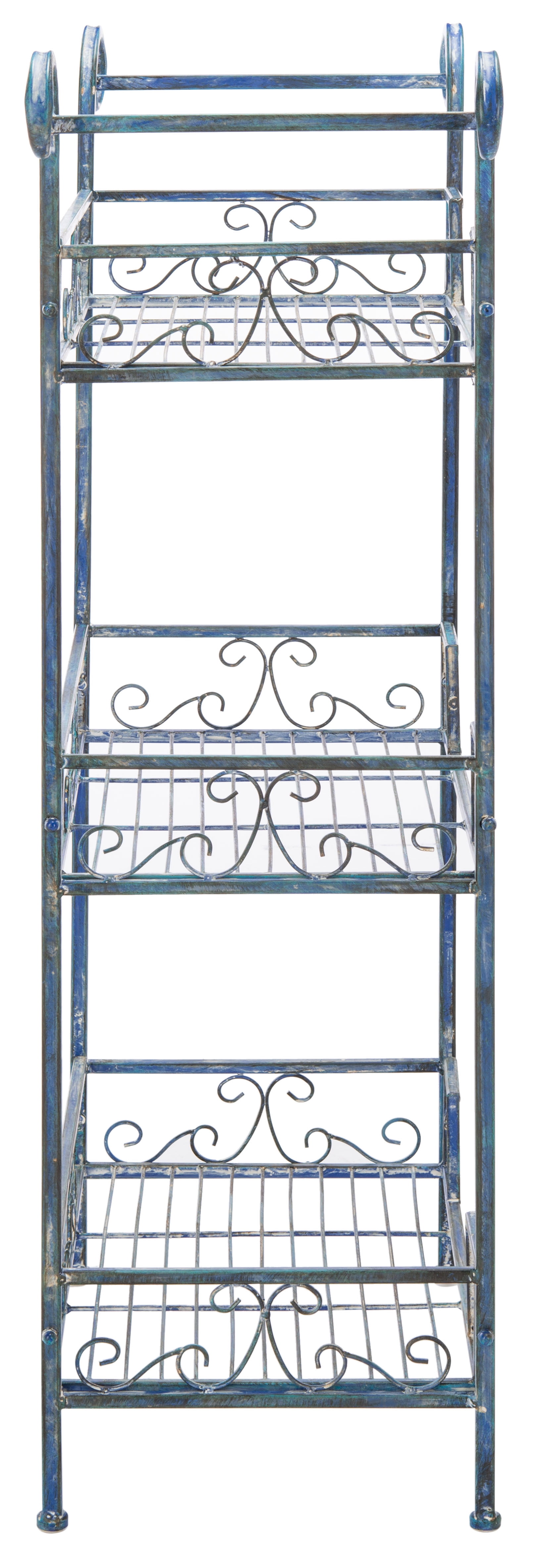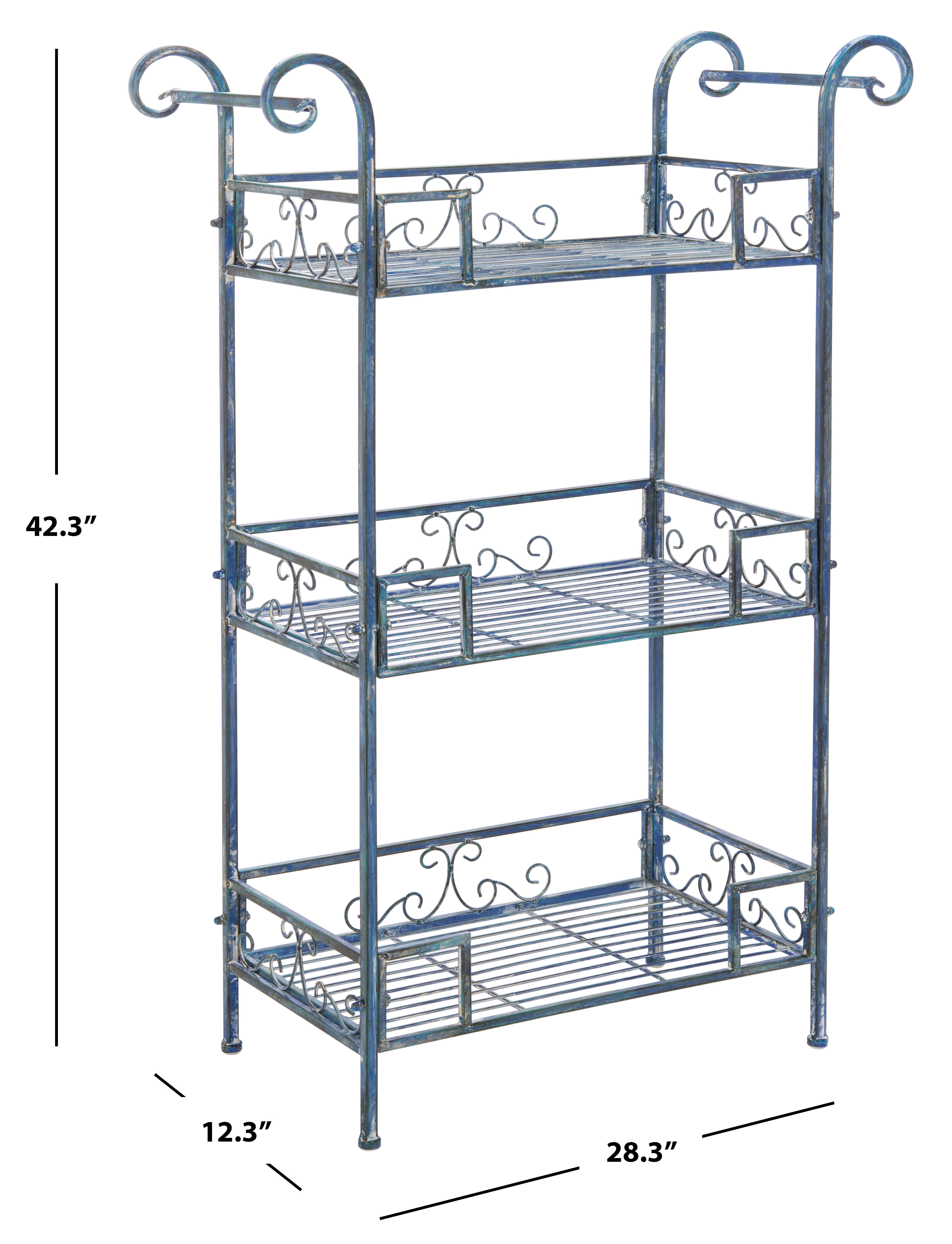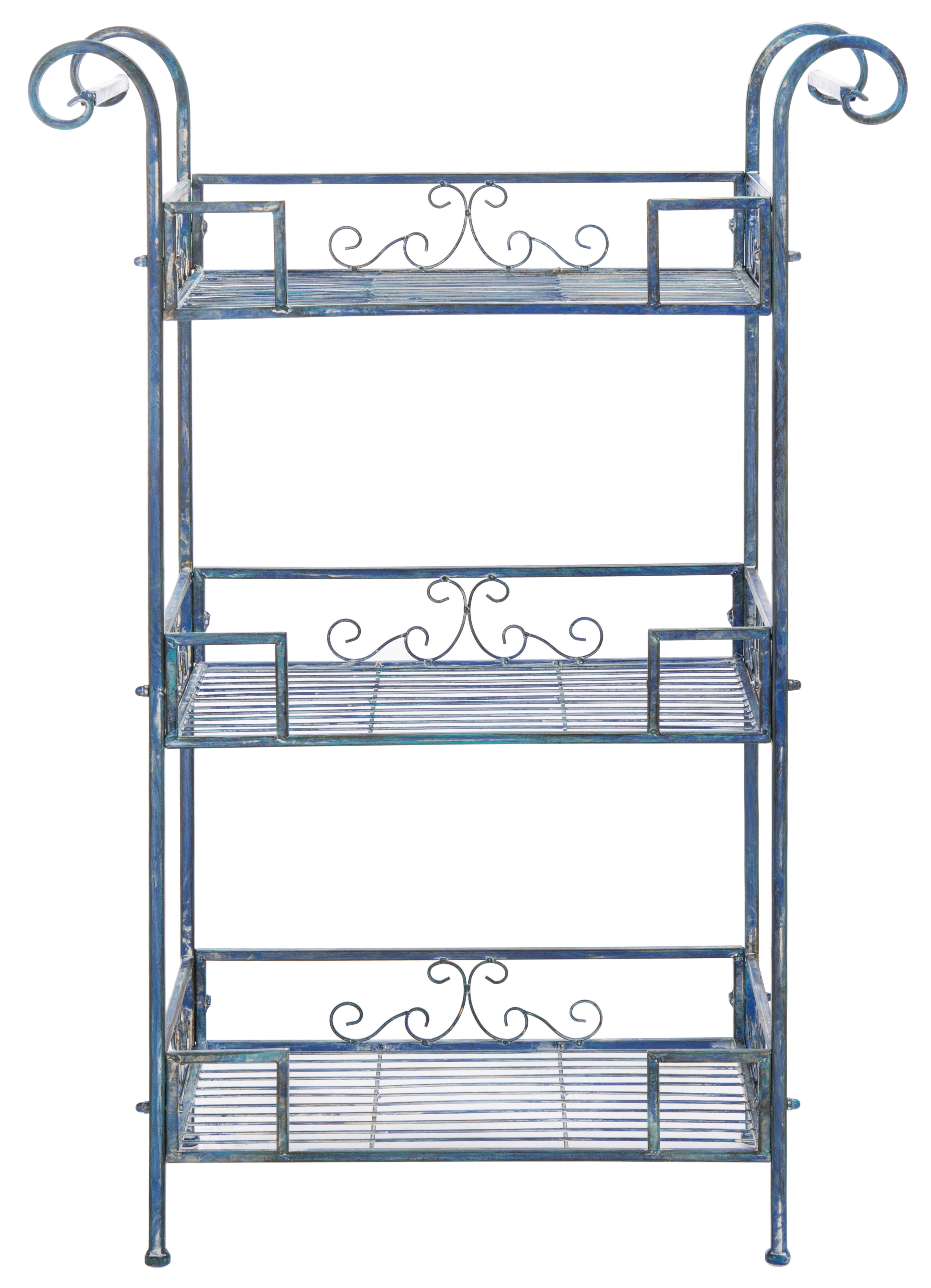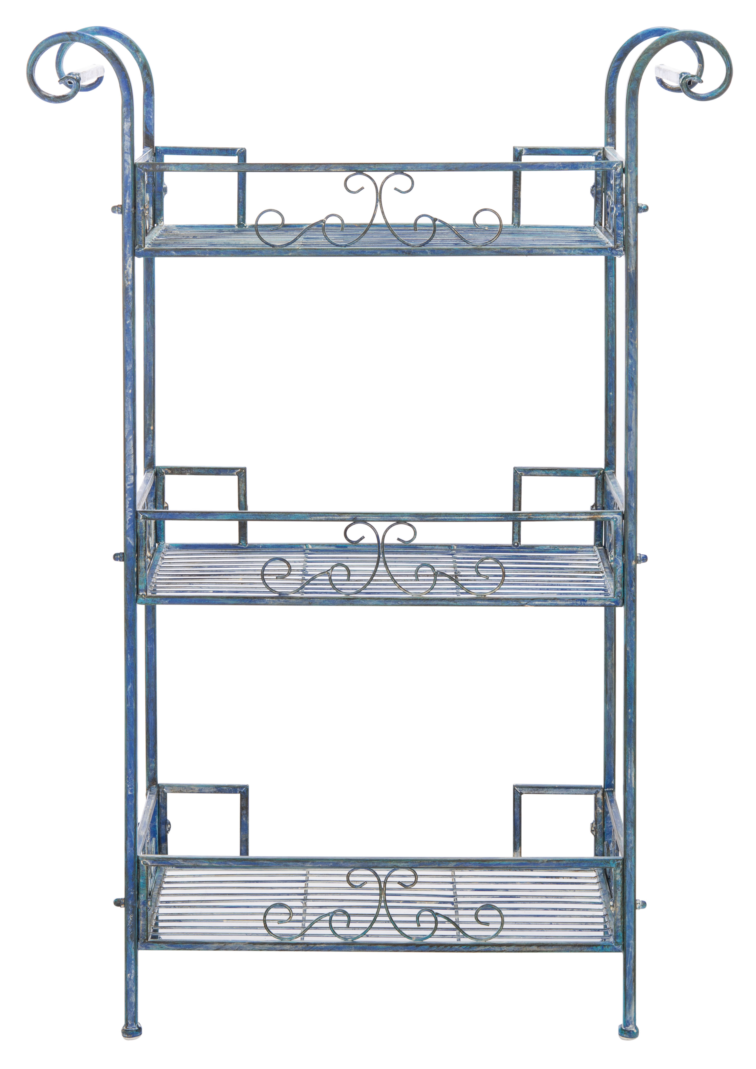 Shop Safavieh at . Save Money. Live Better. SAFAVIEH Noreen Contemporary Outdoor Patio 3 Tier Shelf, Antique Blue Taking inspiration from Victorian antiques, this Noreen Shelf imbues any outdoor area with vintage charm and romantic ambiance. The flourishing iron scrolls in an antique blue finish give Noreen’s three shelves elegant character, making it ideal for the porch or patio. Not only does these shelves bring timeless allure of the outdoors into your living space but it also promotes ample storage space.