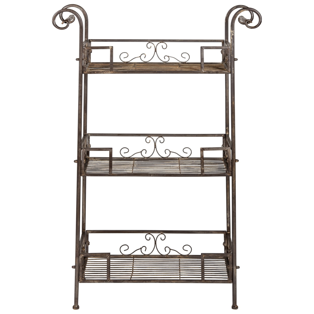 SAFAVIEH Outdoor Collection Noreen 3-Tier Shelf Rustic Brown Taking inspiration from Victorian antiques, this Noreen Shelf imbues any outdoor area with vintage charm and romantic ambiance. The flourishing iron scrolls in a rustic brown finish give Noreen’s three shelves elegant character, making it ideal for the porch or patio. For over 100 years, SAFAVIEH has set the standard for finely crafted rugs and home furnishings. From coveted fresh and trendy designs to timeless heirloom-quality pieces, expressing your unique personal style has never been easier. Begin your rug, furniture, lighting, outdoor, and home decor search and discover over 100,000 SAFAVIEH products today.