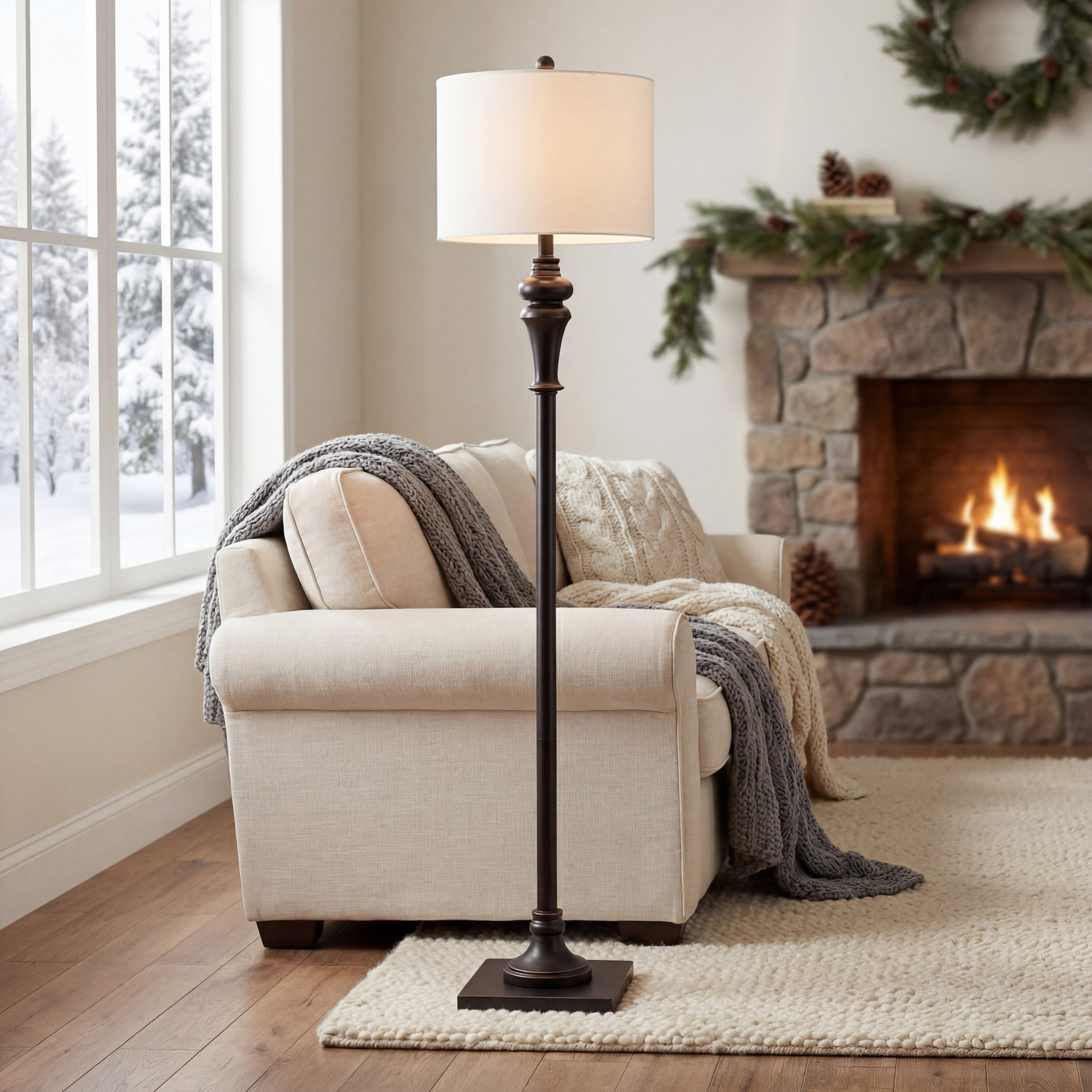 Contemporary design adds a chic look to your home Durable frame for long lasting longevity Easy to clean and maintain Minor assembly needed Color: Antique Black Shade Color: Off-White Item Dimension: 14 in. W x 14 in. D x 61 in. H Crafted with Iron Shade Material: 100% Cotton Shade Height: 10 in. Shade Bottom Dimension: 14 in. W x 14 in. L Shade Top Dimension: 14 in. W x 14 in. L Harp Height: 7.5 in. Cord Length: 72 in. Bottom Base Dimension: 9.875 in. W x 9.875 in. D x 1.25 in. H Type of Bulb Included: LED A19 9W Lamp Certification: UL Light Bulb Base Type: E26 Screw Terminal Switch Mechanism: Rotary Switch Bulb Size: 55 x 55 x 110mm Qty of Bulb(s): 1 Max Wattage: TYPE “A” 100W OR CFL 23W OR LED 12W Lumen: 800 Item Weight: 10.12 lbs Accessories in life style photo(s) not included Please note: The images and product dimensions on our website are as accurate as possible. Due to differences in computer monitors, some item’s color may vary slightly. Before cleaning any lamp shade or fixture, disconnect the power source. Wipe with a soft, dry cloth. Avoid the use of chemicals and household cleaners as they may damage the finish.