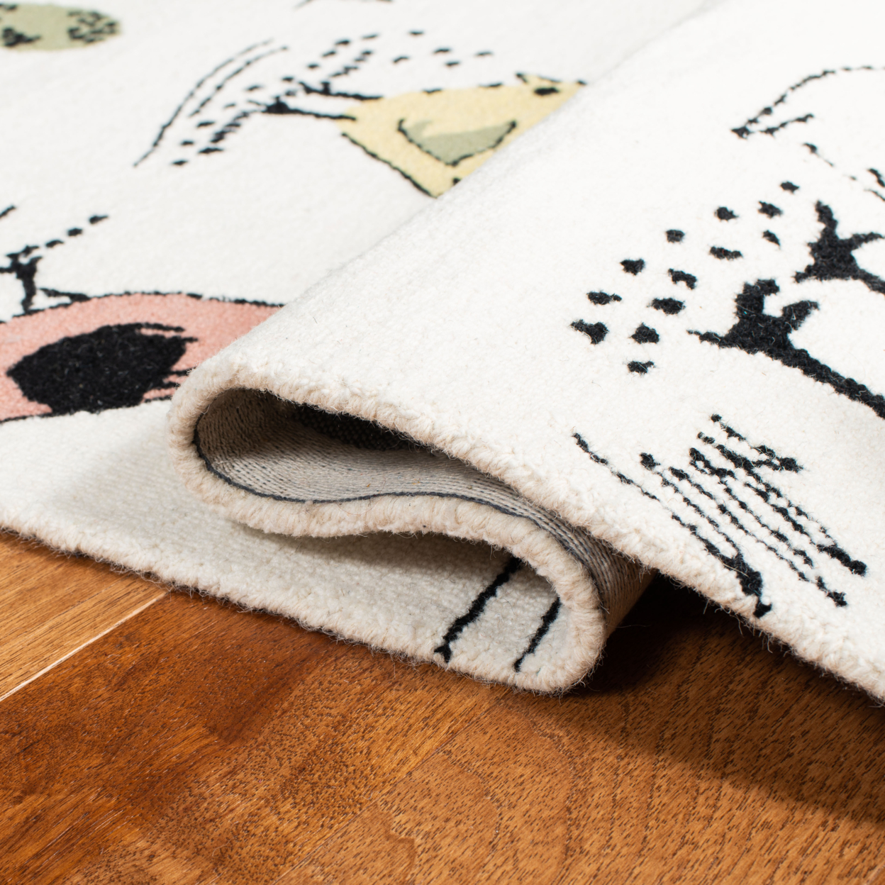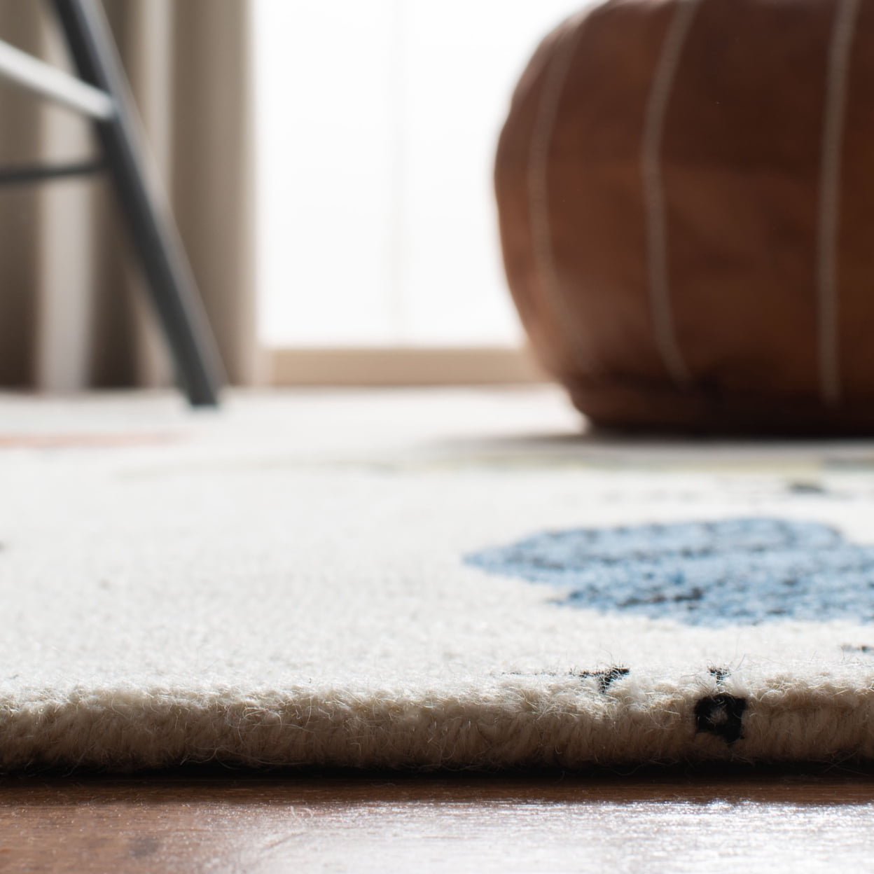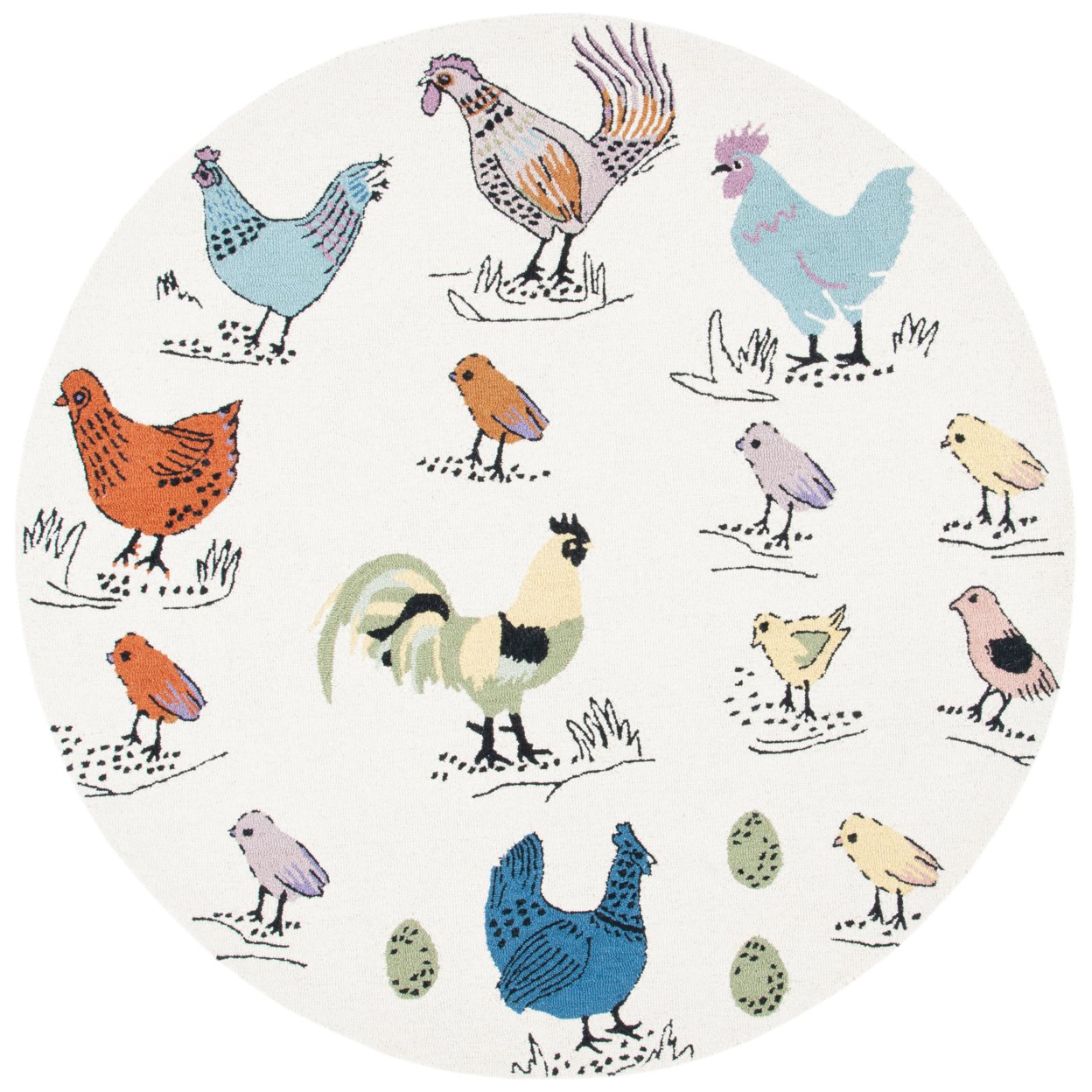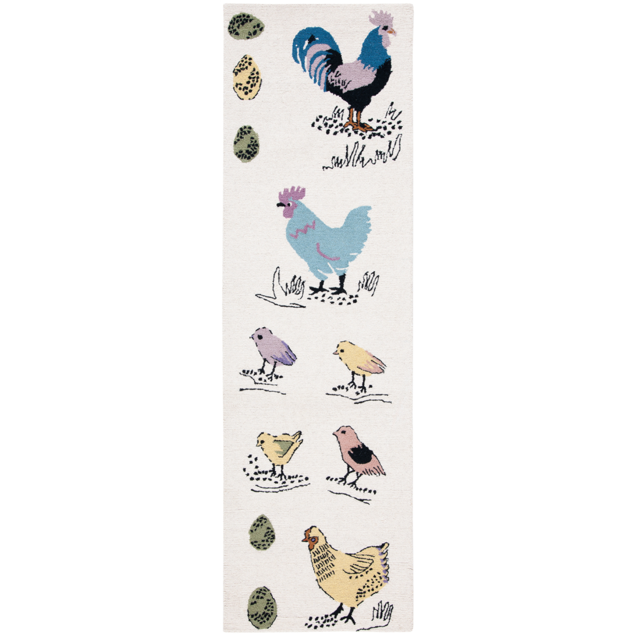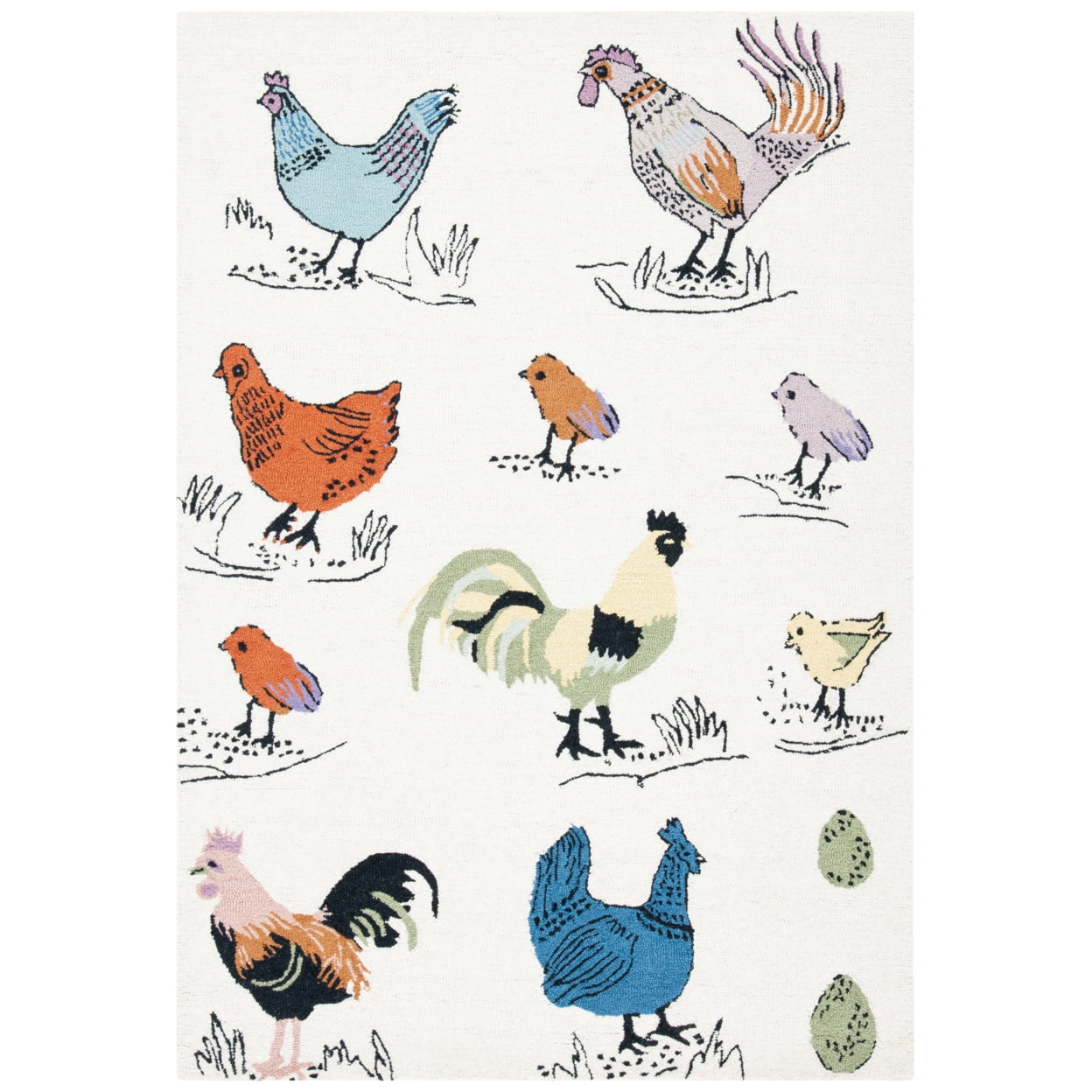 SAFAVIEH Novelty Gracelyn Roosters and Chicks Wool Area Rug, Ivory/Blue, 5′ x 8′