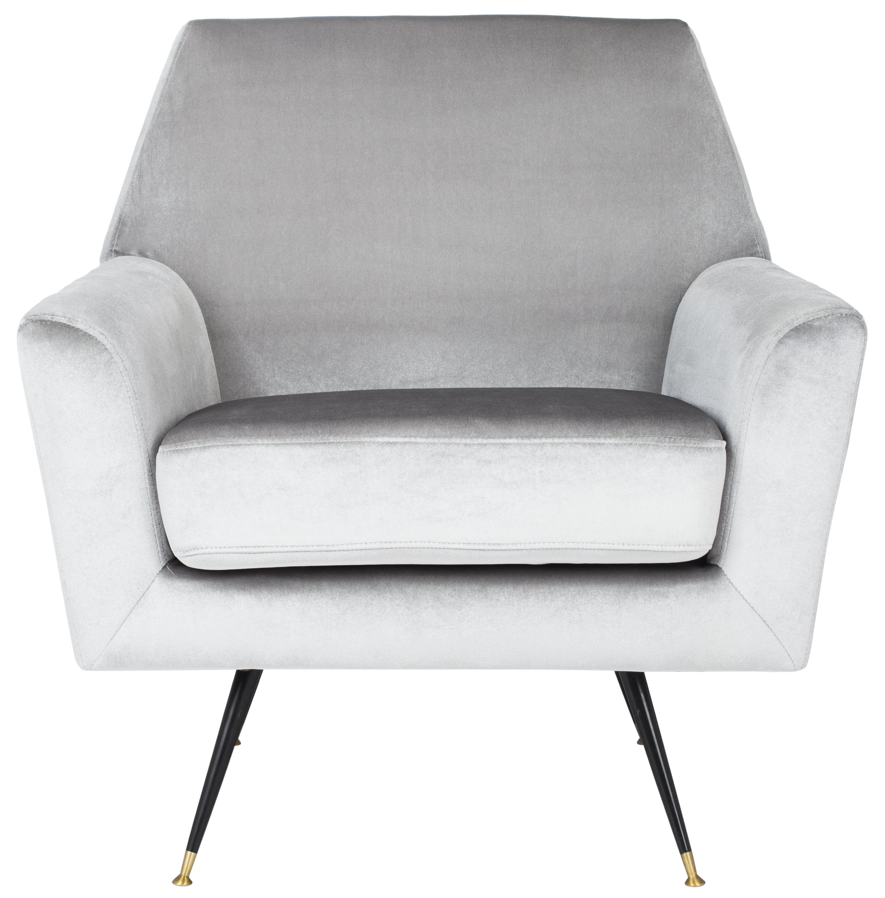 Shop SAFAVIEH at . Save Money. Live Better. SAFAVIEH Nynette Velvet Retro Mid Century Accent Chair, Light Grey Make a bold statement in any room with this retro Mid Century sofa chair. Its geometric angles allow for a generous seat with maximum style. A designer favorite, its light grey velvet and gold cap legs bring instant character to any modern space. For over 100 years, SAFAVIEH has set the standard for finely crafted rugs and home furnishings. Begin your rug, furniture, lighting, outdoor, and home decor search and discover over 100,000 SAFAVIEH products today.