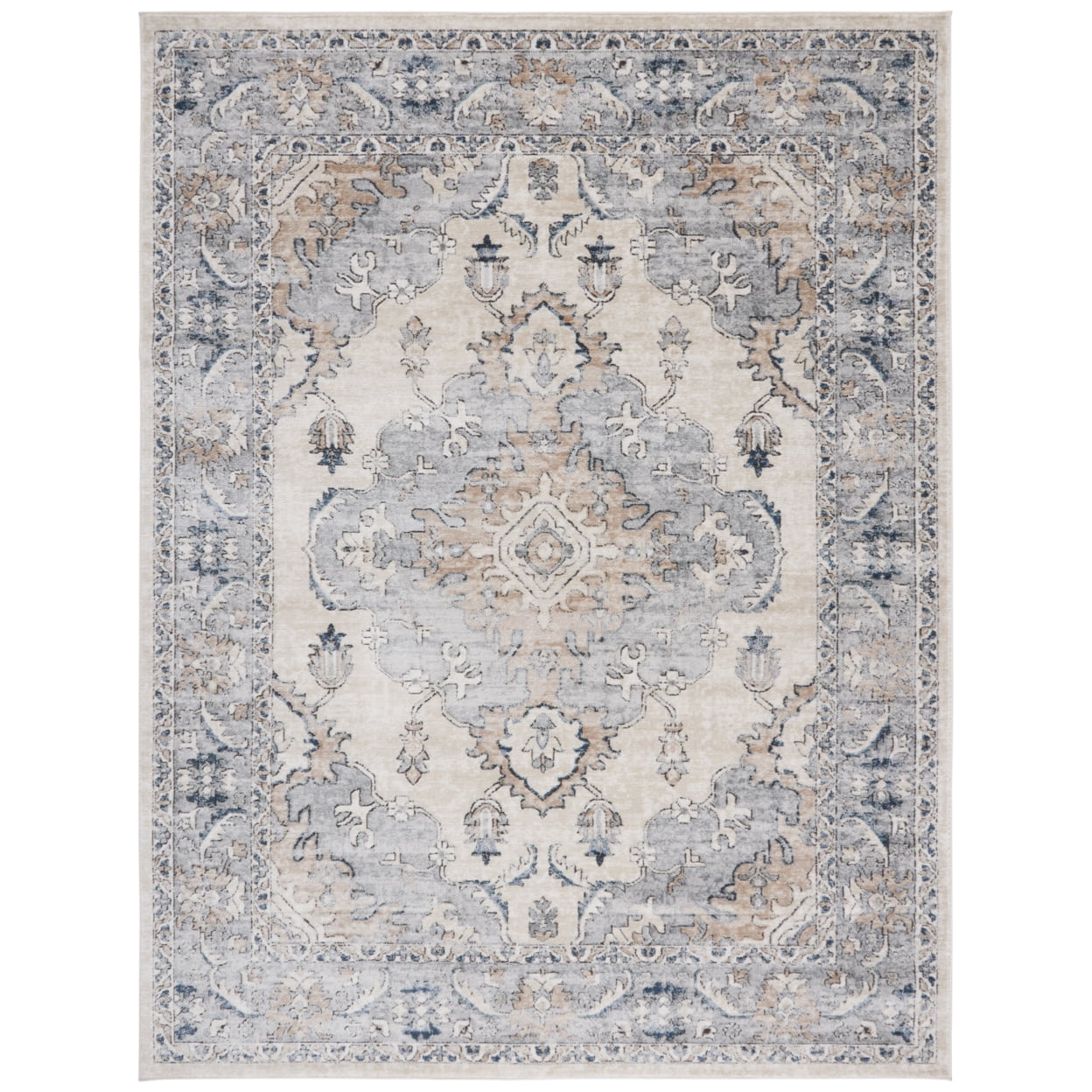 SAFAVIEH Oregon Ethelinda Floral Bordered Area Rug, Beige/Grey, 5’1″ x 7’6″