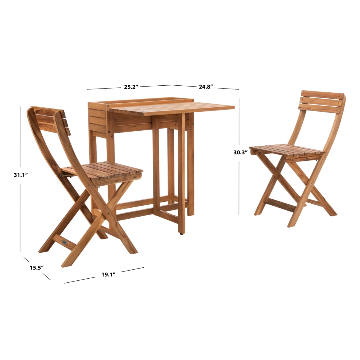 SAFAVIEH Outdoor Collection Walten Flower Shelf 3-Piece Bistro Set Natural