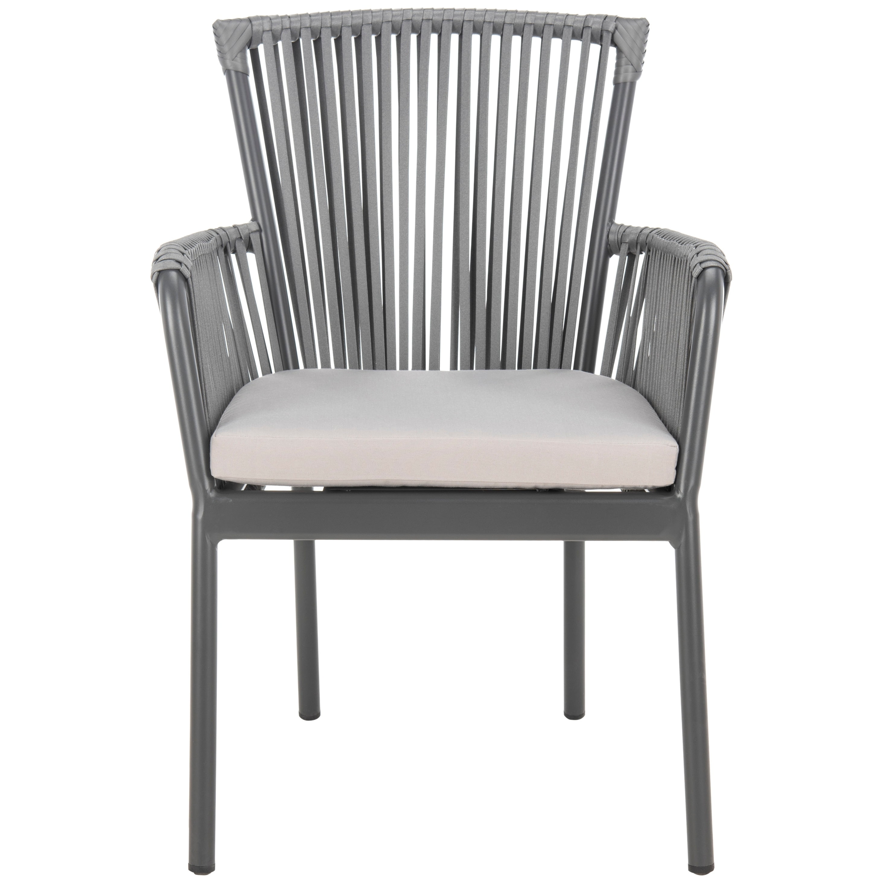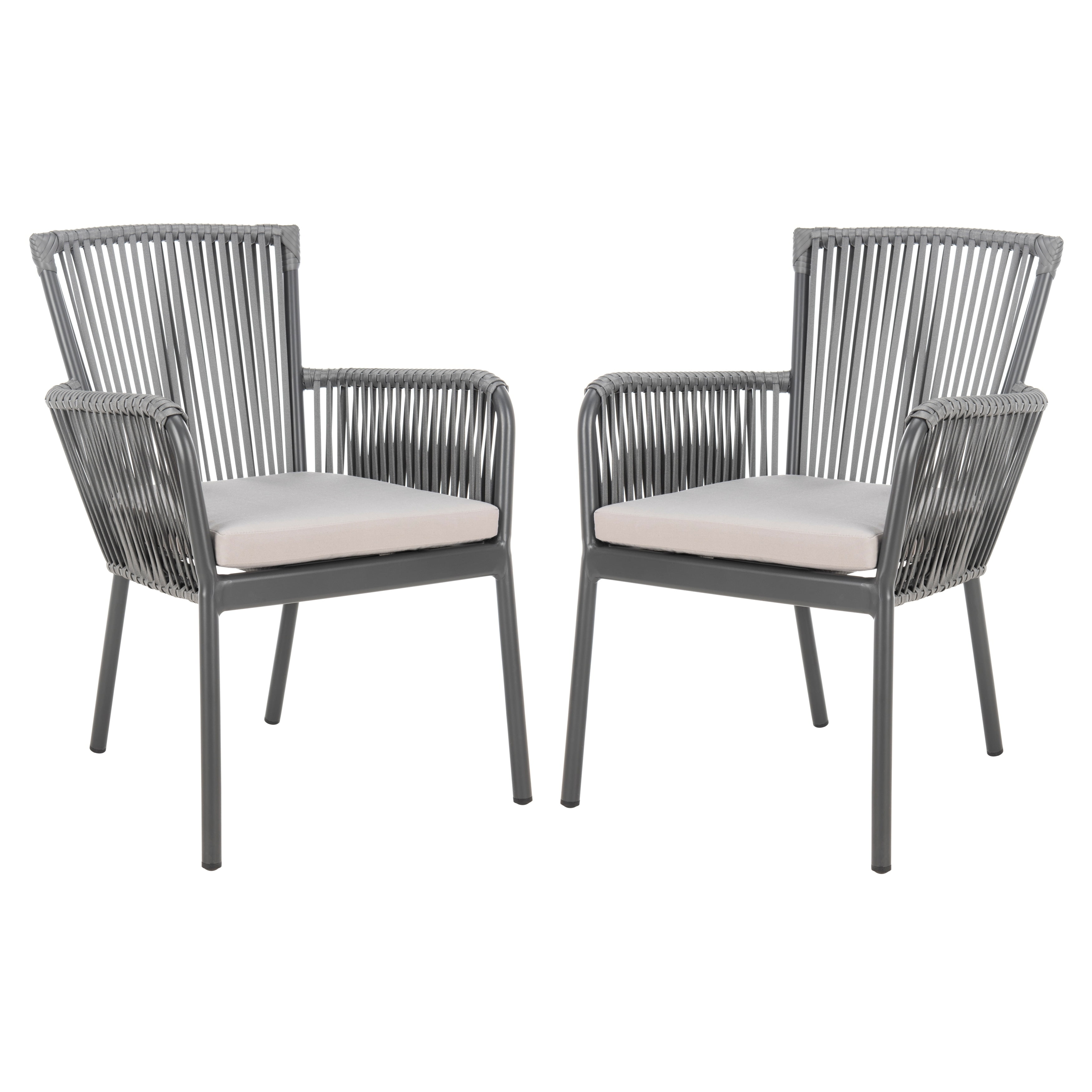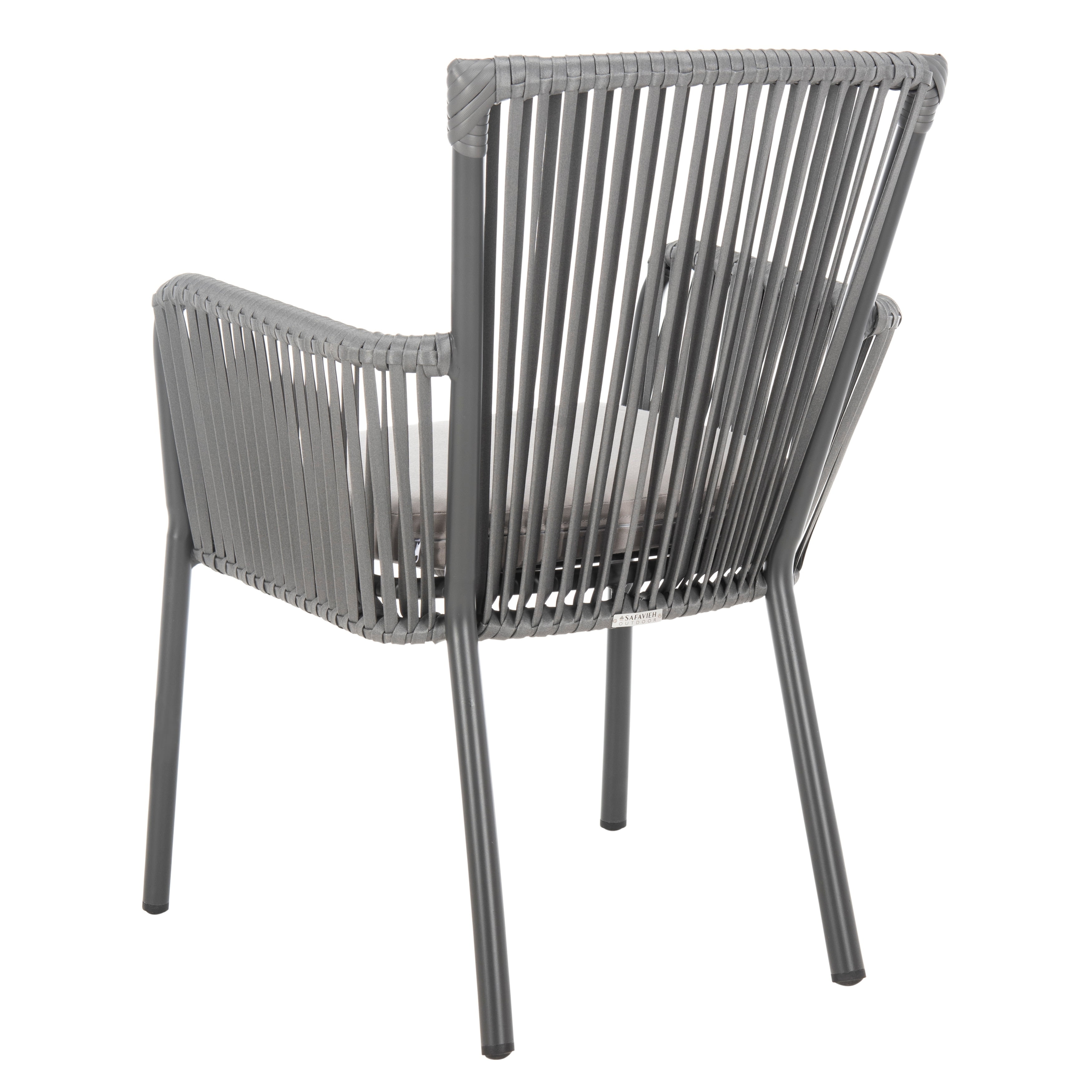 SAFAVIEH Paolo Stackable Outdoor Patio Rope Arm Chair, Grey/Cushion, Set of 2
