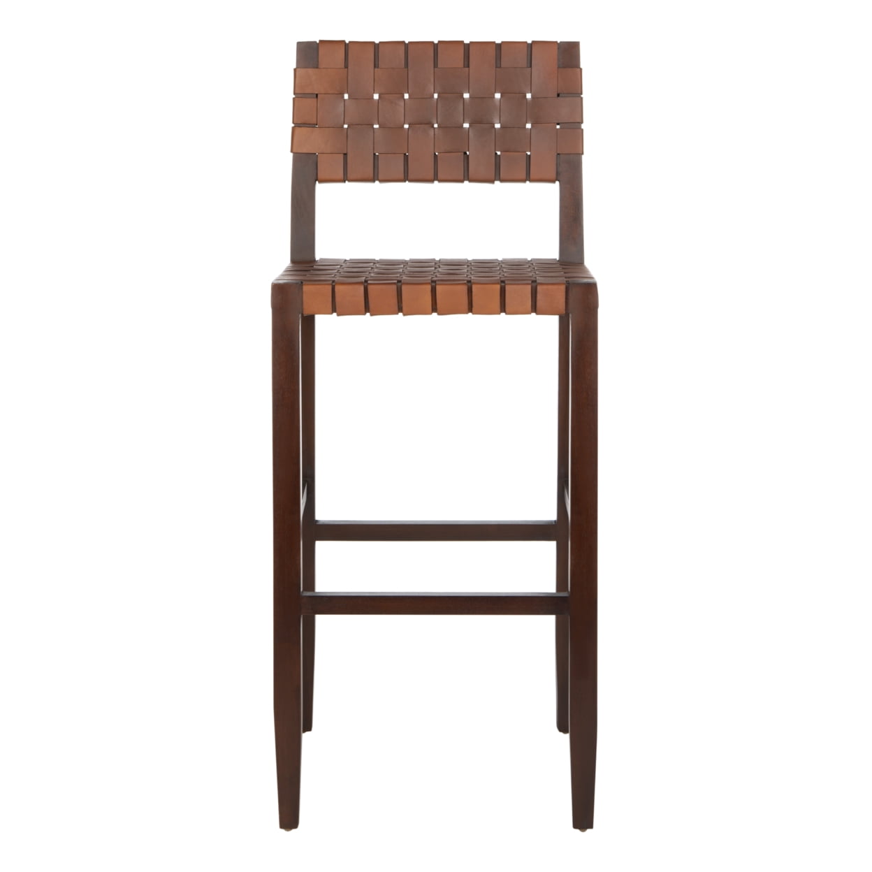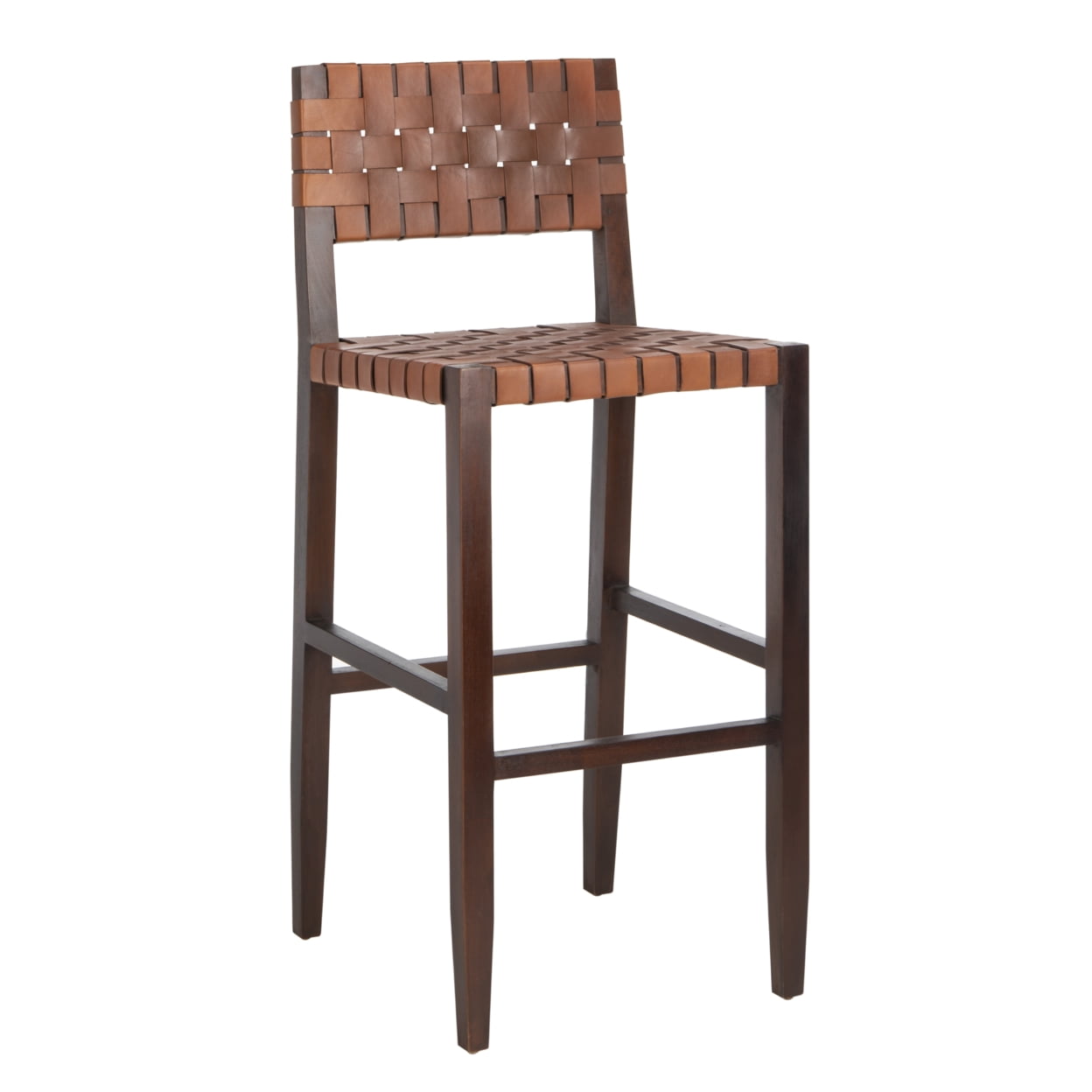 Shop SAFAVIEH at . Save Money. Live Better. SAFAVIEH Paxton Woven Leather Barstool with Footrest, Cognac Elevate any dining experience with this deluxe contemporary woven leather bar stool. A modern interpretation of the pub classic, it’s finely crafted with mahogany wood that features a rich walnut finish and timeless cognac leather. A design investment. For over 100 years, SAFAVIEH has set the standard for finely crafted rugs and home furnishings. Begin your rug, furniture, lighting, outdoor, and home decor search and discover over 100,000 SAFAVIEH products today.