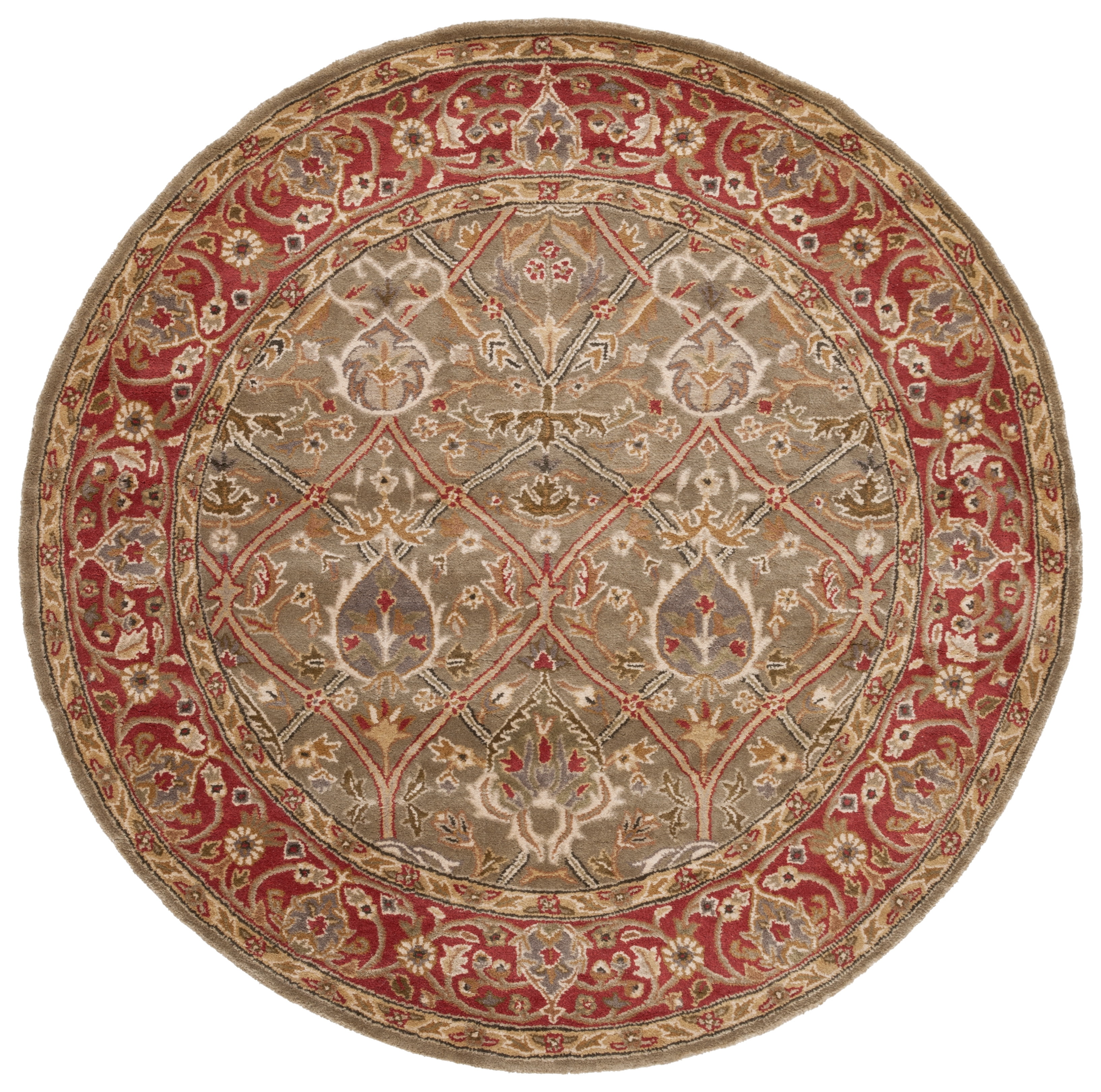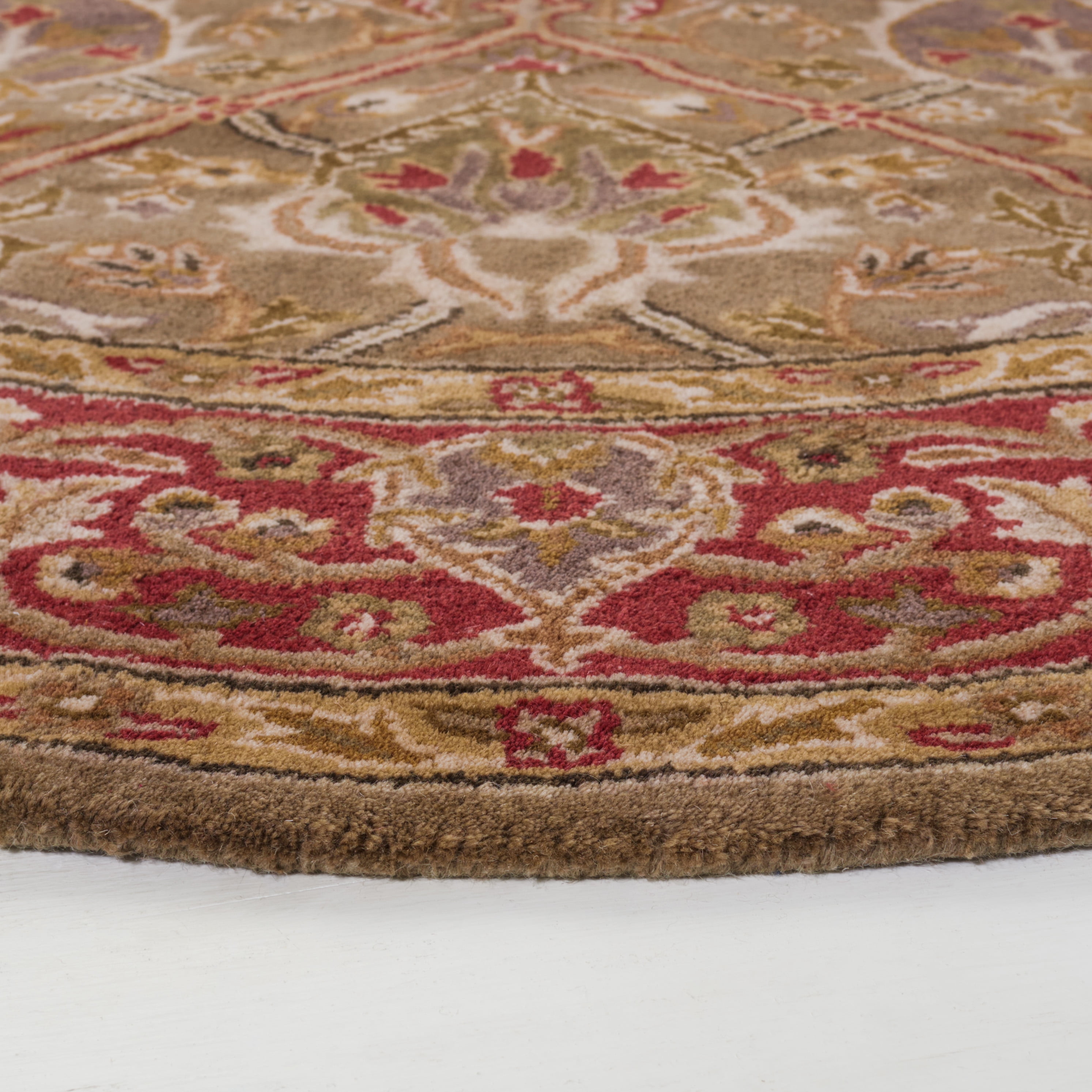 Add interest to your home decor with a handmade rug Traditional rug features border pattern with rich shades of olive, ivory, rust and gold Area rug is crafted of 100-percent New Zealand wool with cotton canvas backing
