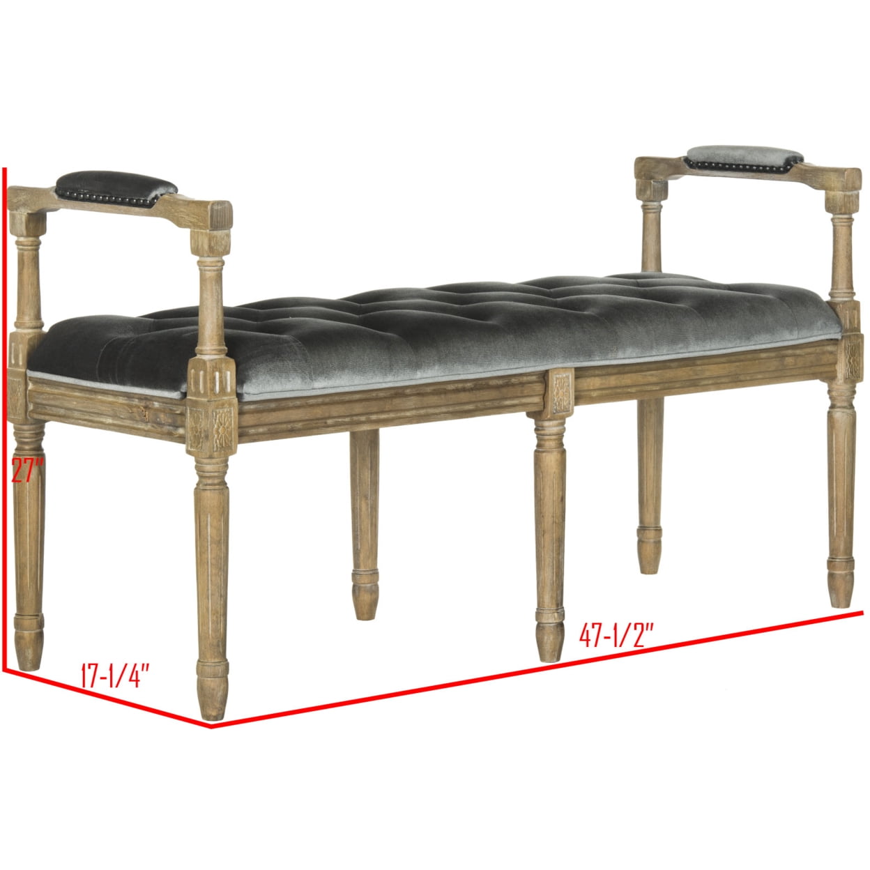 Shop SAFAVIEH at . Save Money. Live Better. SAFAVIEH Raiden Velvet Rustic Oak Tufted Bench, Grey/Rustic Oak In a small corner of the Marais is the historic boutique hotel with the interiors that inspired this Parisian style bench. Finely crafted with elegant period detail and upholstered in grey velvet, its classic style ensures a timelessly chic interior. For over 100 years, SAFAVIEH has set the standard for finely crafted rugs and home furnishings. Begin your rug, furniture, lighting, outdoor, and home decor search and discover over 100,000 SAFAVIEH products today.